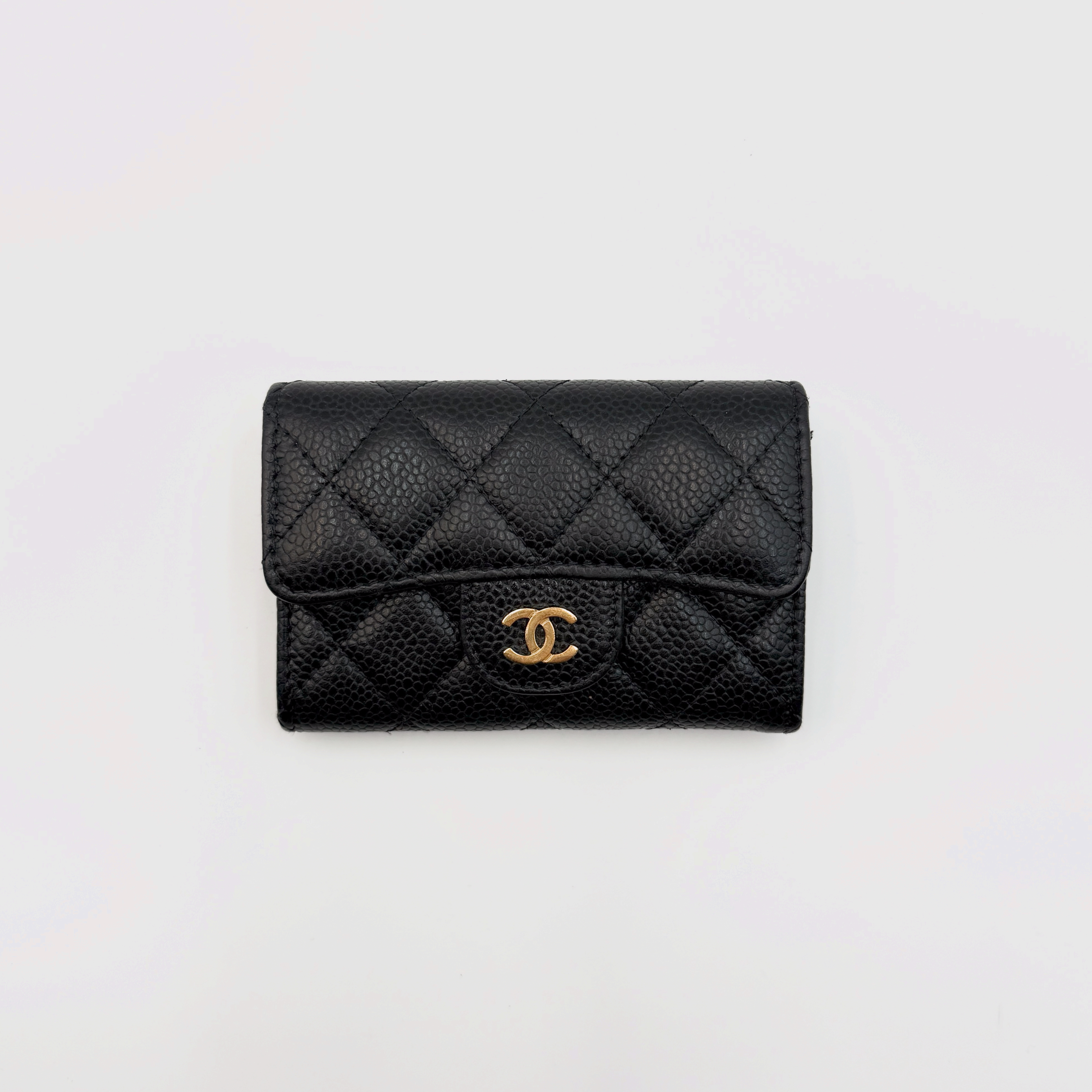 CHANEL Caviar魚子醬牛皮 Classic Flap Card Holder 金扣卡片套黑色/散紙包