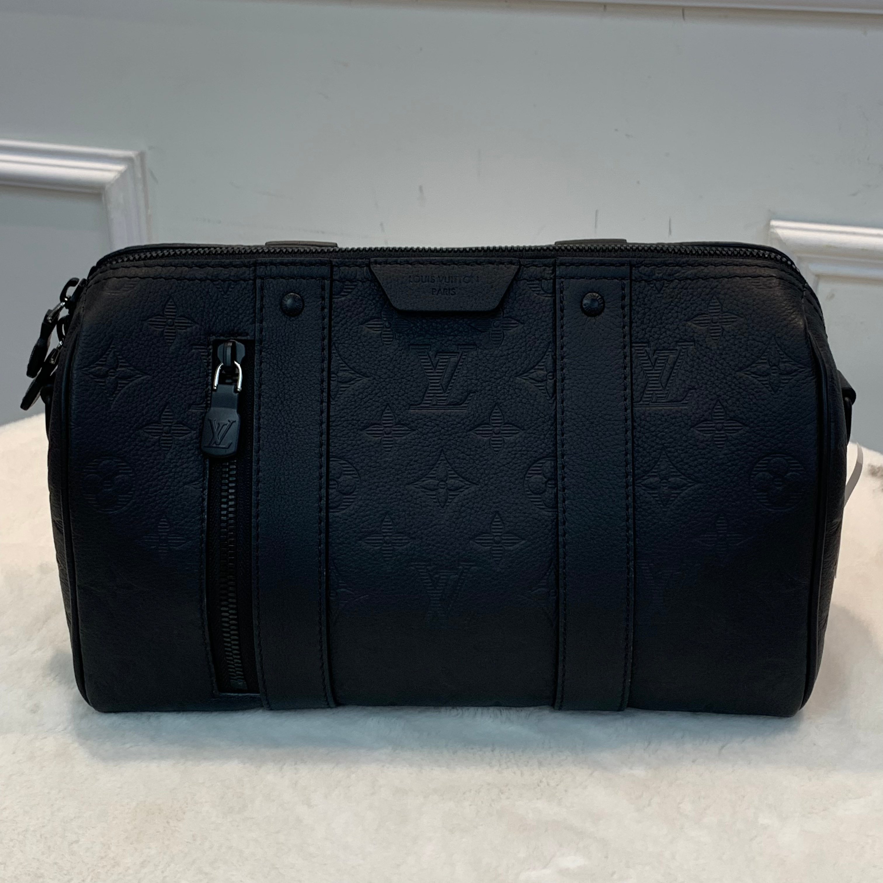 ♥全套新品♥ LV City Keepall黑色暗額紋波士頓包 晶片款