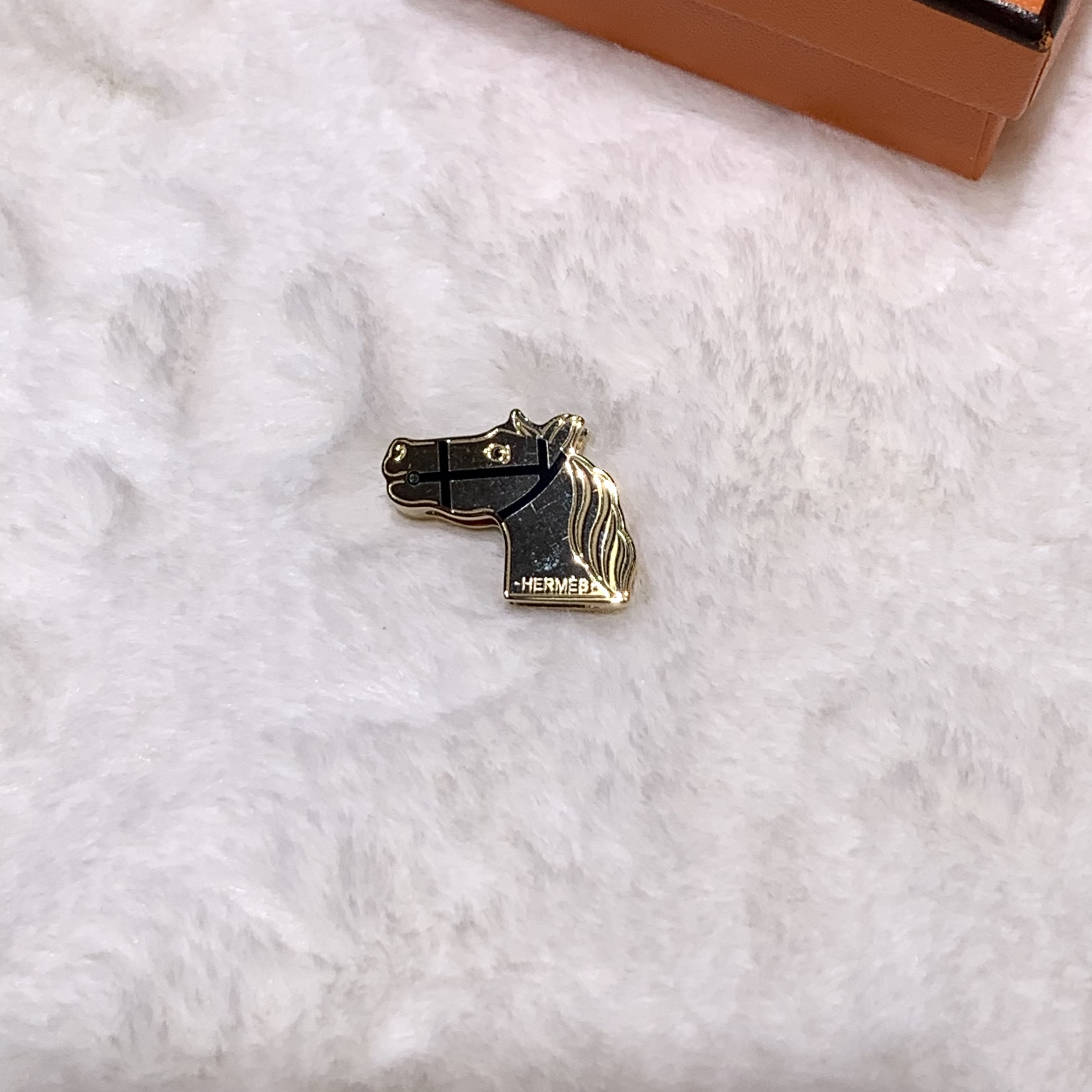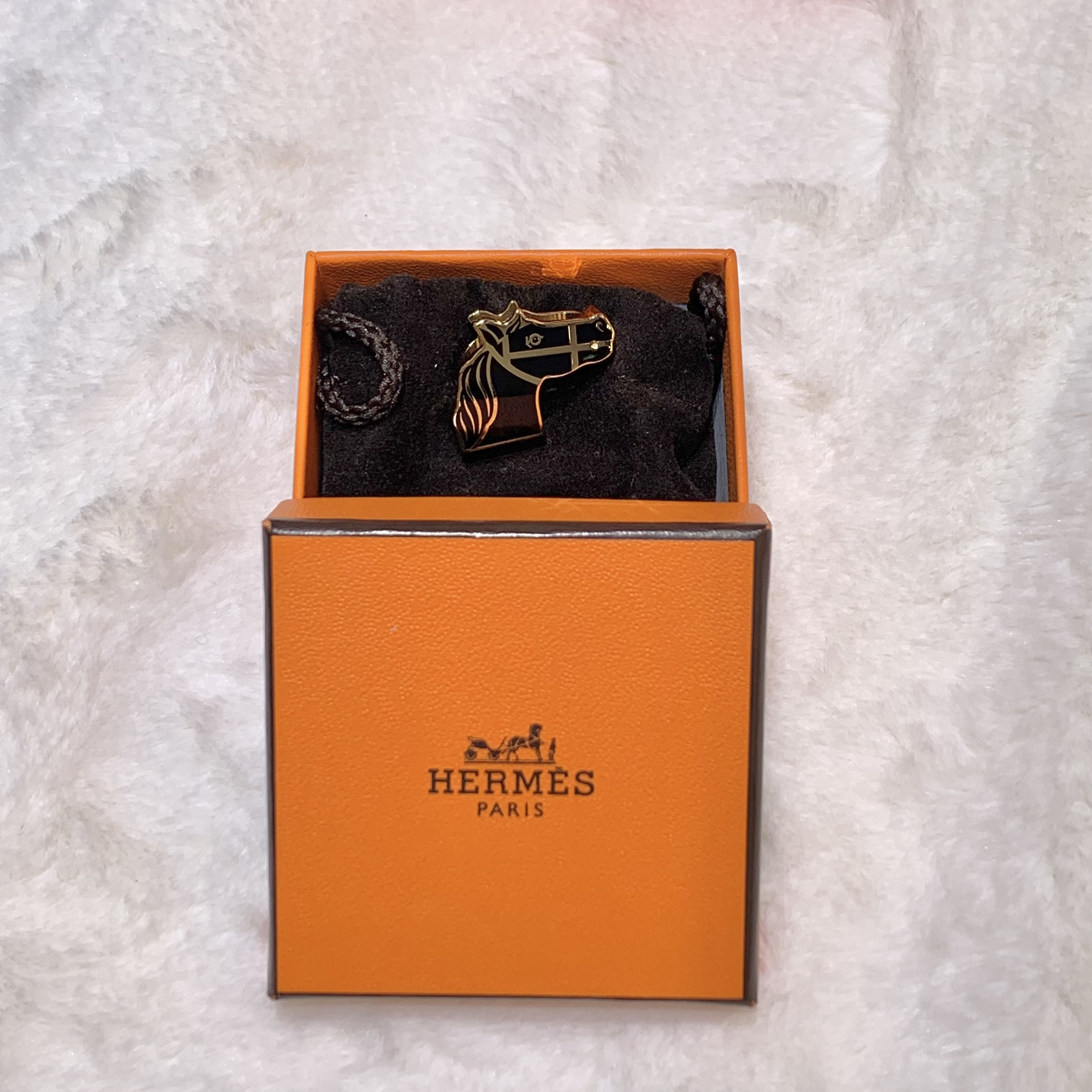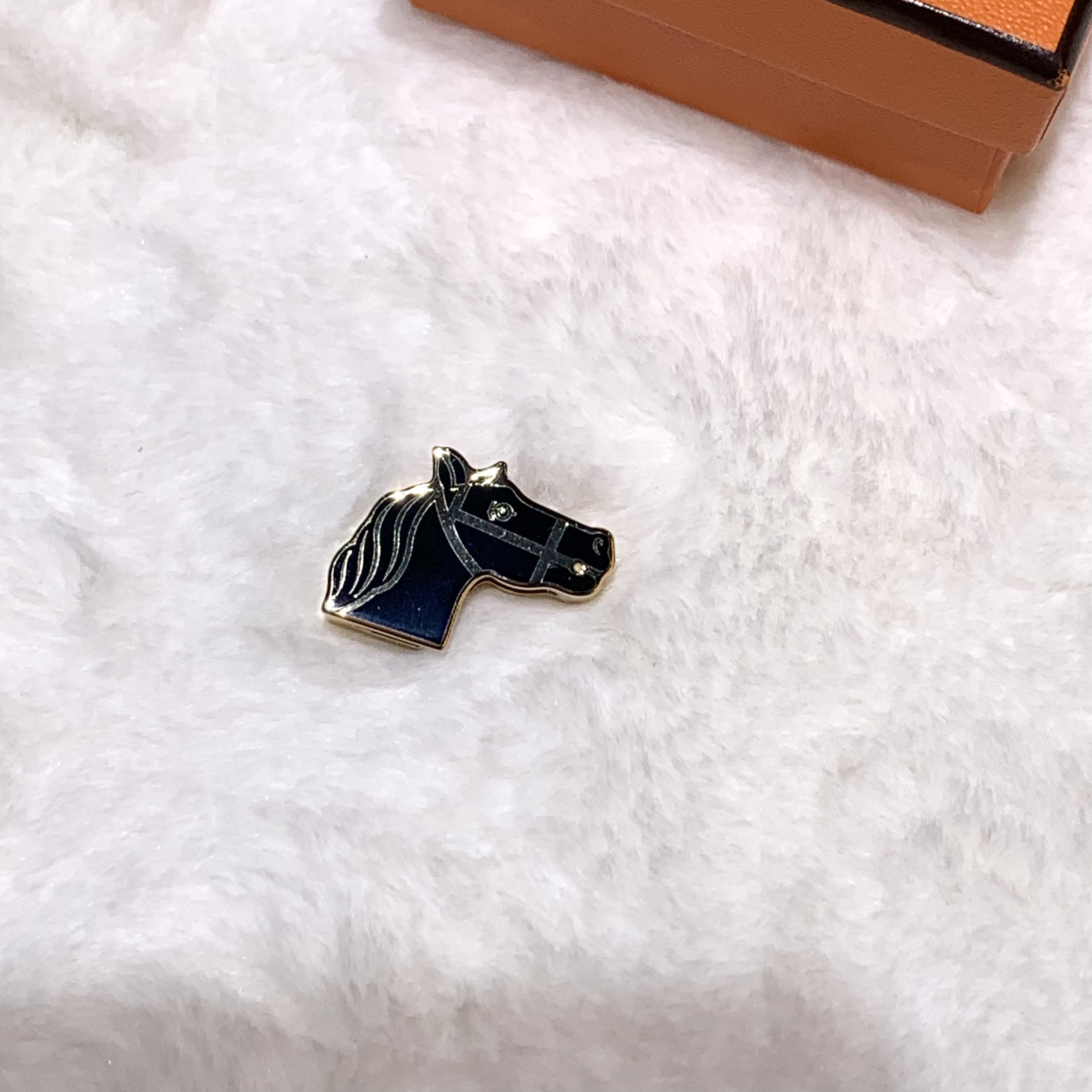 全新Hermes 面馬頭絲巾扣 顏色:黑金/金 成色:全新 配件:盒 塵袋