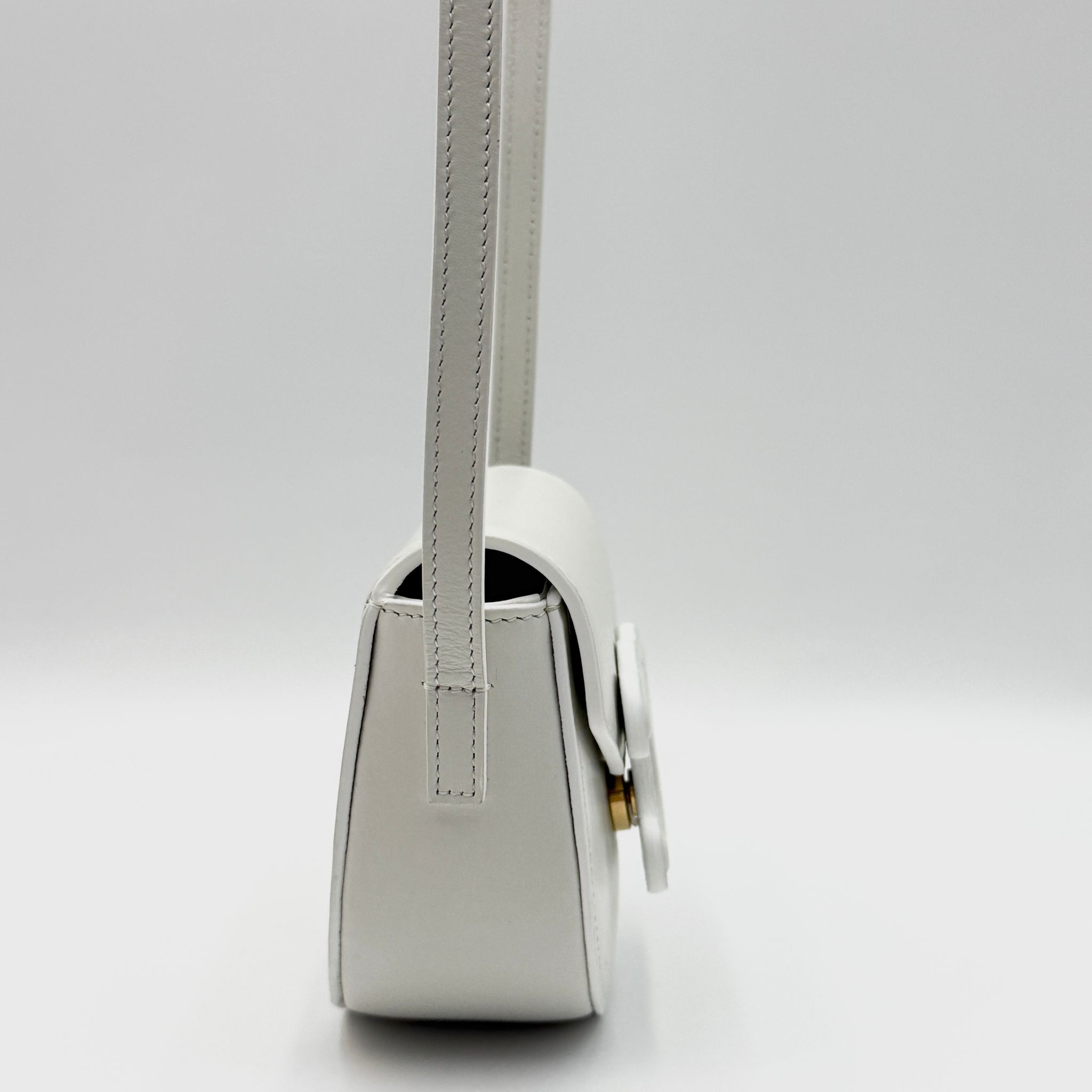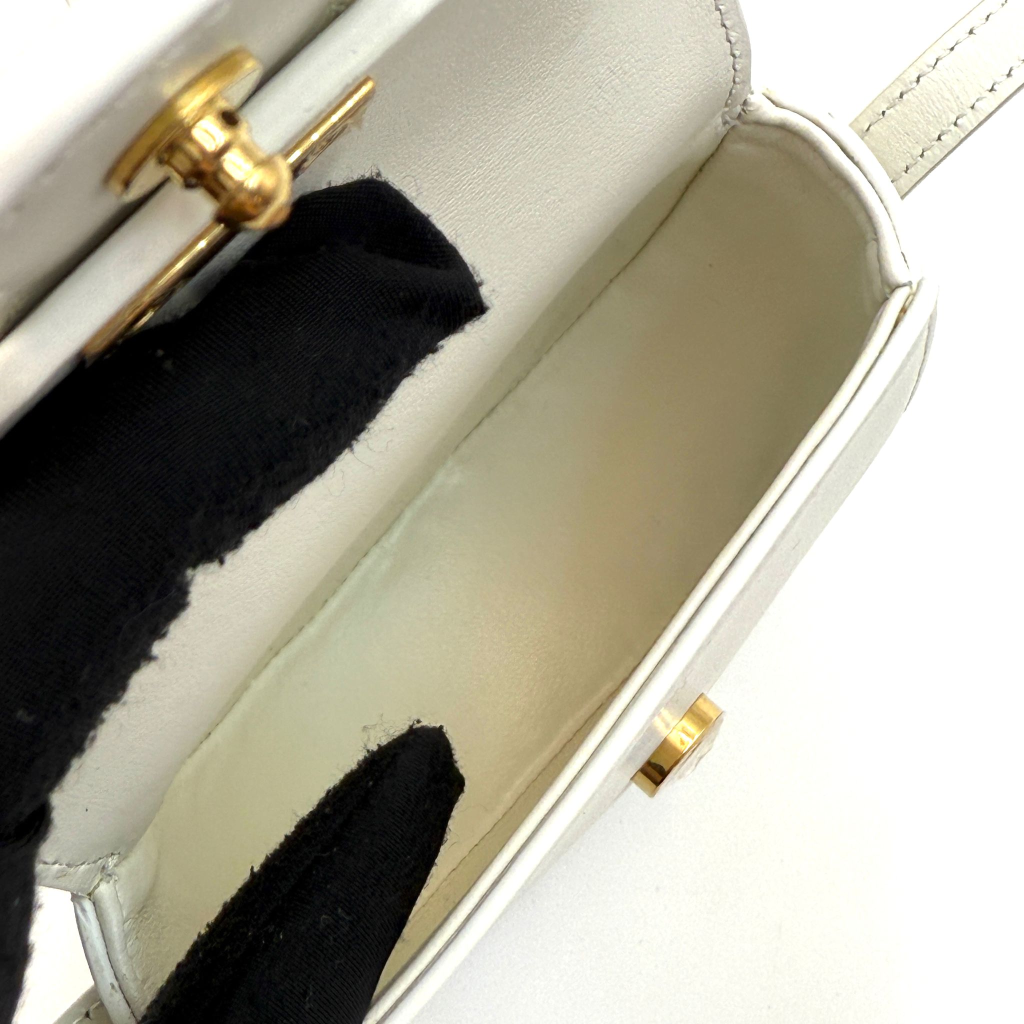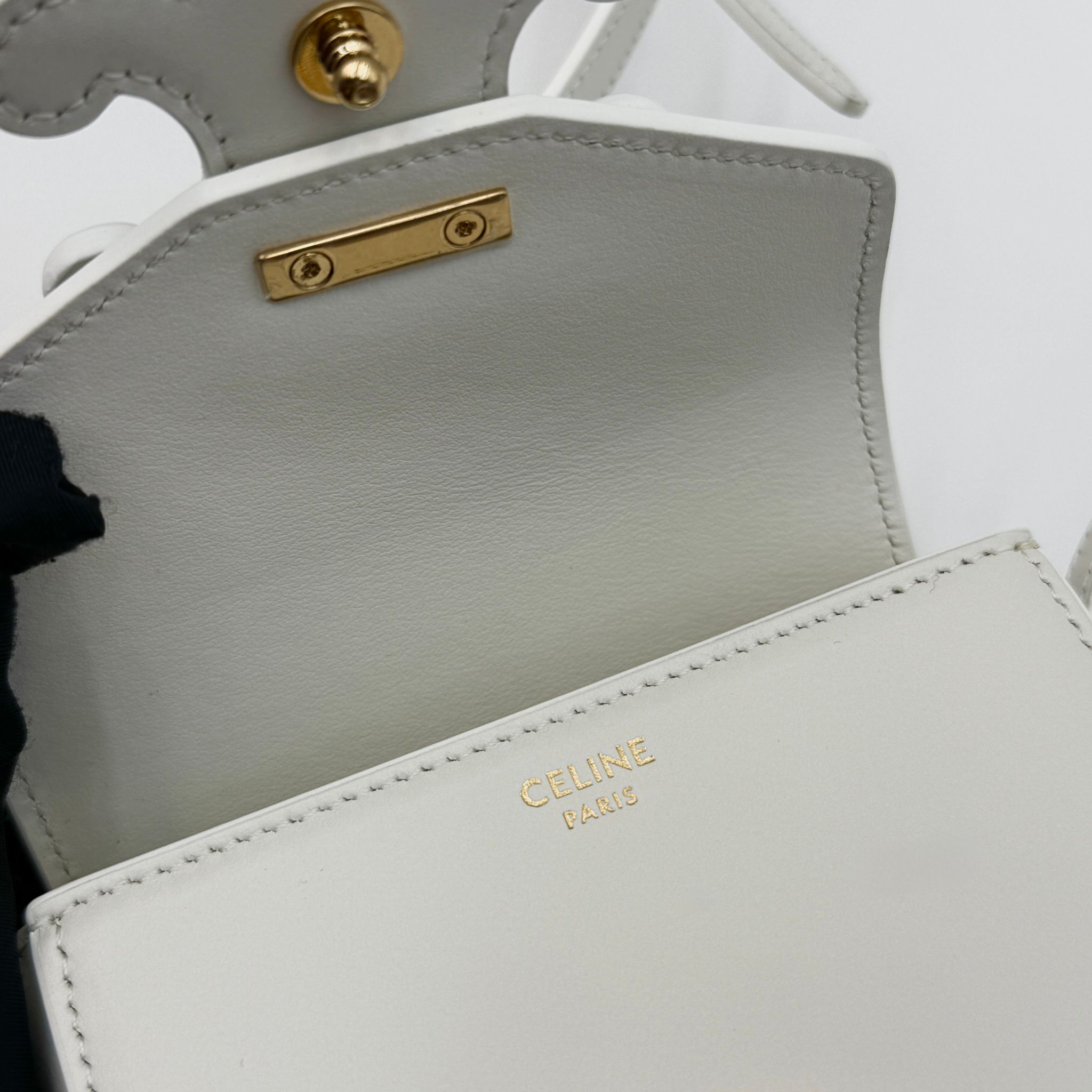 CELINE BesaceCuir Triomphe 凱旋門系列馬鞍包Mini版 22年新款 光面牛皮革 肩帶款 材質:牛皮 顏色:白色 年份:2022年 尺寸約:11*10cm 附件:防塵袋 原價:7900