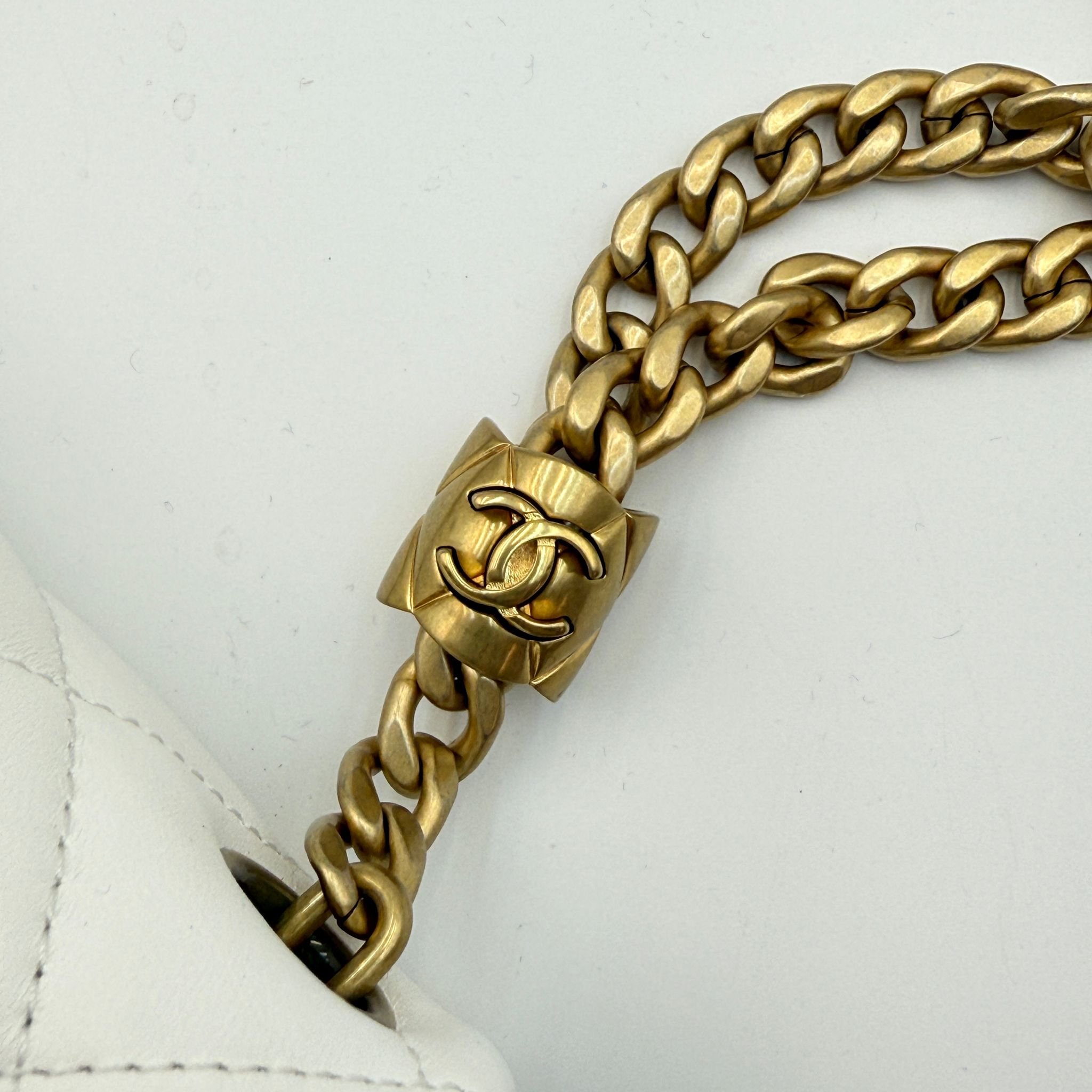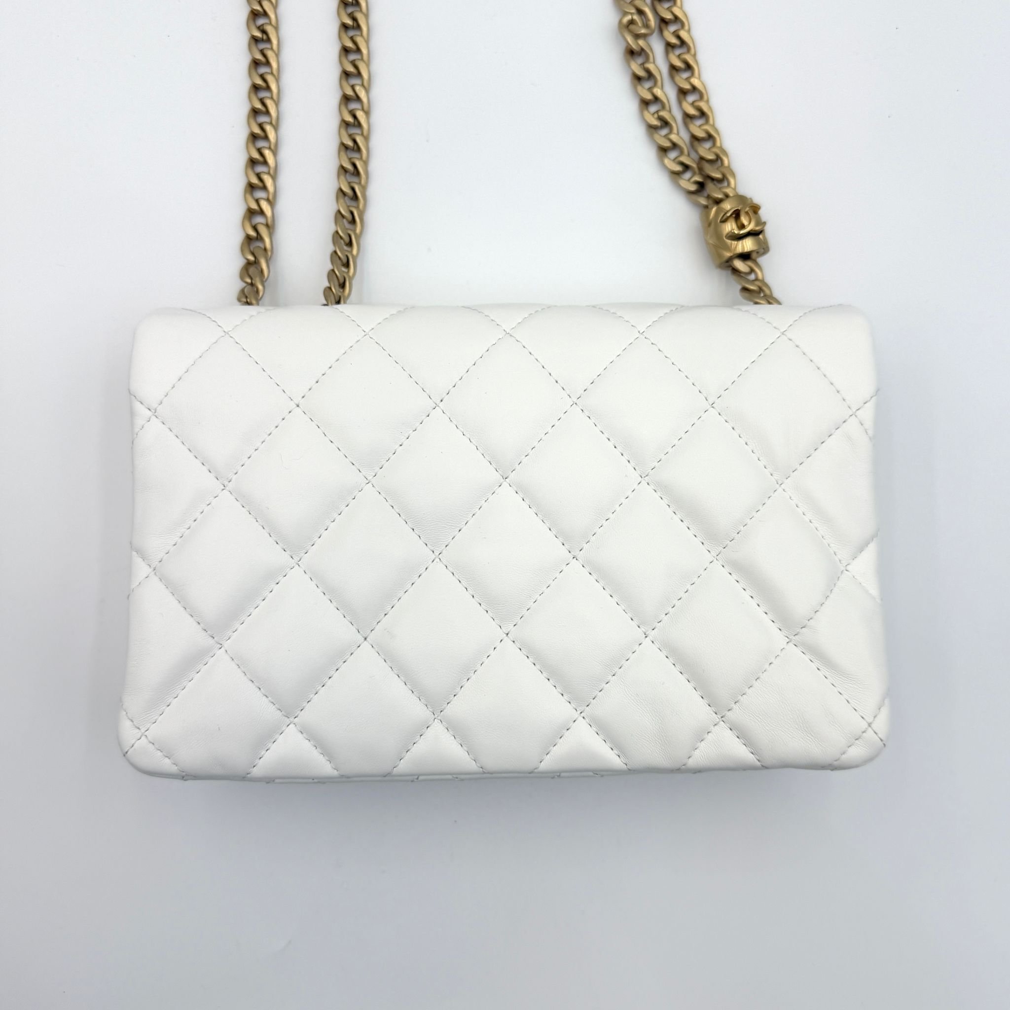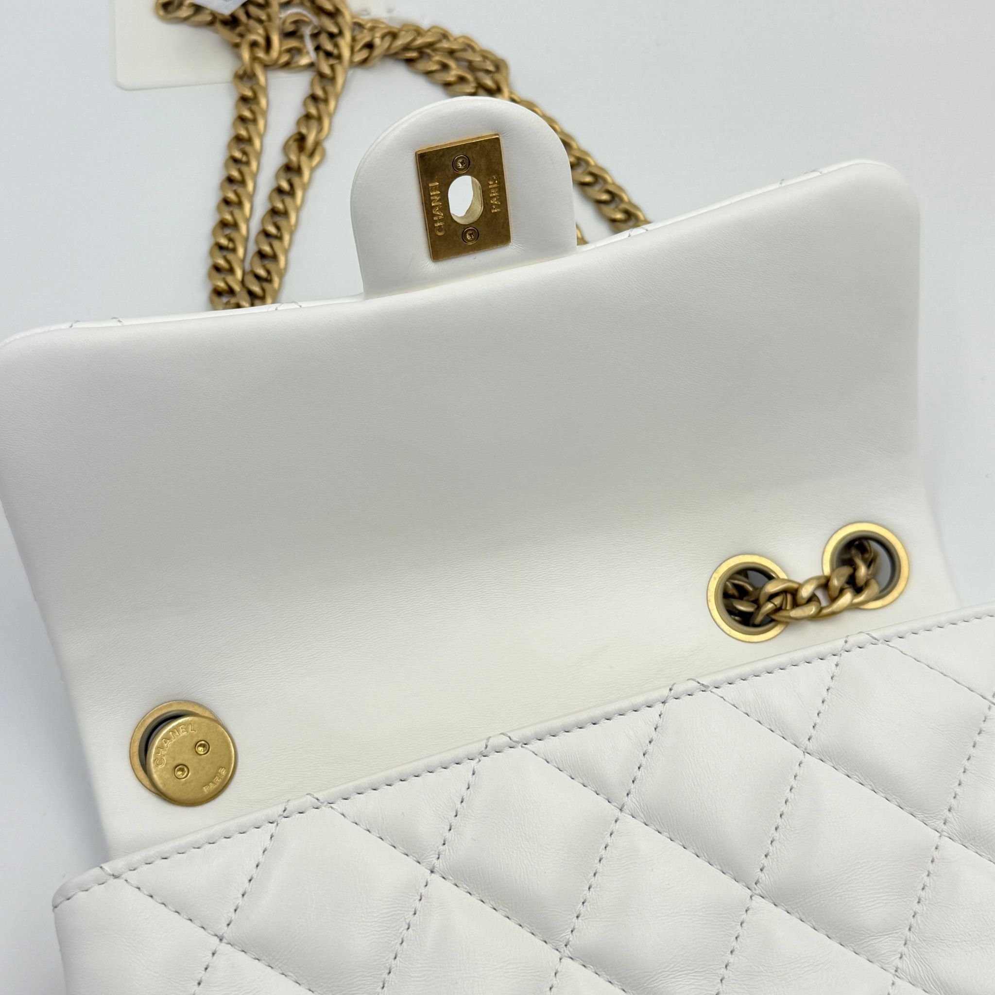 CHANEL香奈兒 方胖子鏈條包 晶片款 23年新款 白色金扣 翻蓋斜挎單肩包 材質:羊皮 顏色:白色金扣 年份:芯片 23p 成色:輕微使用痕跡 尺寸:22*14*8cm 專櫃價:48000