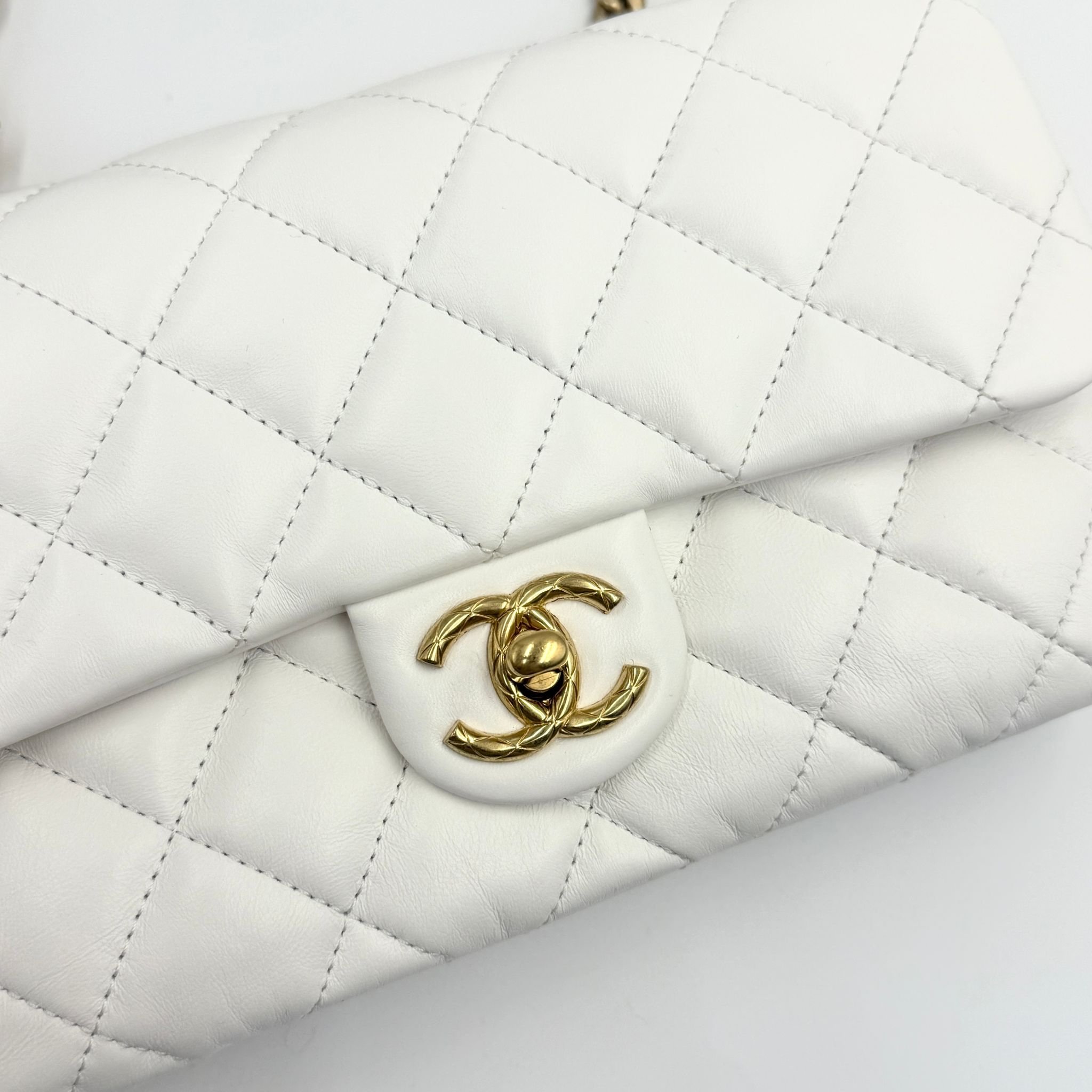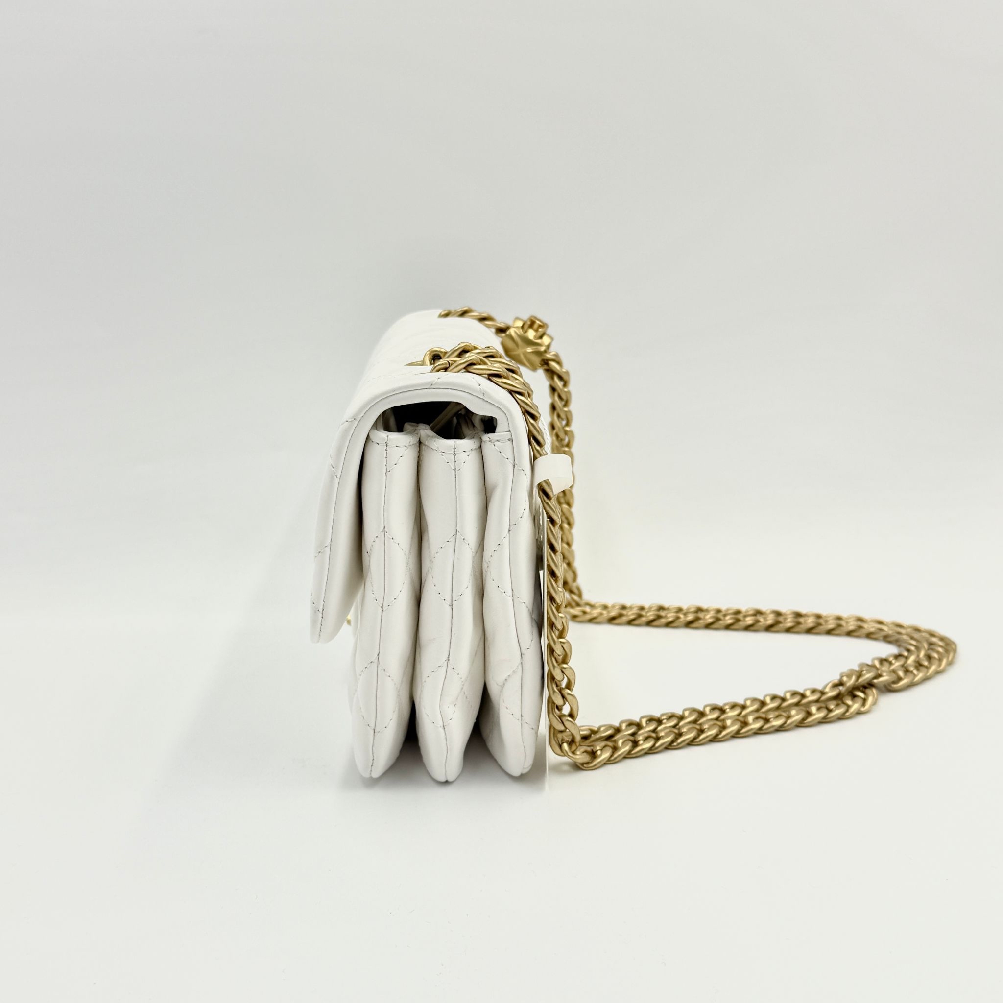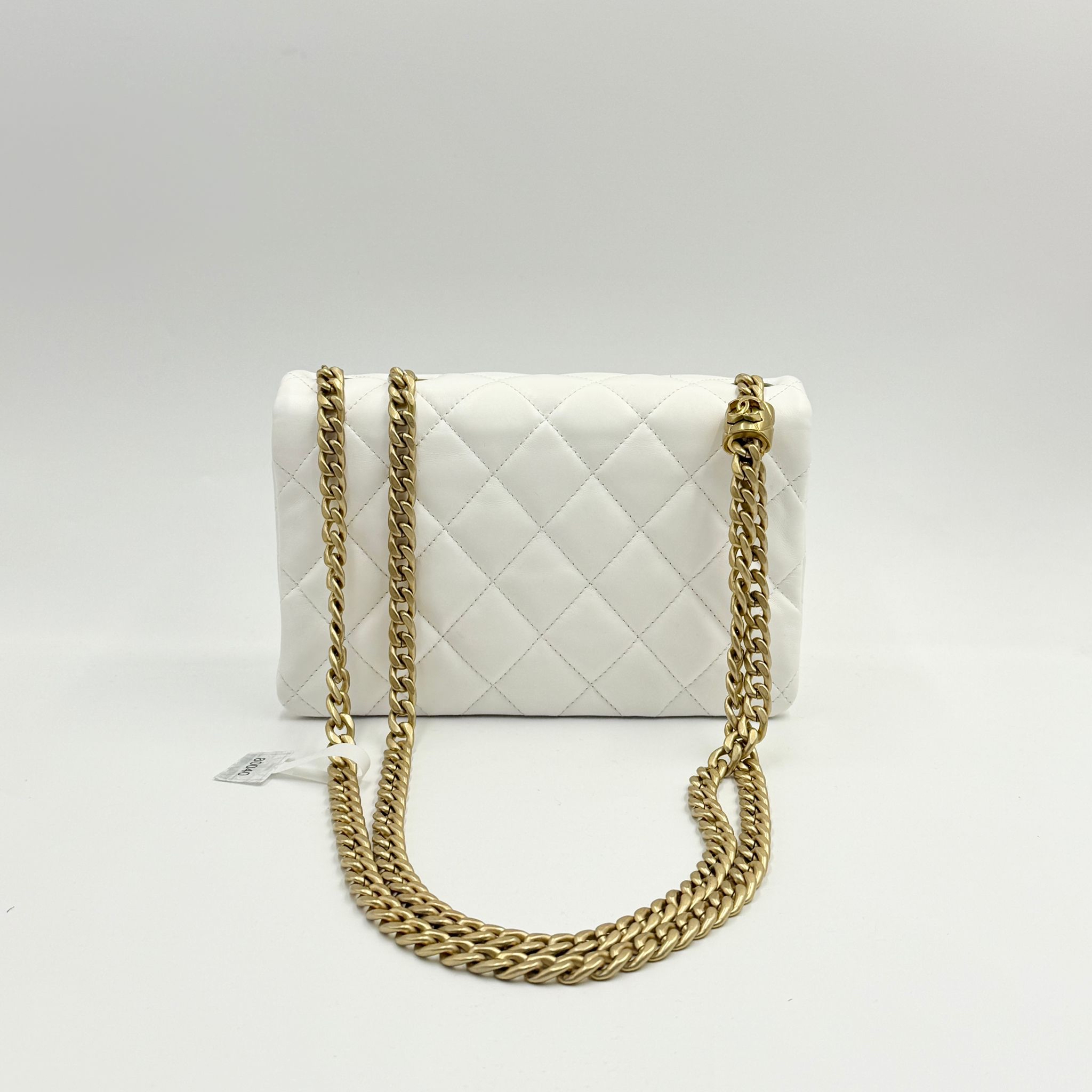 CHANEL香奈兒 方胖子鏈條包 晶片款 23年新款 白色金扣 翻蓋斜挎單肩包 材質:羊皮 顏色:白色金扣 年份:芯片 23p 成色:輕微使用痕跡 尺寸:22*14*8cm 專櫃價:48000