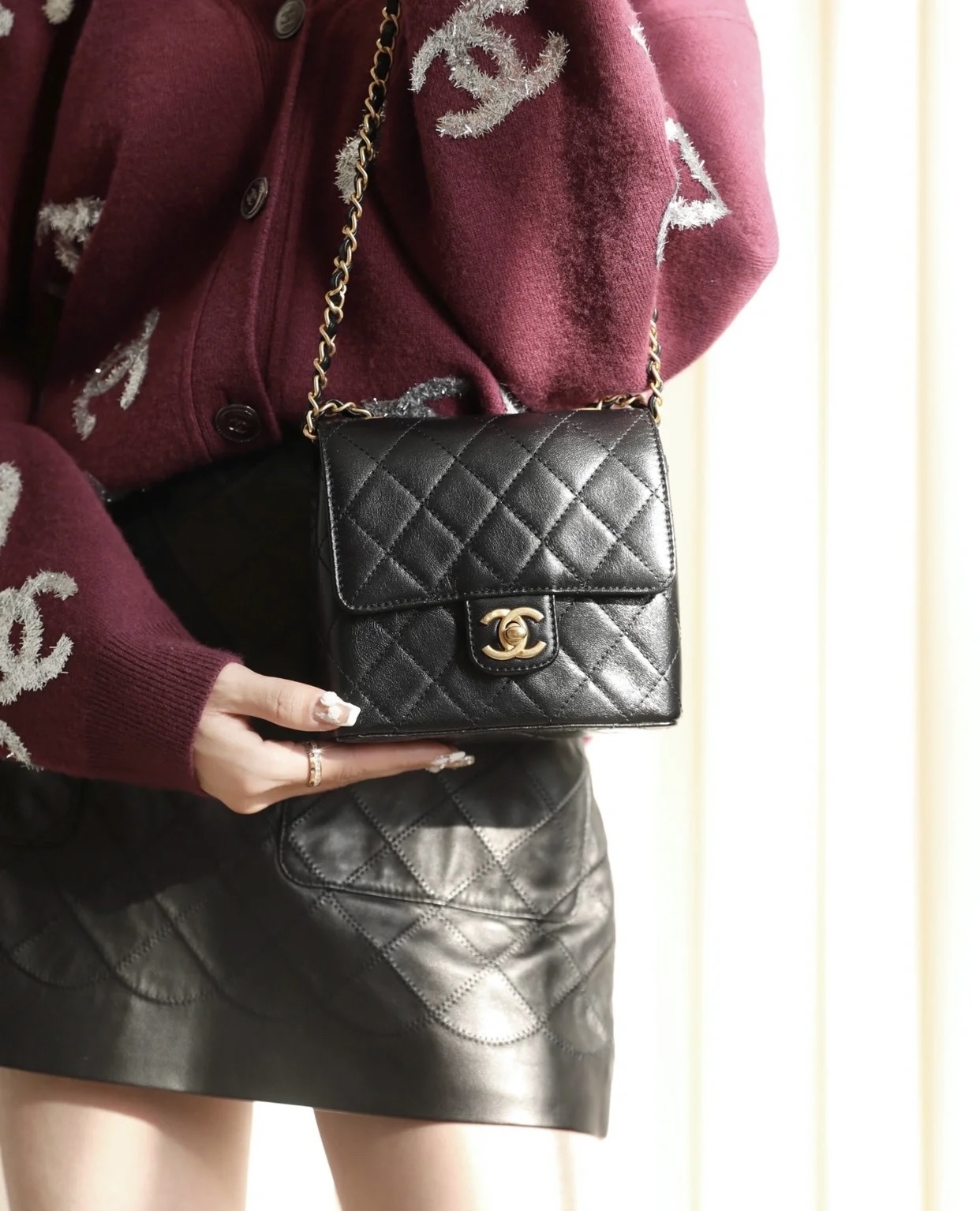 CHANEL 22K mini flap 17 山羊皮方胖子黑色金扣