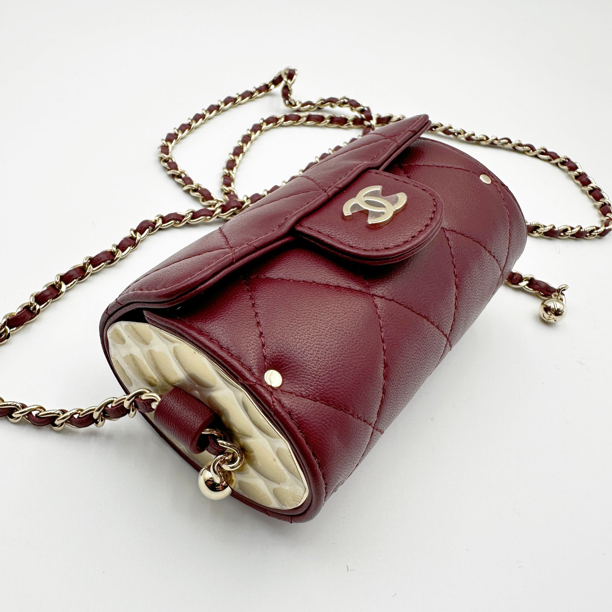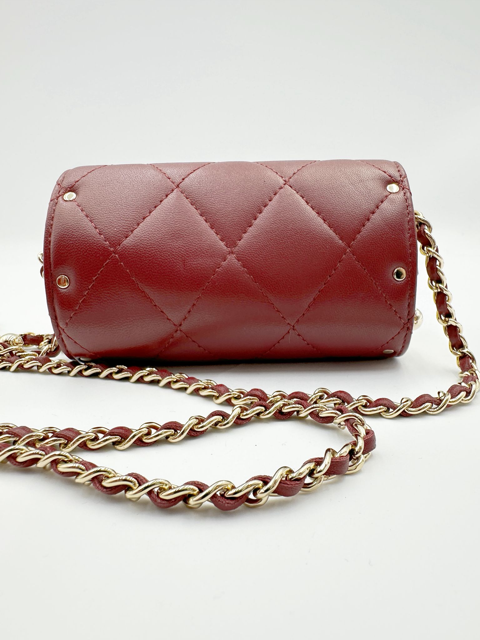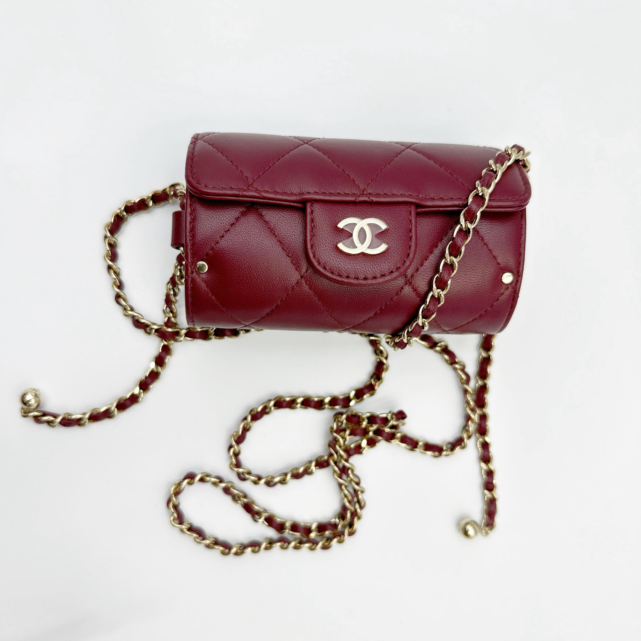 CHANEL Jewel Card Holder with chain 羊皮圓筒型迷你袋