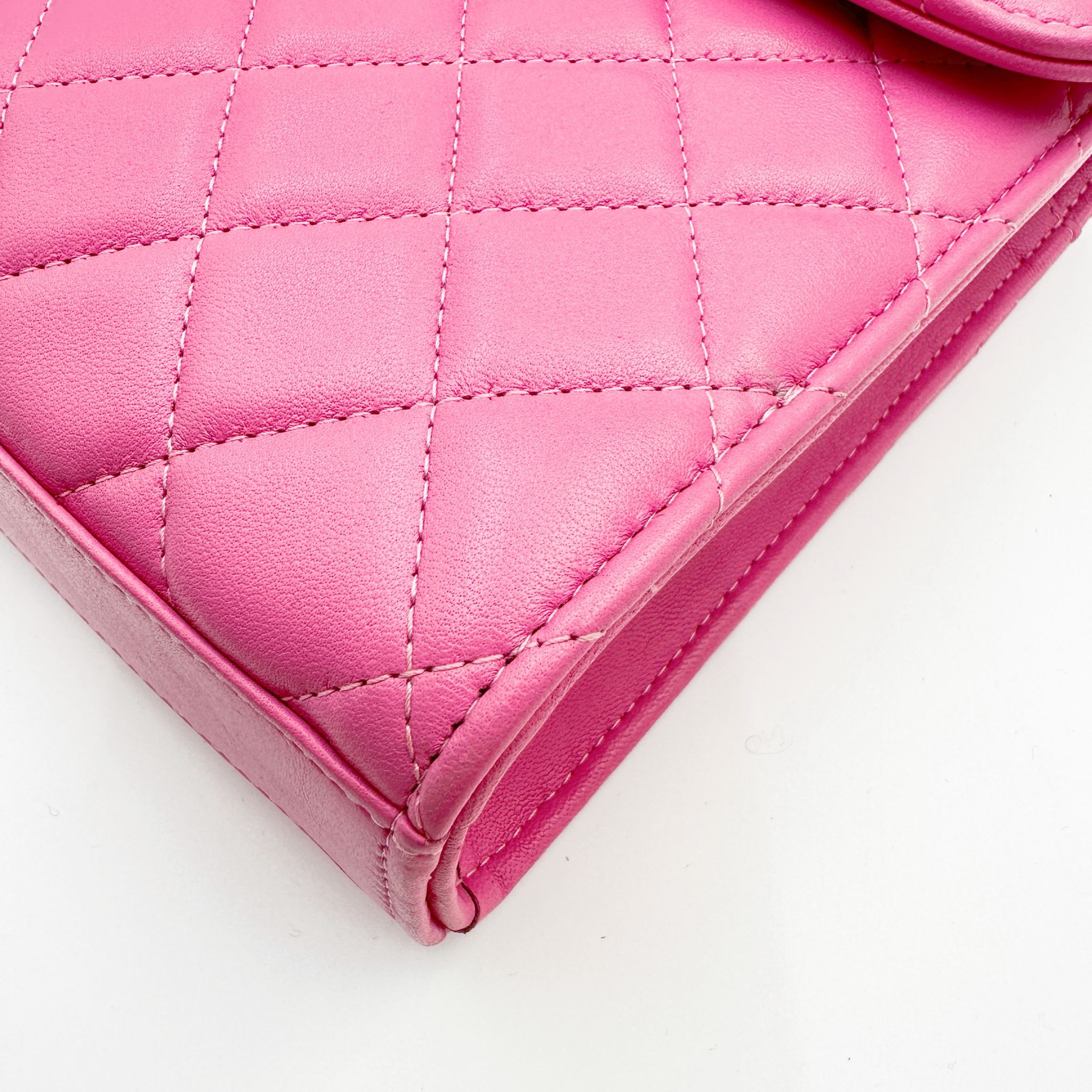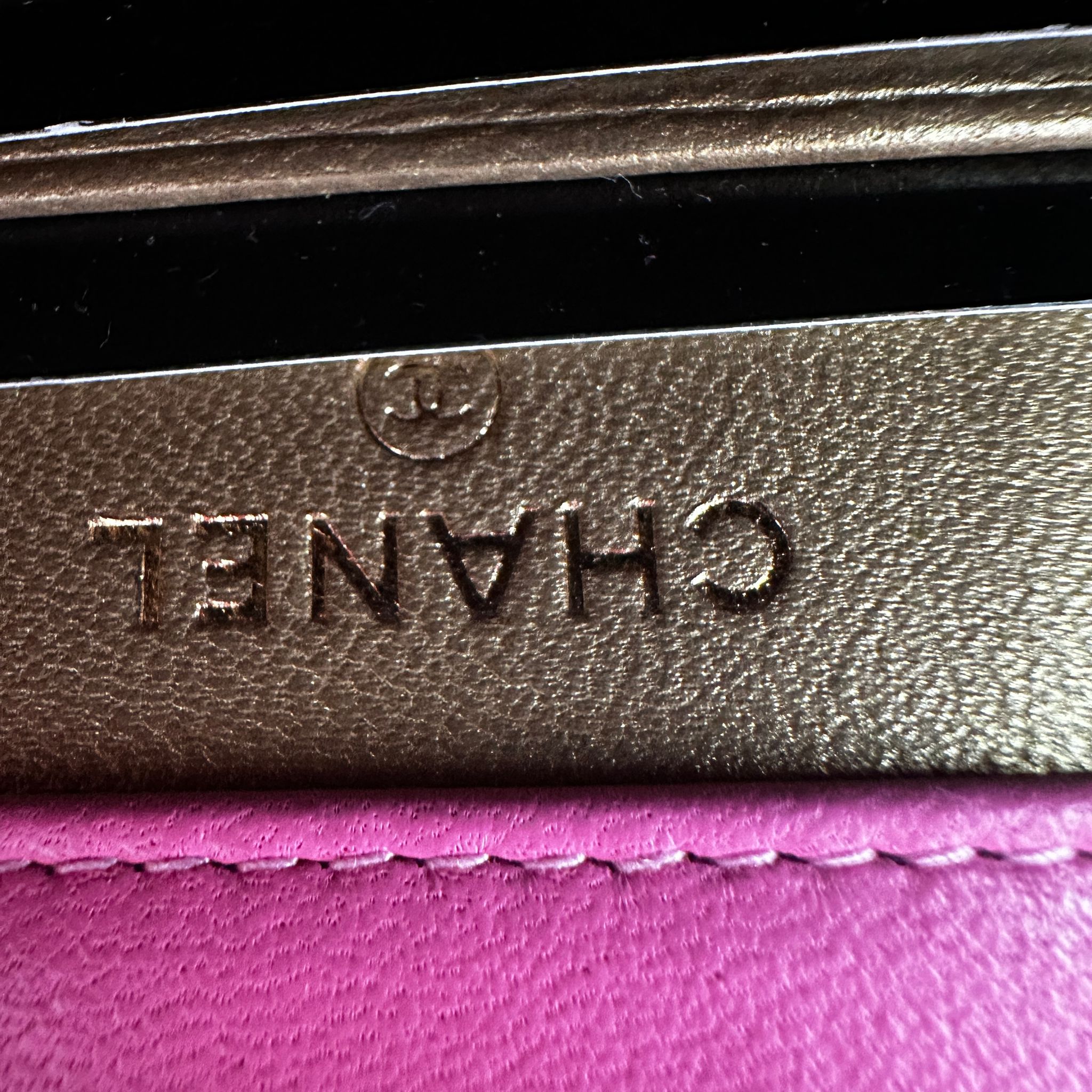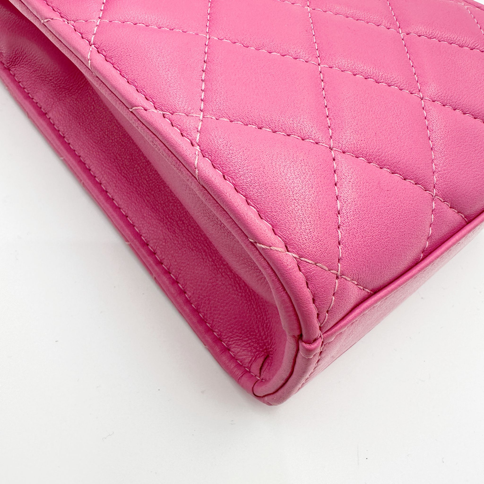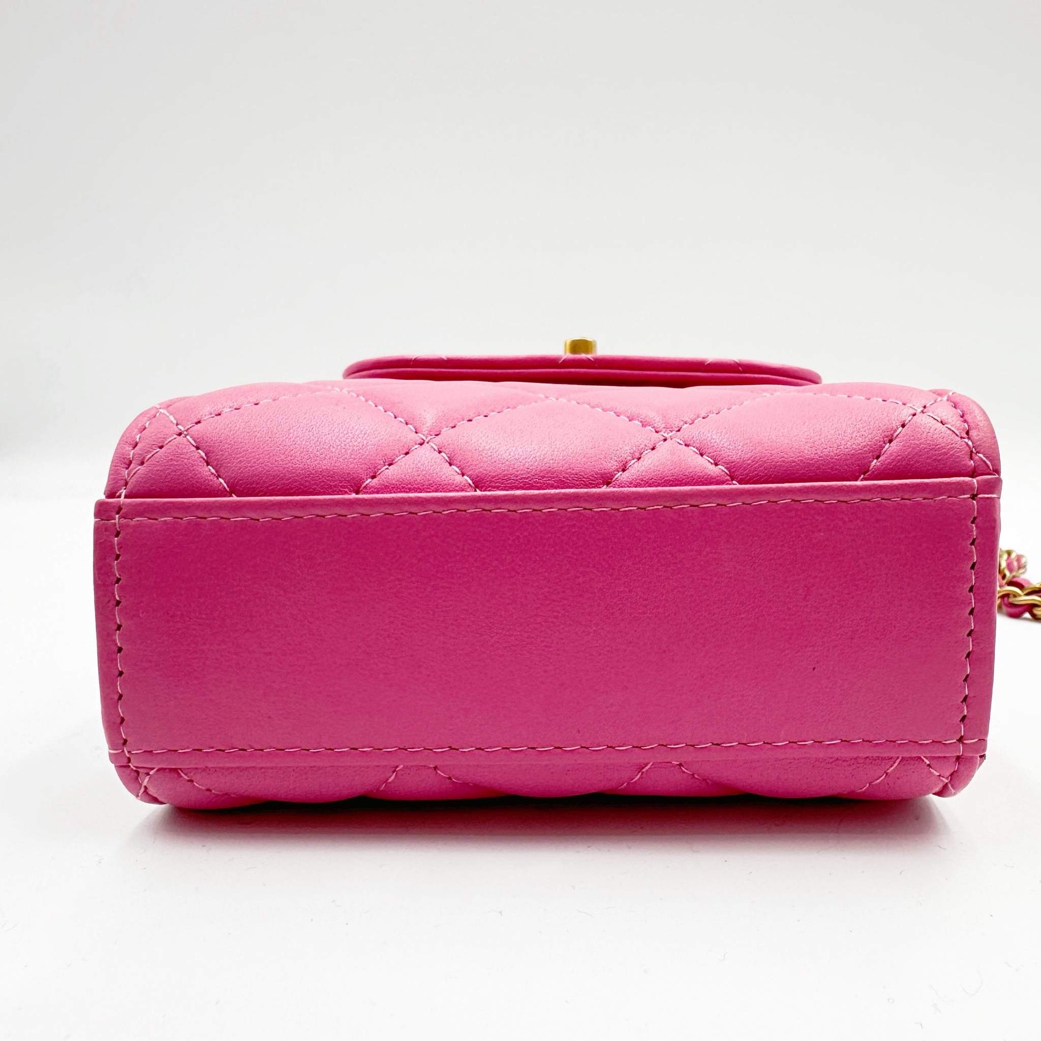 CHANEL Pearl Crush Phone Holder小金球菱格紋珍珠口蓋手機袋 尺寸: 11.5 x 6.5 x 18 皮質: 羊皮 顏色: 粉紅色 配件: 盒子,塵袋,黑卡 成色: 輕微使用痕跡 年份: 29xxxxxx 原價 20000 UP