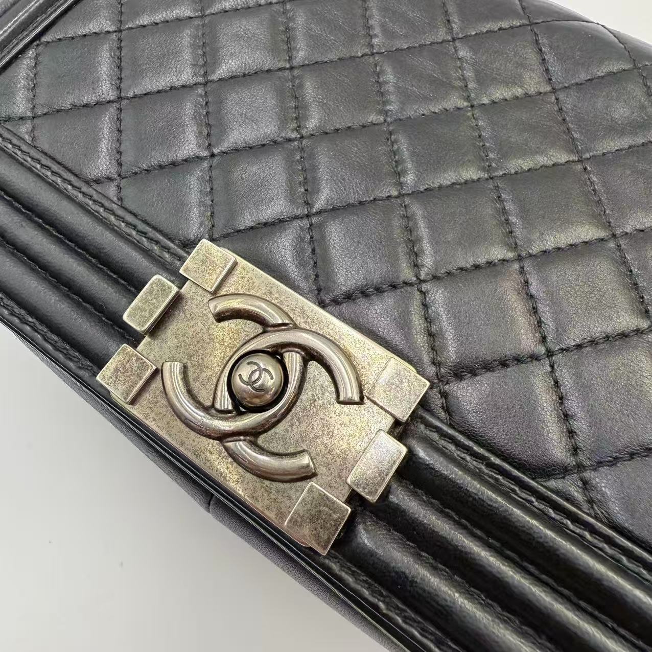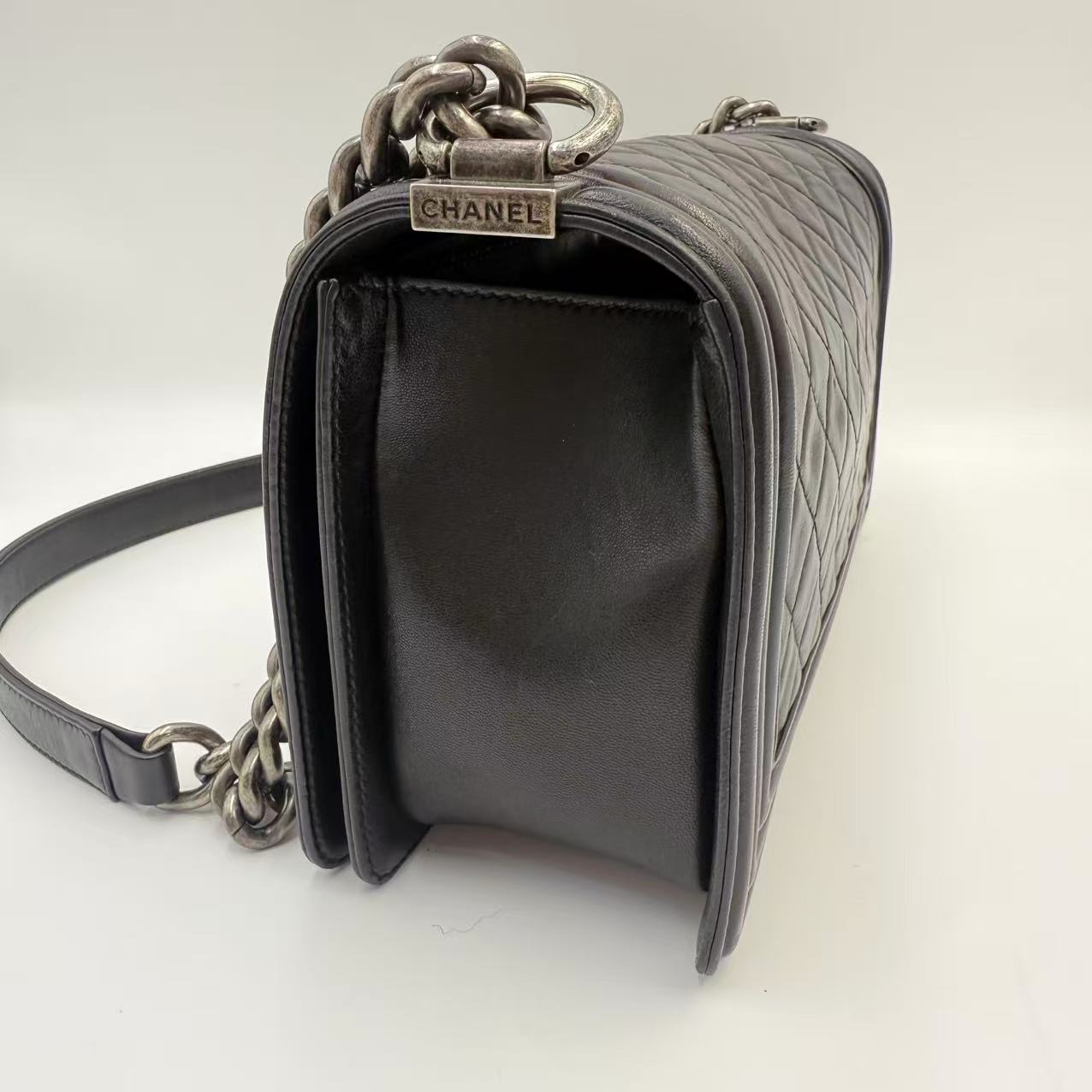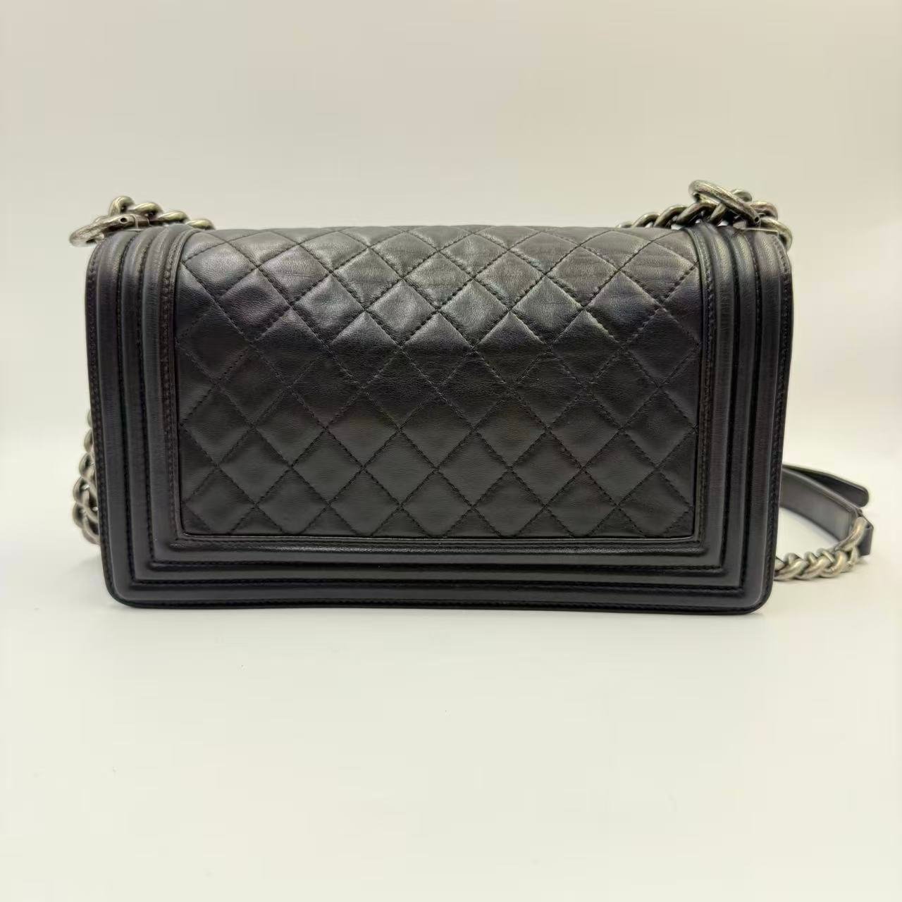 CHANEL boy25 黑色銀扣羊皮 尺寸: 15 x 25 x 9cm 皮質: 羊皮 顏色: 黑色銀扣 配件: 黑卡 成色: 輕微使用痕跡 年份: 15xxxxxx 原價 50000 UP