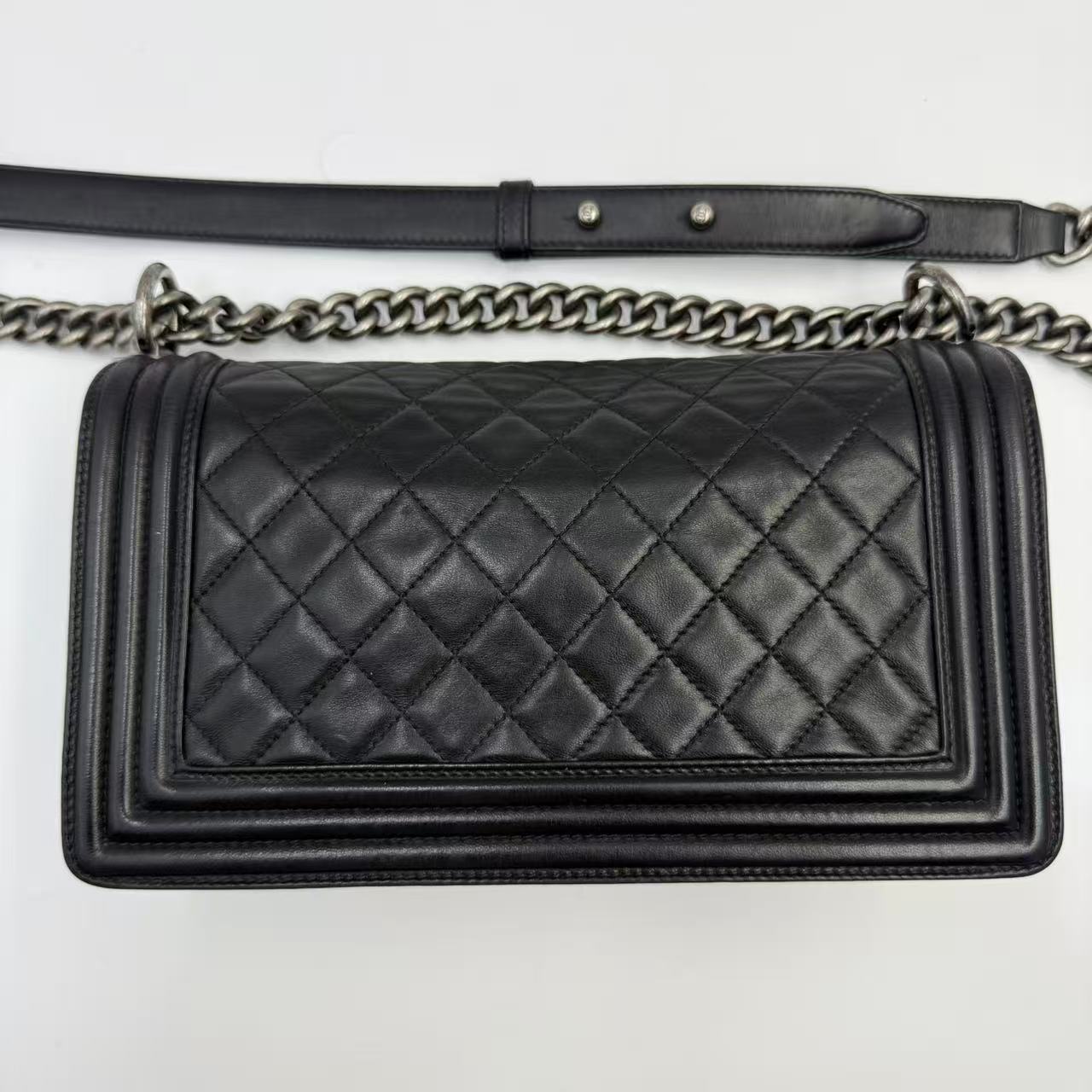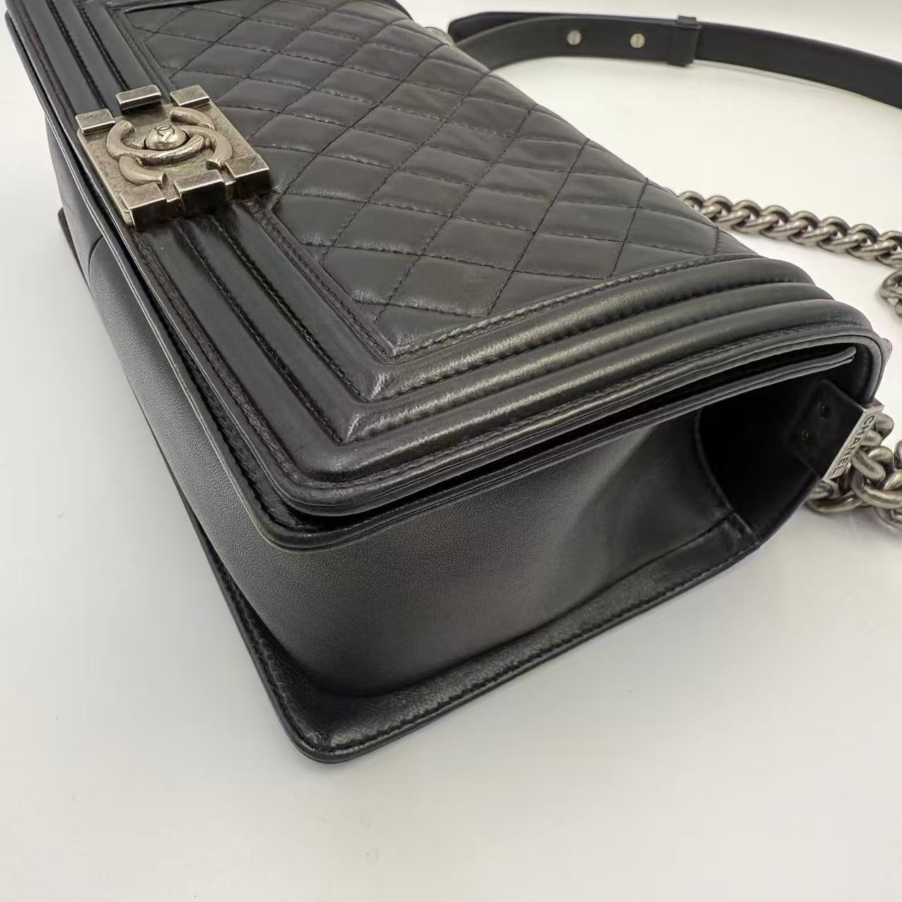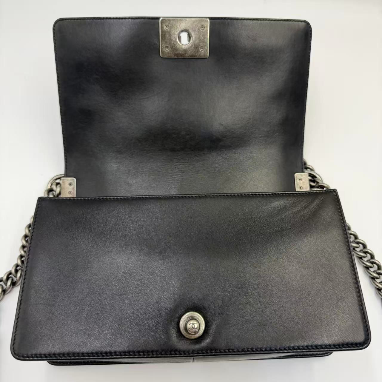 CHANEL boy25 黑色銀扣羊皮 尺寸: 15 x 25 x 9cm 皮質: 羊皮 顏色: 黑色銀扣 配件: 黑卡 成色: 輕微使用痕跡 年份: 15xxxxxx 原價 50000 UP
