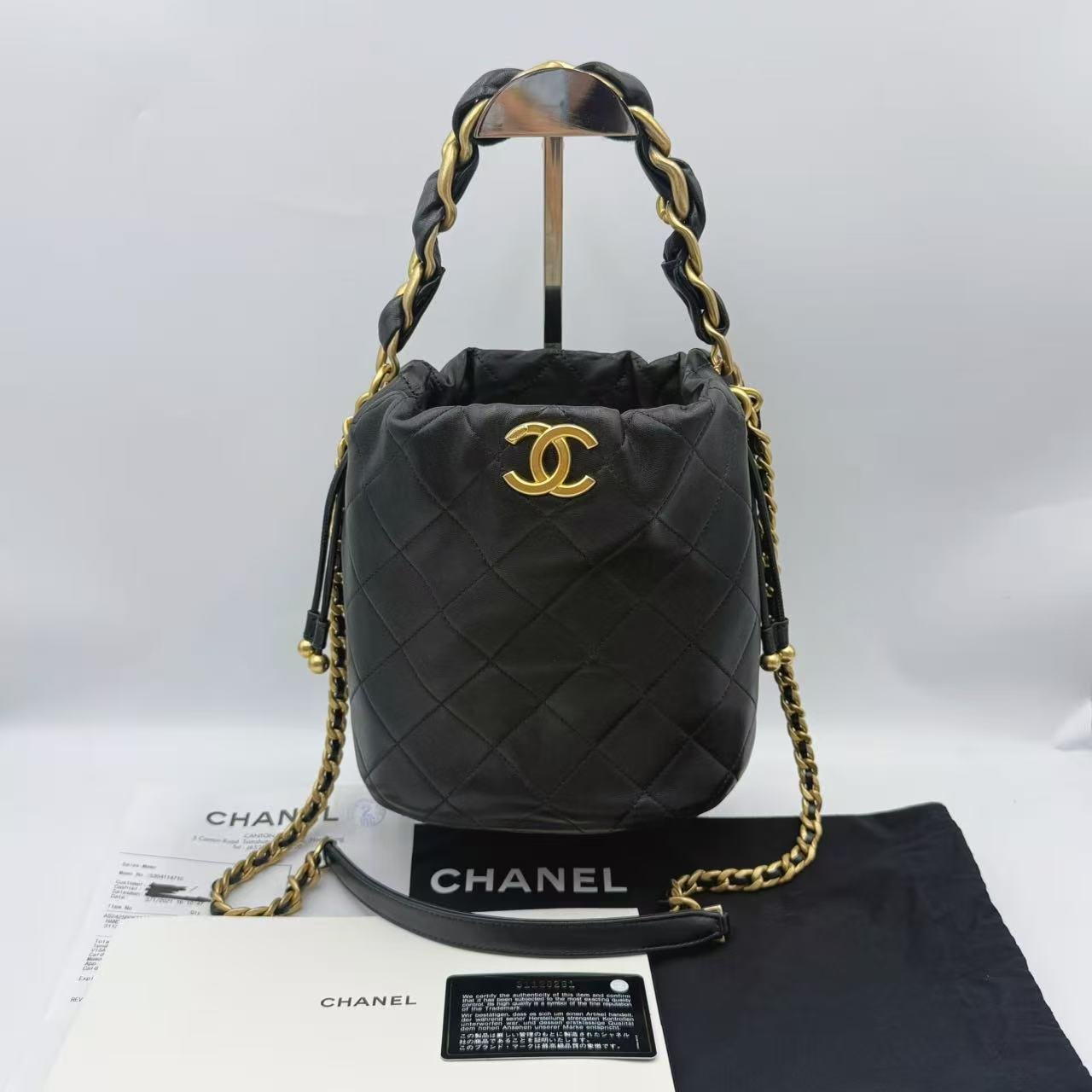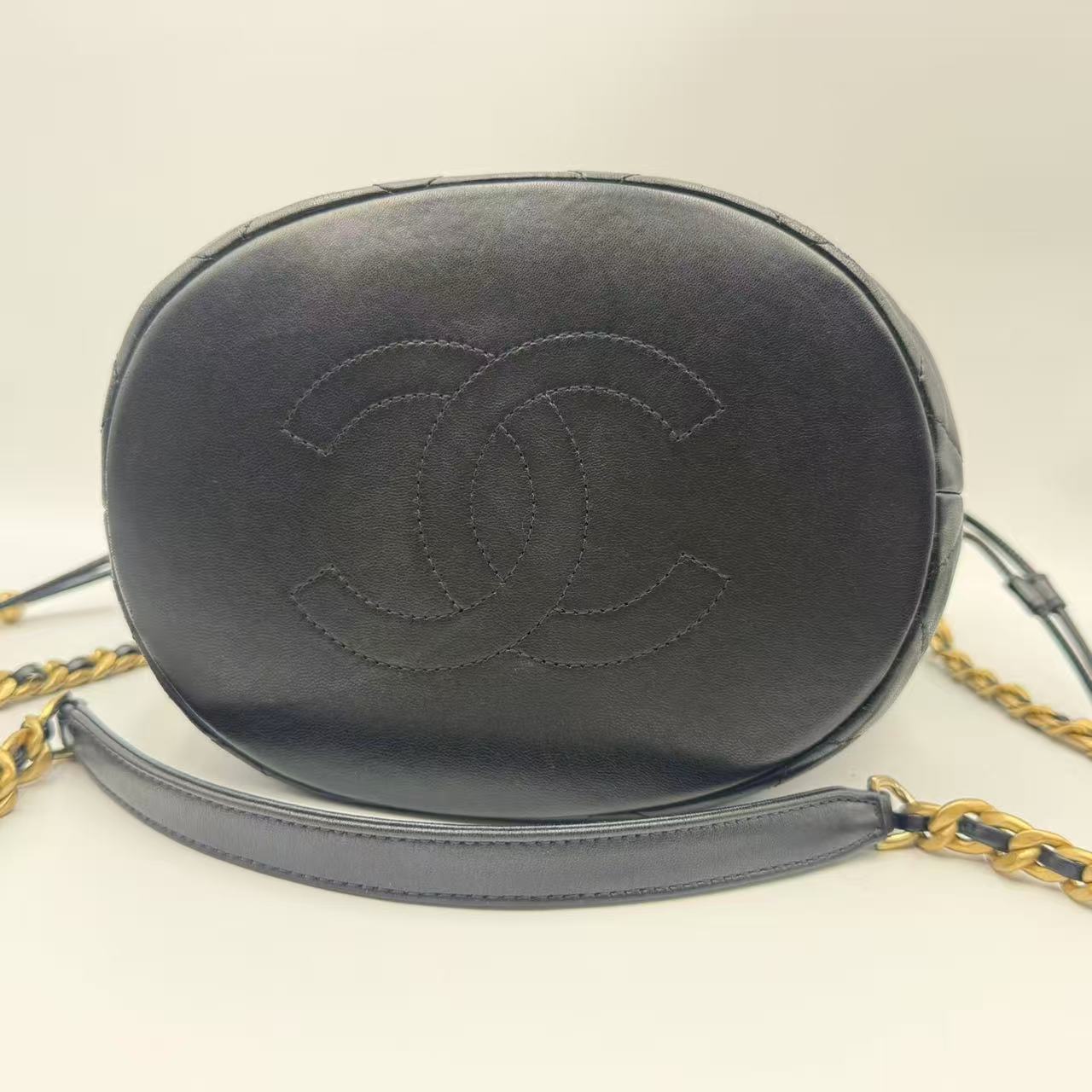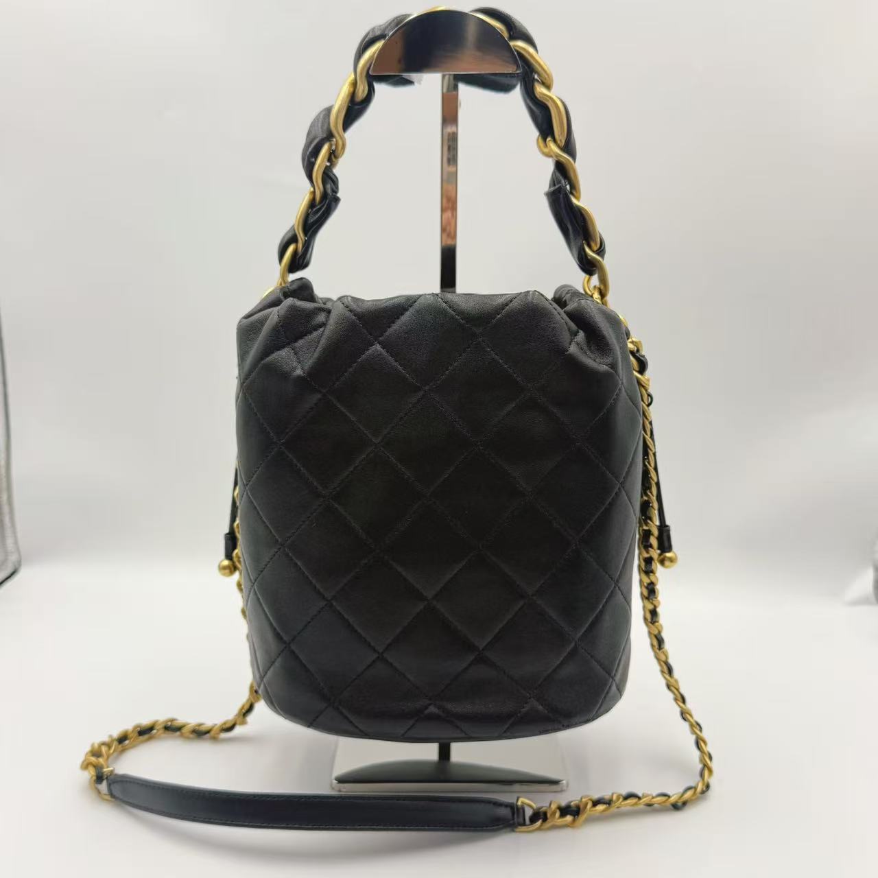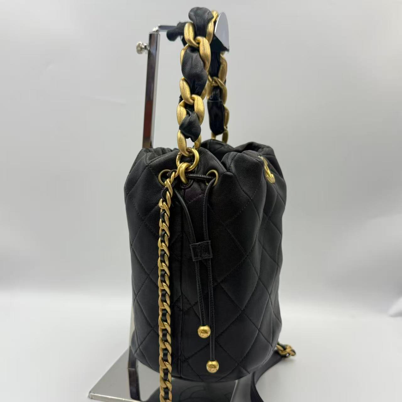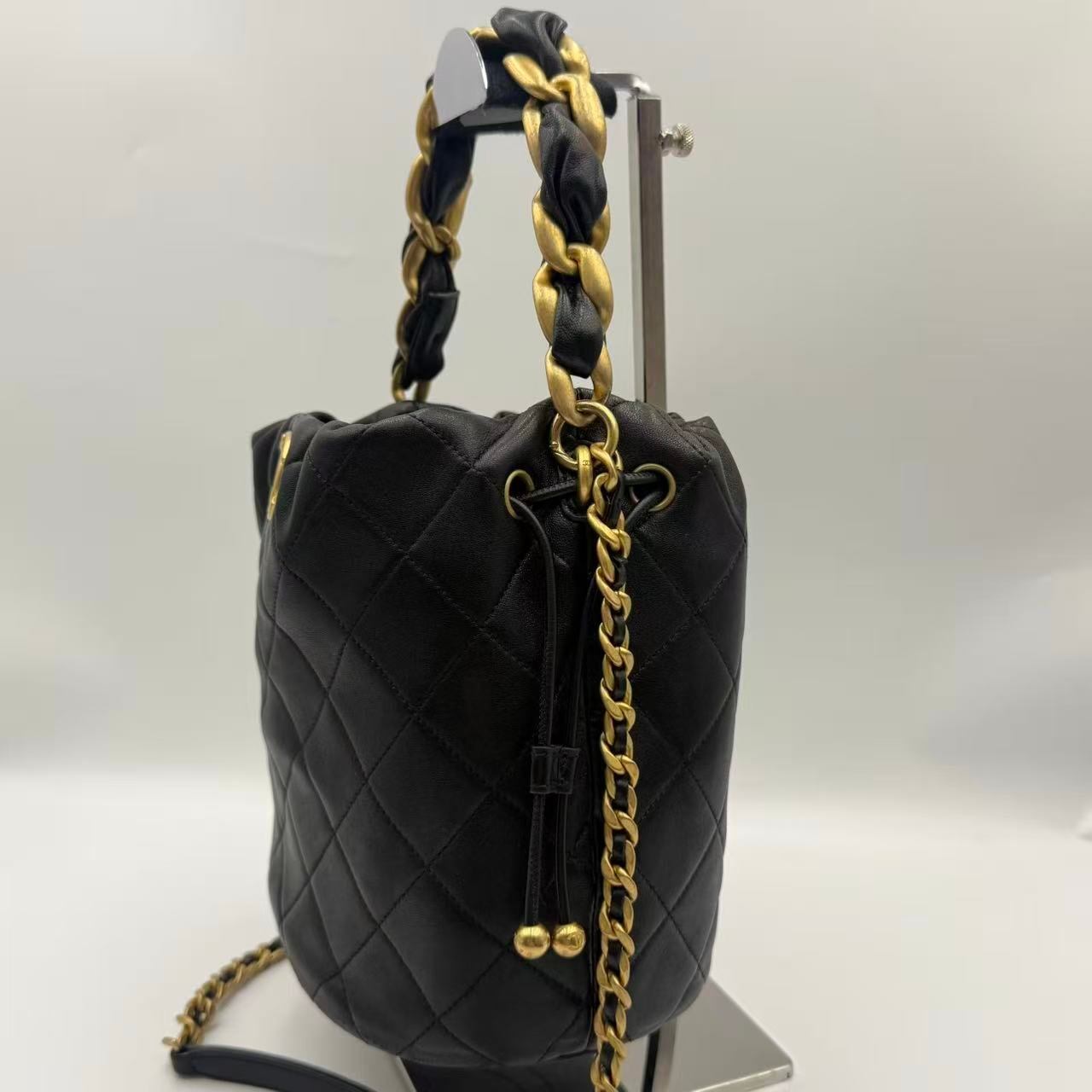 Chanel 黑色小金球抽繩菱格 水桶兩用袋(斜揹/手挽)