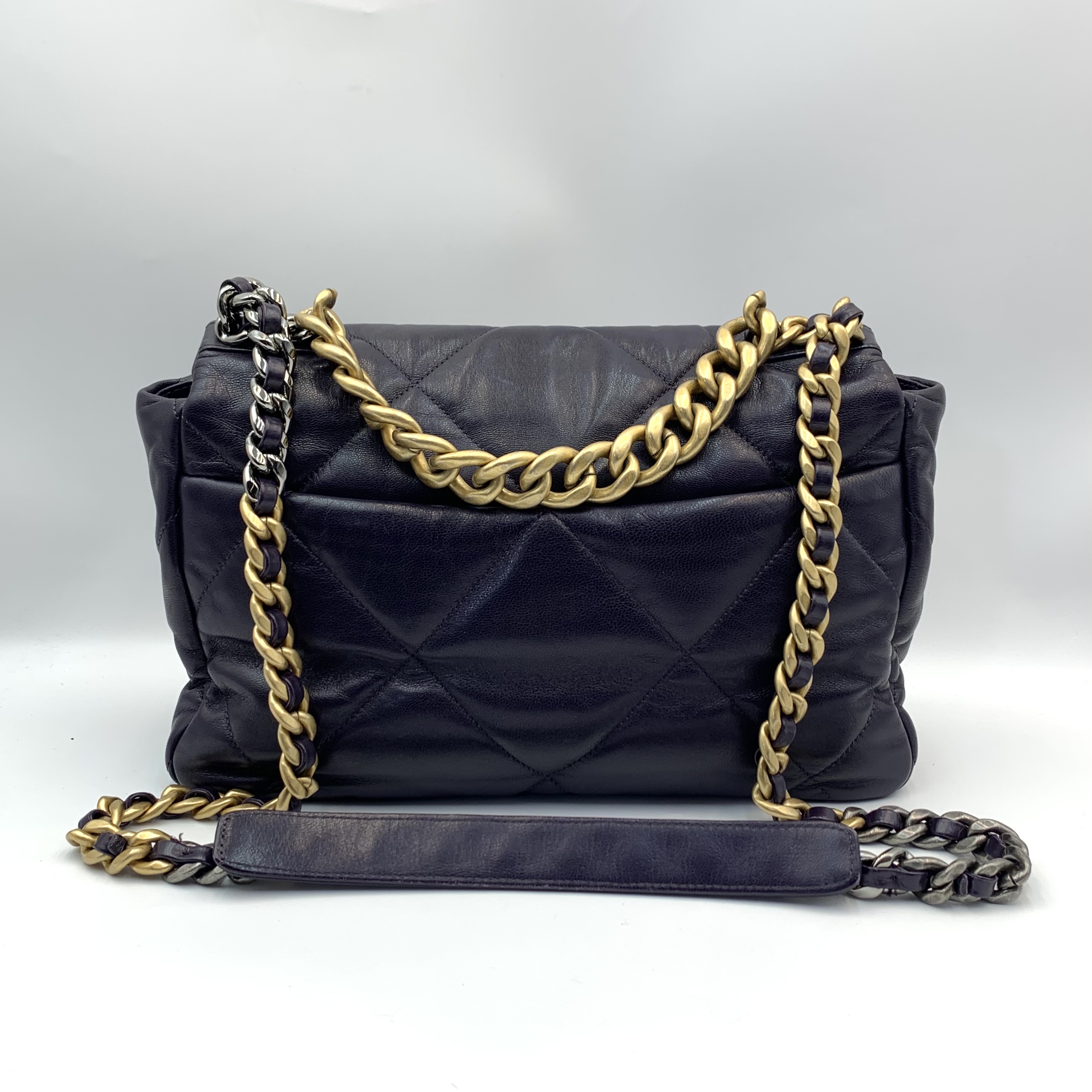 Chanel 19 bag 顏色:紫色 材質:羊皮 尺寸:30 cm 年份:30xxxxxx 配件:塵袋 成色:有使用痕跡
