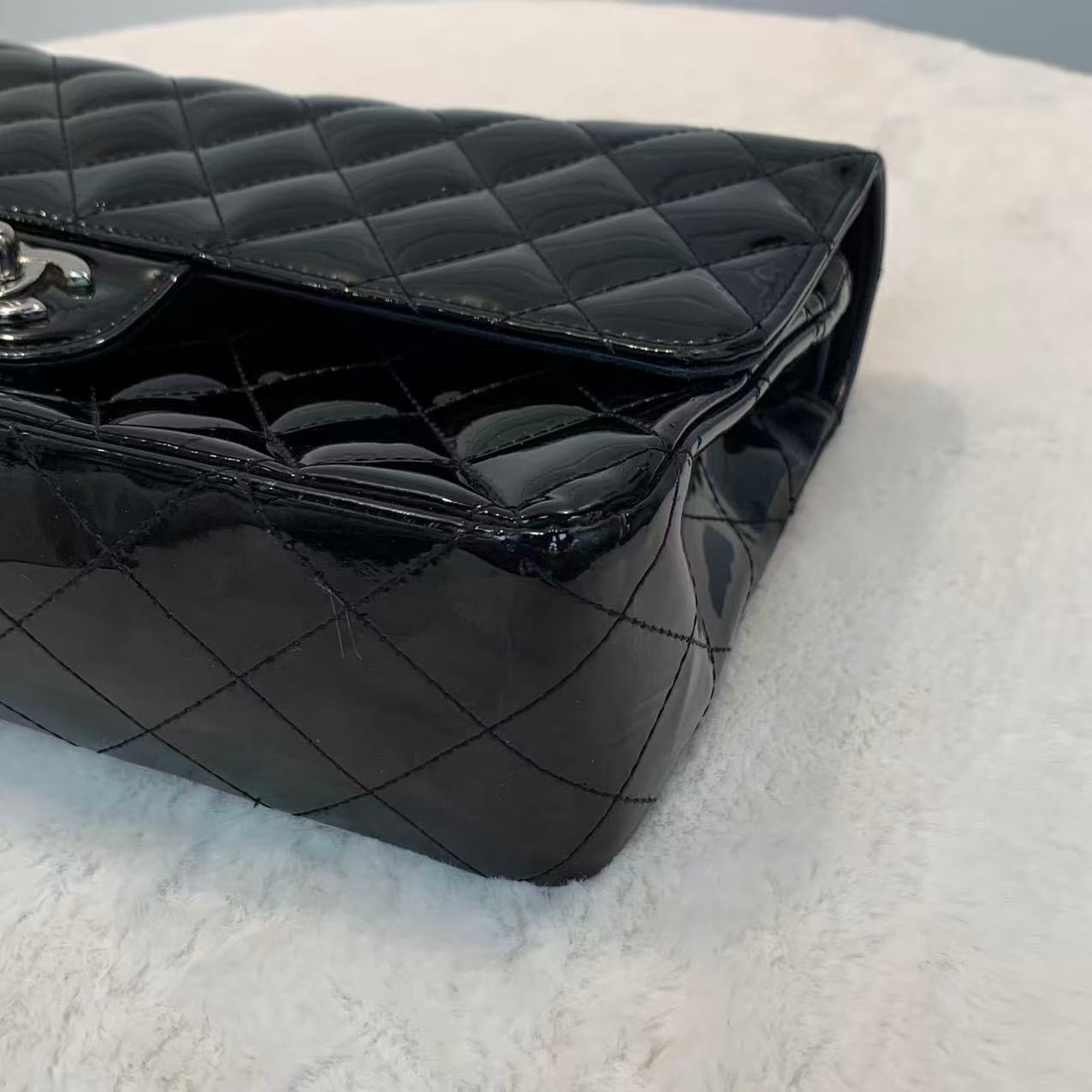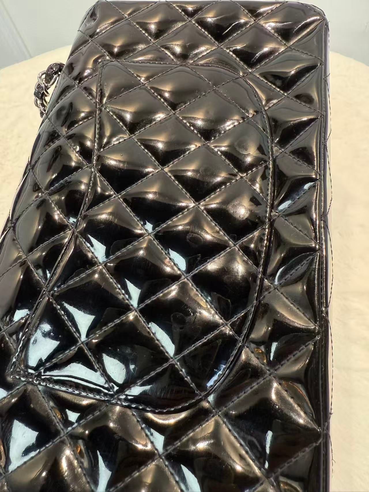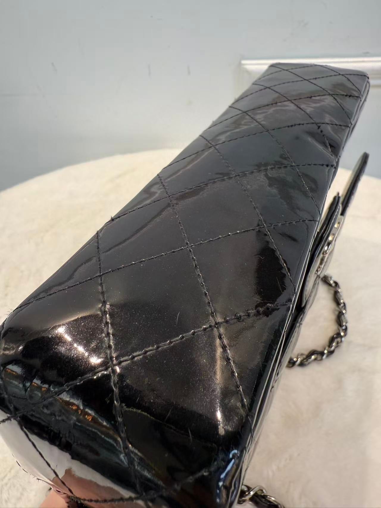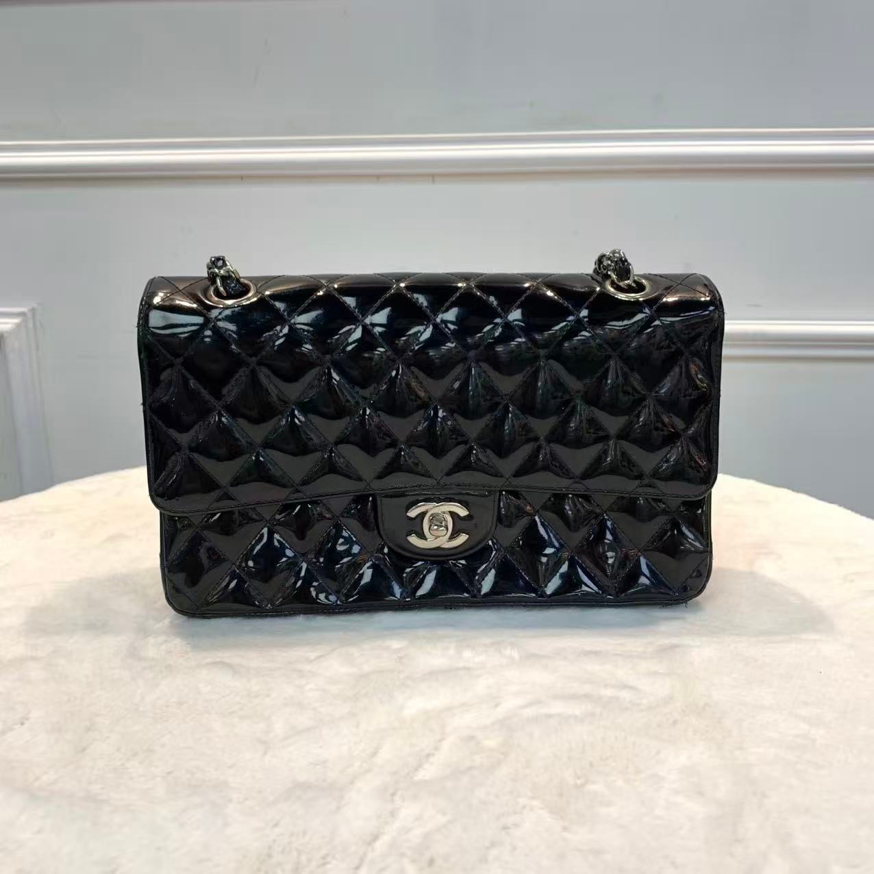 Chanel CF中號 黑銀漆皮 經典斜孭袋包