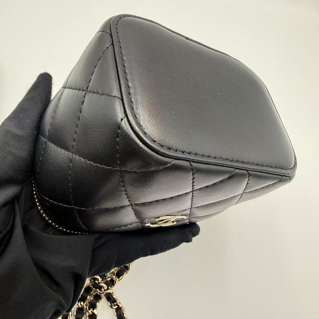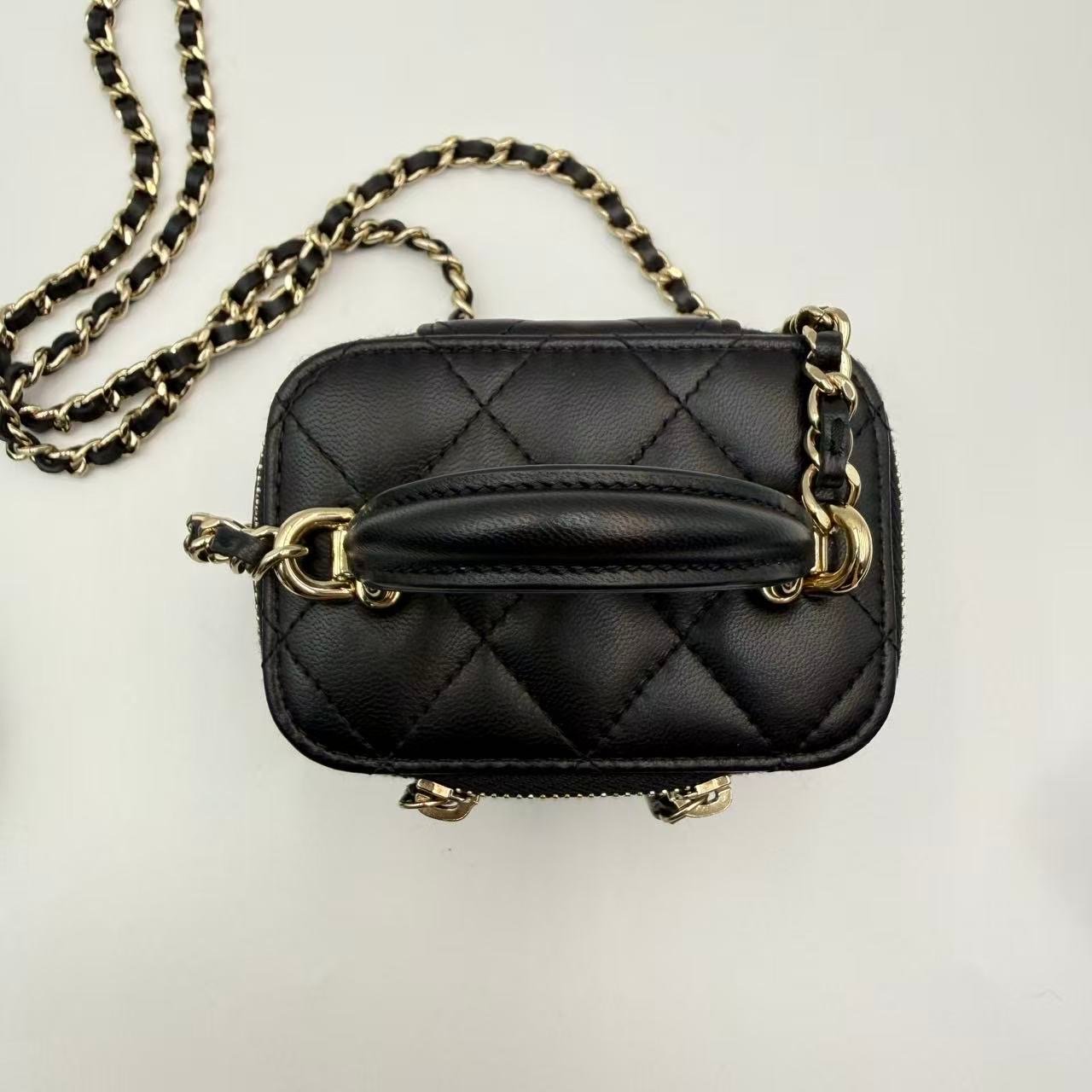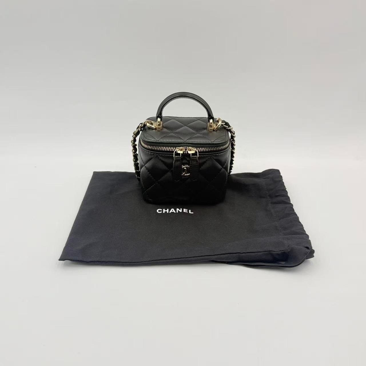 Chanel mini vanity case with handle 尺寸:8.5 X 11x 7cm 顏色:黑 配件:塵袋 成色:輕微使用痕跡 年份:31XXXXXX 原價:$22000
