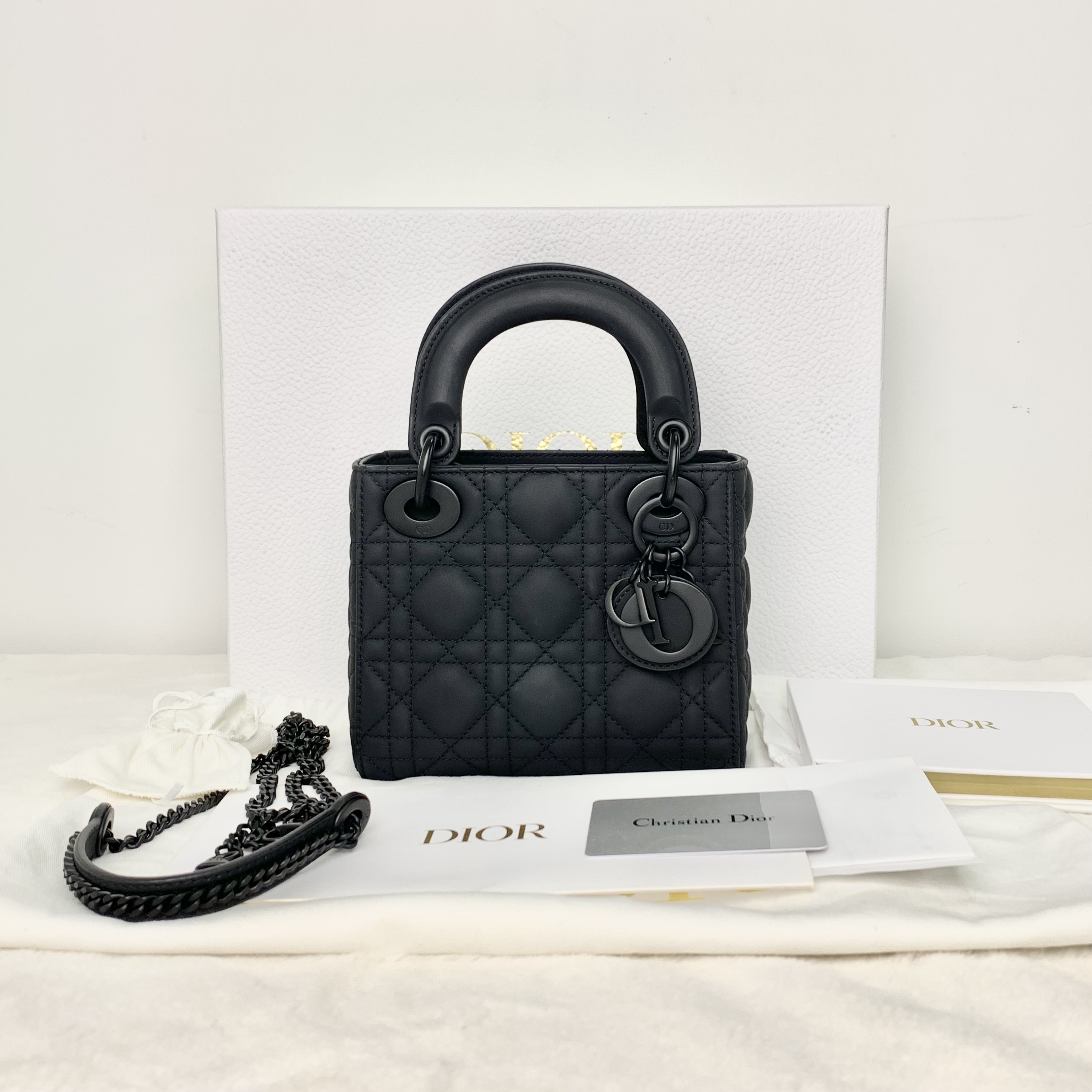Christine Dior Lady Dior 磨沙黑色3格 尺寸:17×7x15cm 皮質:牛皮 顏色:磨沙黑色 配件:塵袋,肩帶,單據 成色:輕微使用痕跡 原價:$36000