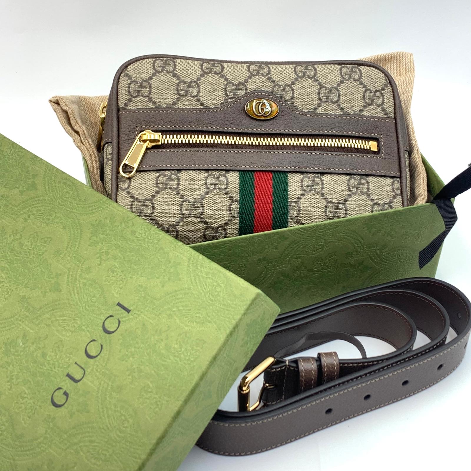 Gucci Ophidia相機袋經典老花可拆卸肩帶斜揹 爆款多功能腰包 材質:老花拼皮 顏色:棕色 成色:輕微使用痕跡 配件:塵袋