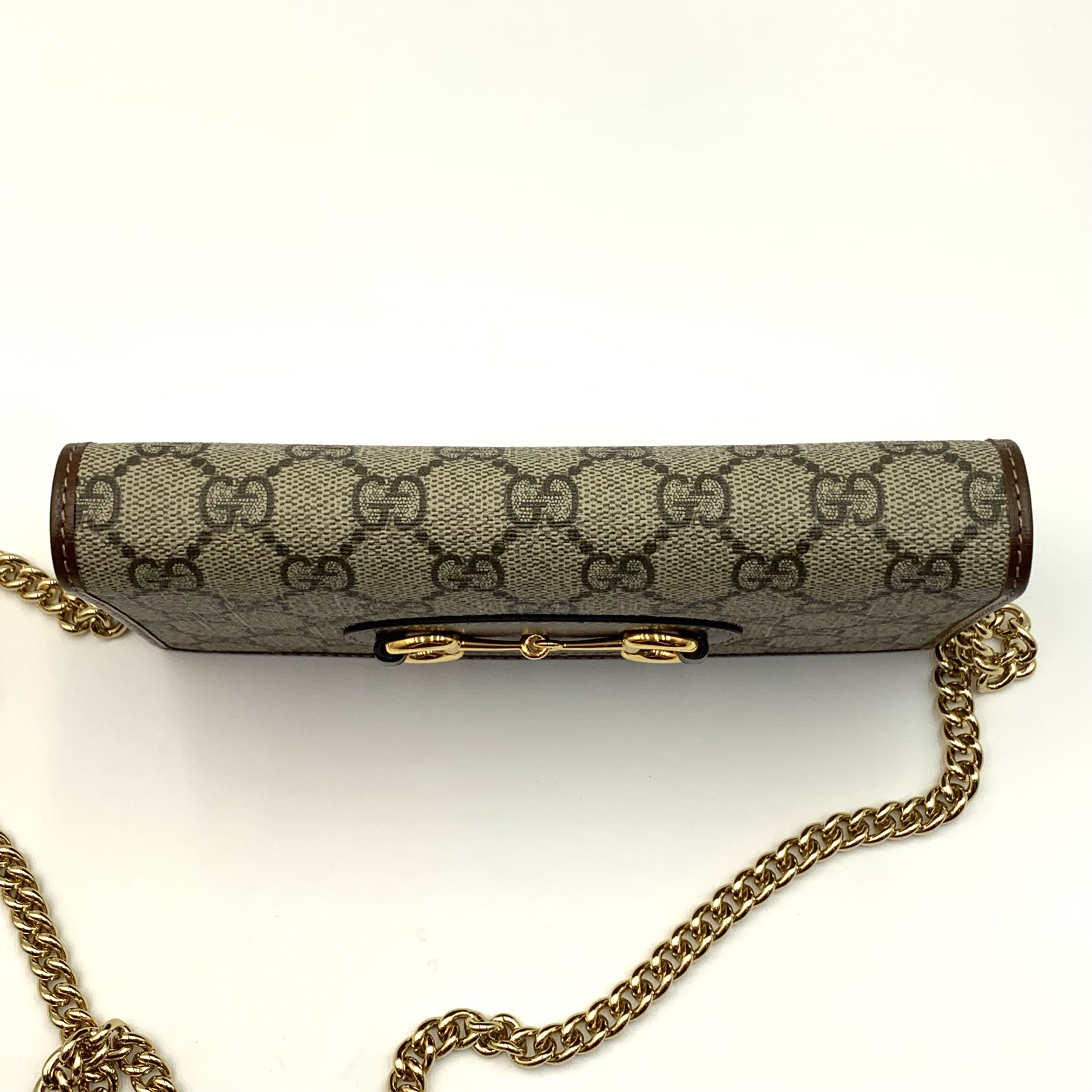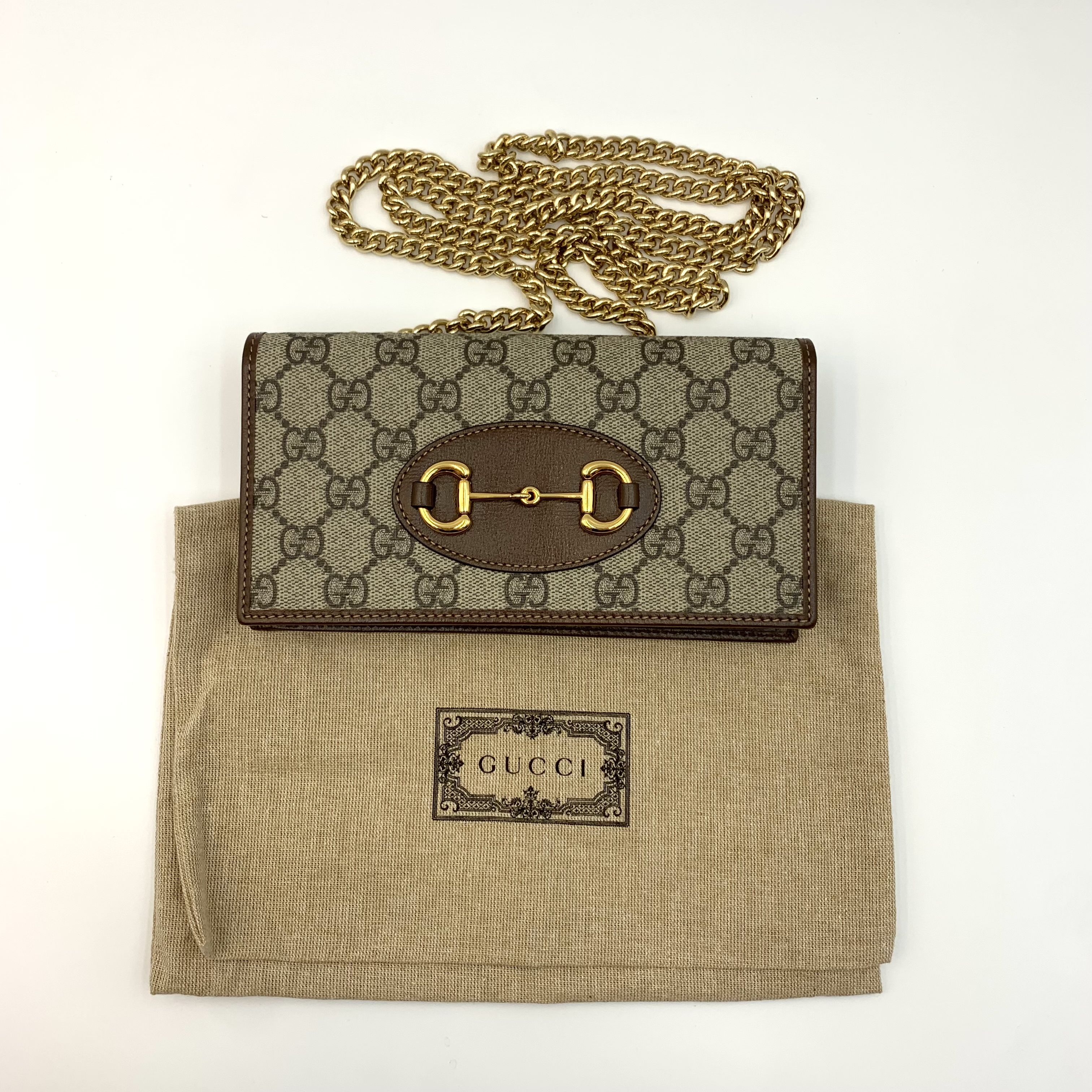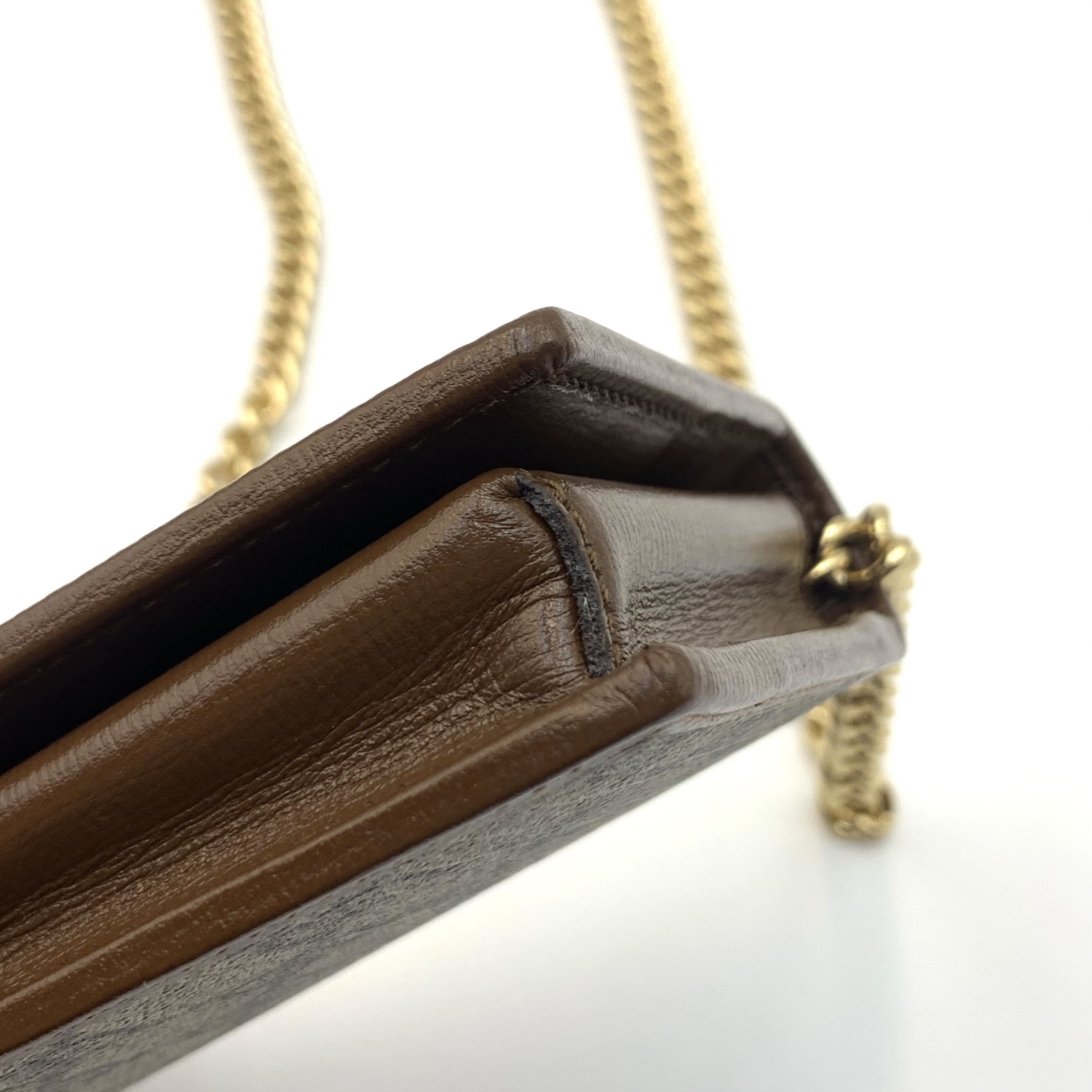 Gucci woc鏈條包復古斜挎包經典老花馬街扣 爆款女士手袋 材質:老花拼皮 顏色:棕色 成色:輕微使用痕跡 尺寸:19*10*3cm 配件:塵袋