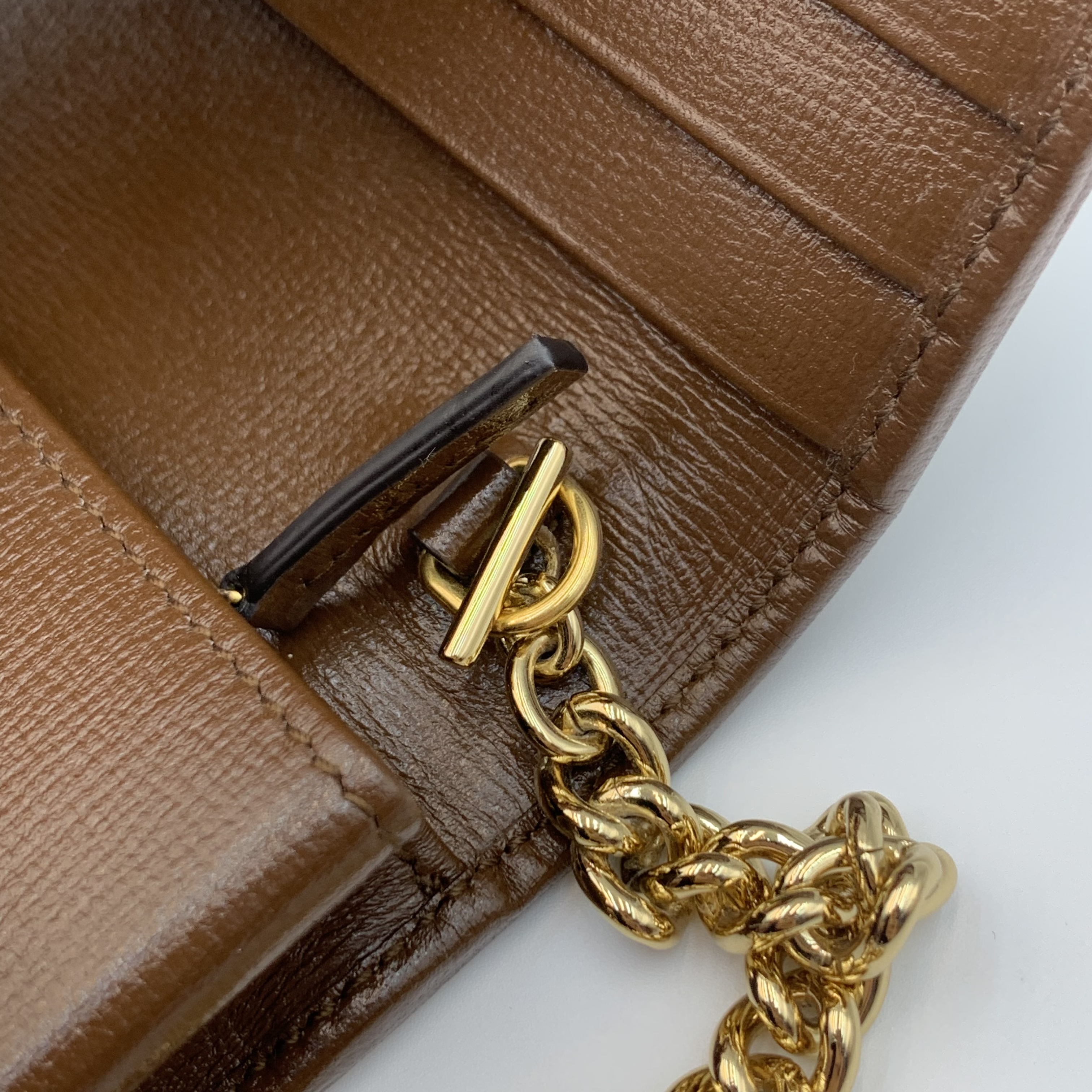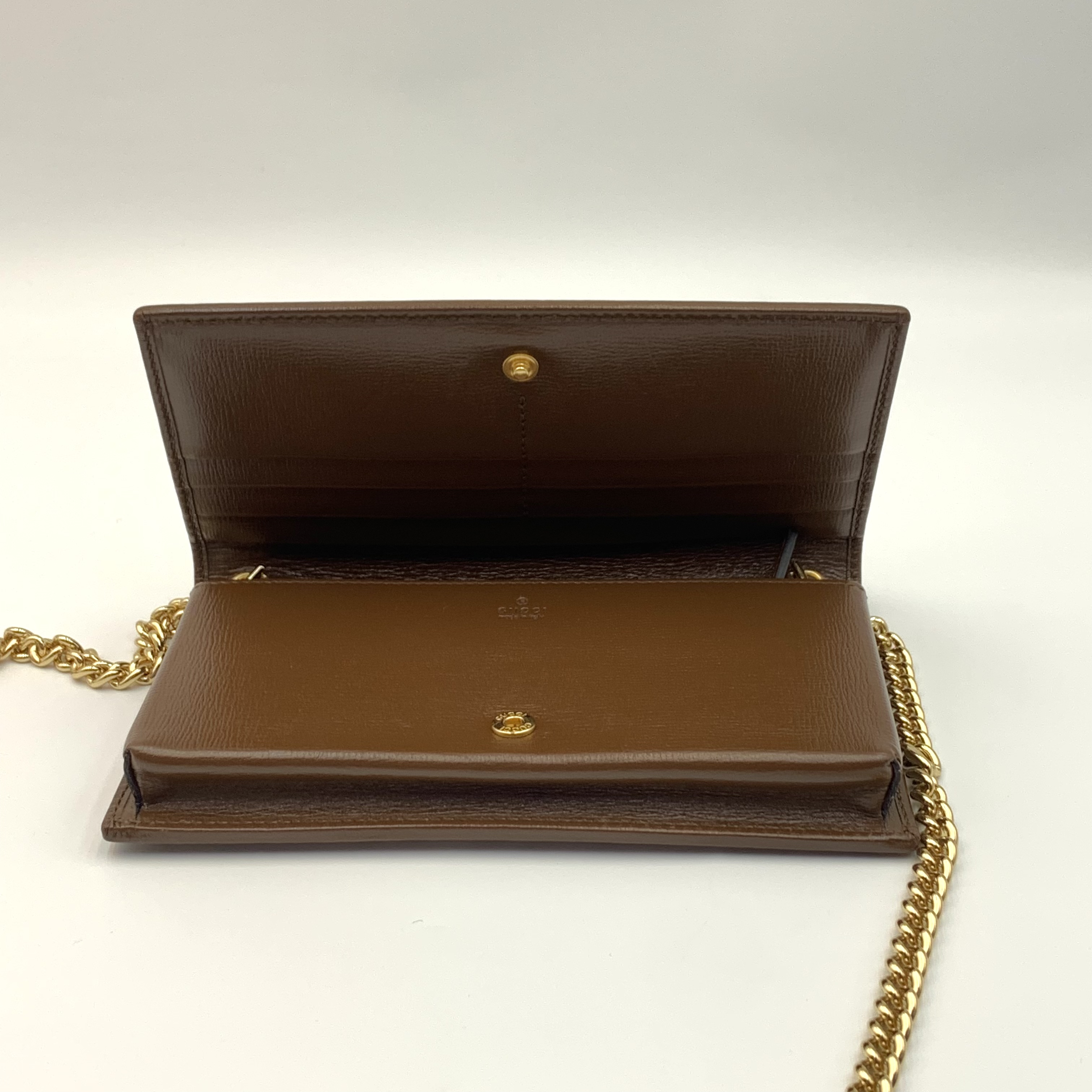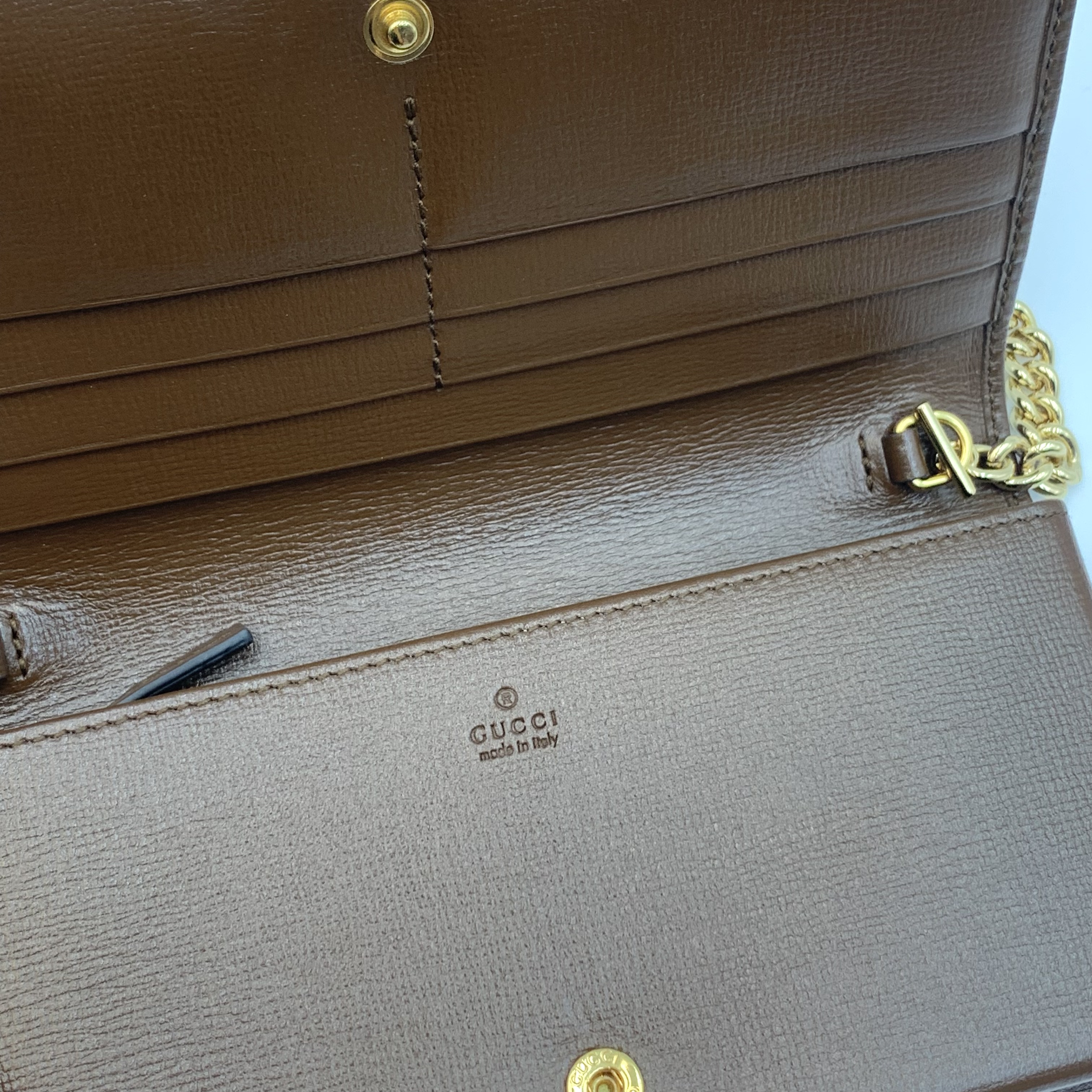 Gucci woc鏈條包復古斜挎包經典老花馬街扣 爆款女士手袋 材質:老花拼皮 顏色:棕色 成色:輕微使用痕跡 尺寸:19*10*3cm 配件:塵袋