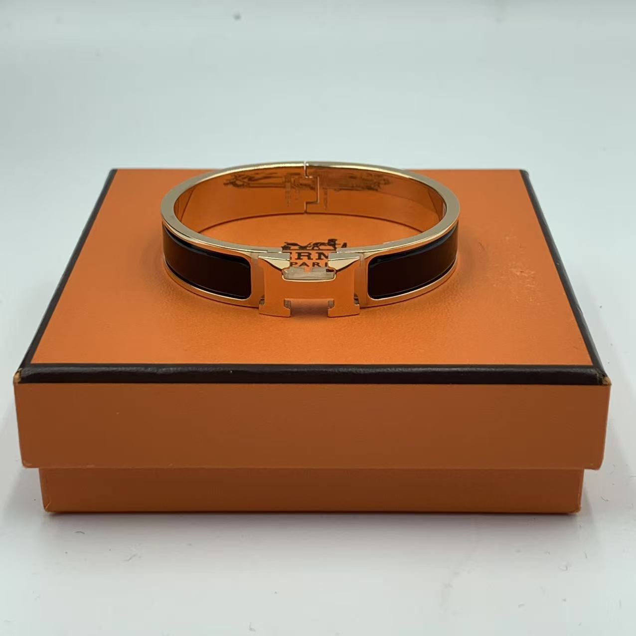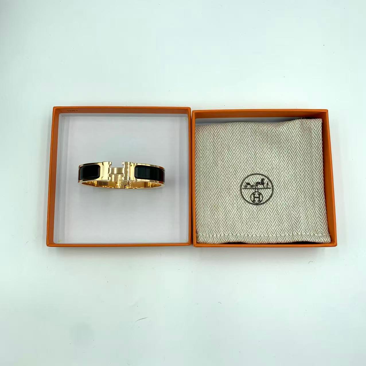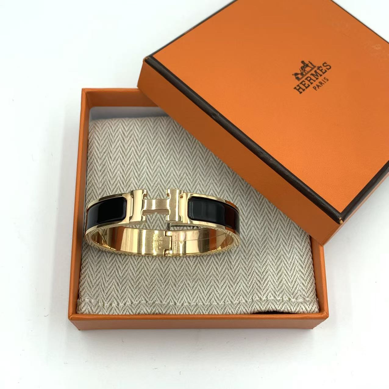 Hermes手鐲 H琺瑯黑色金扣H 經典H飾品 成色:閒置新 附件:盒子,塵袋