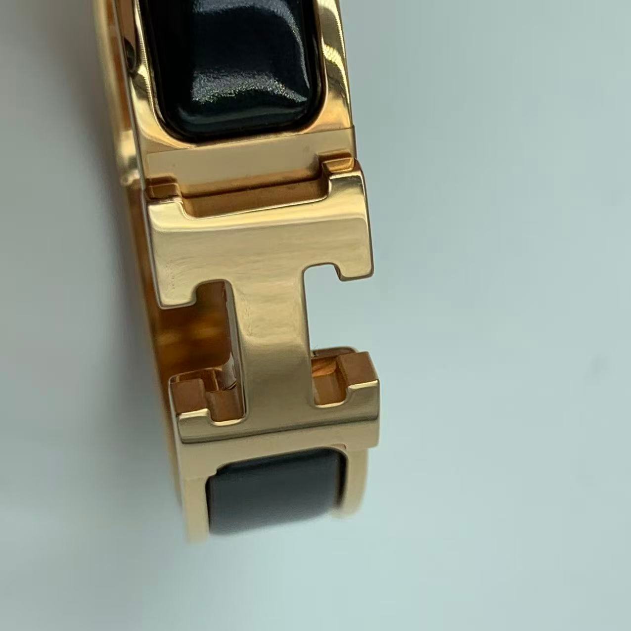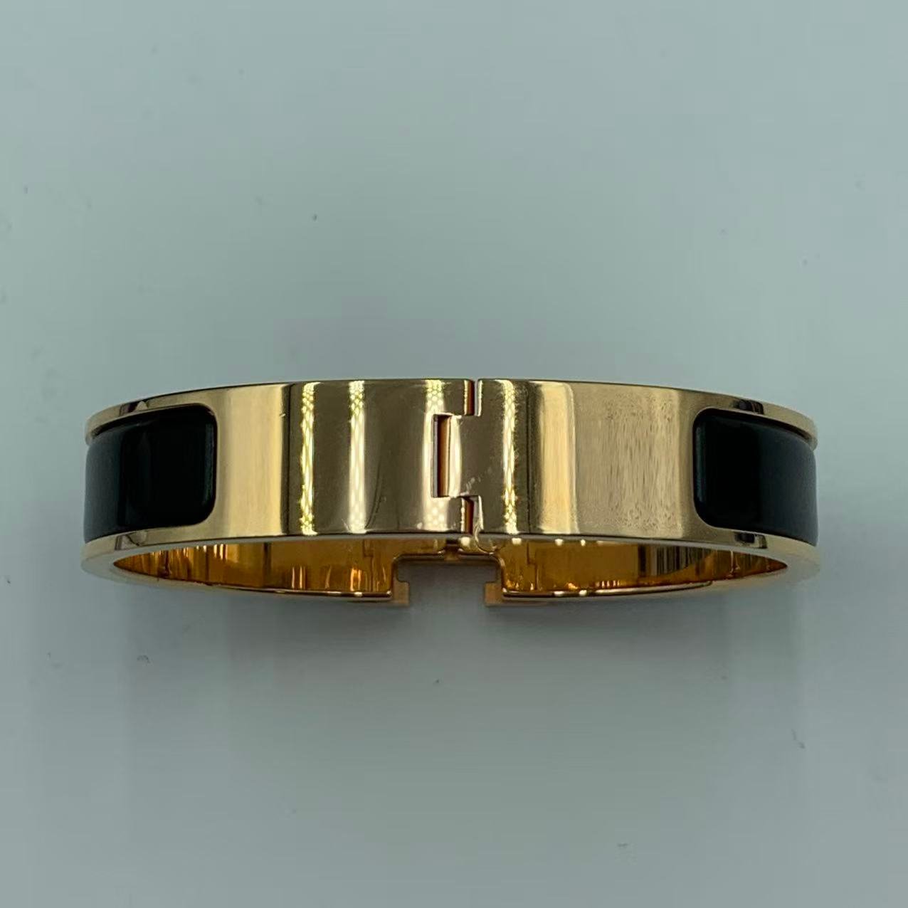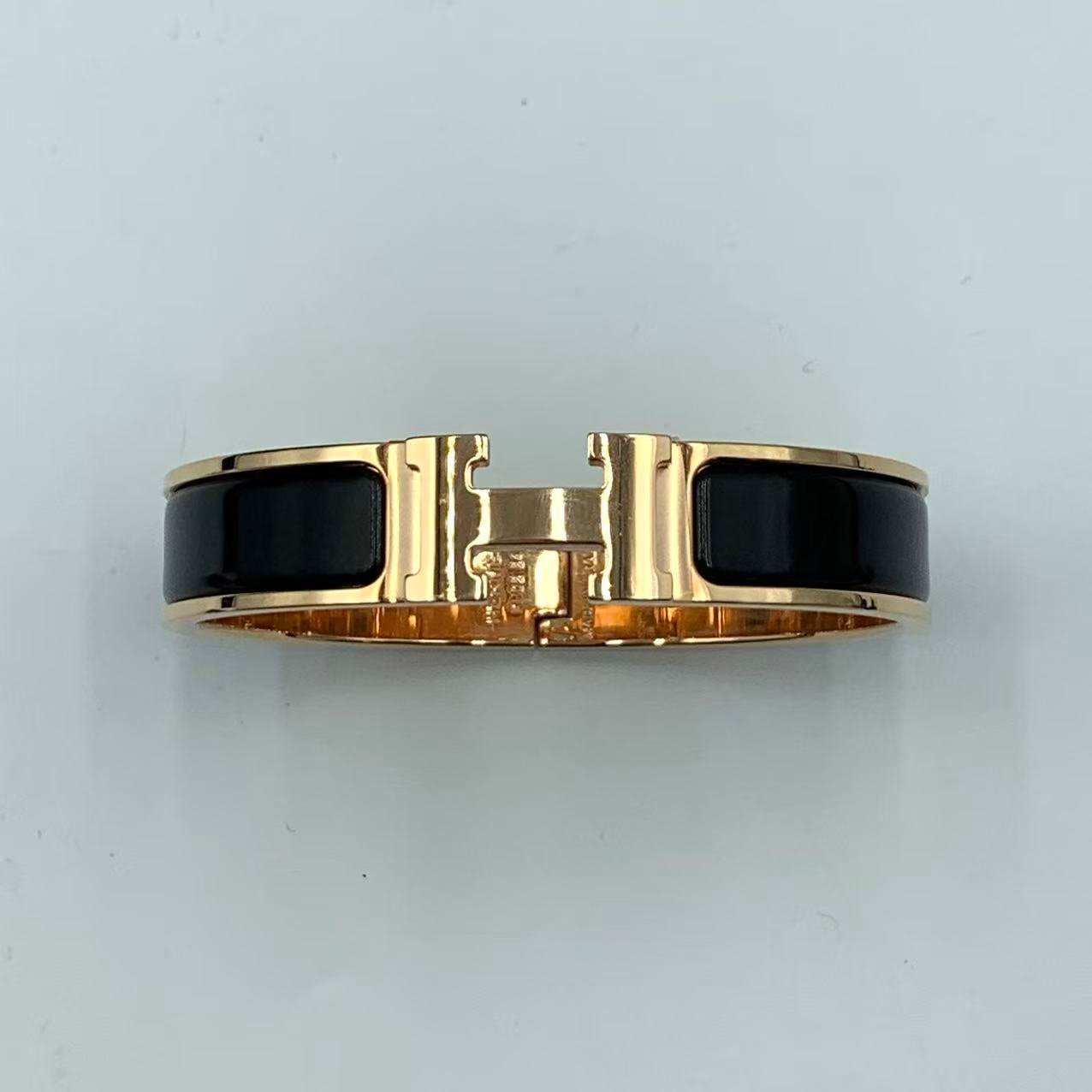 Hermes手鐲 H琺瑯黑色金扣H 經典H飾品 成色:閒置新 附件:盒子,塵袋