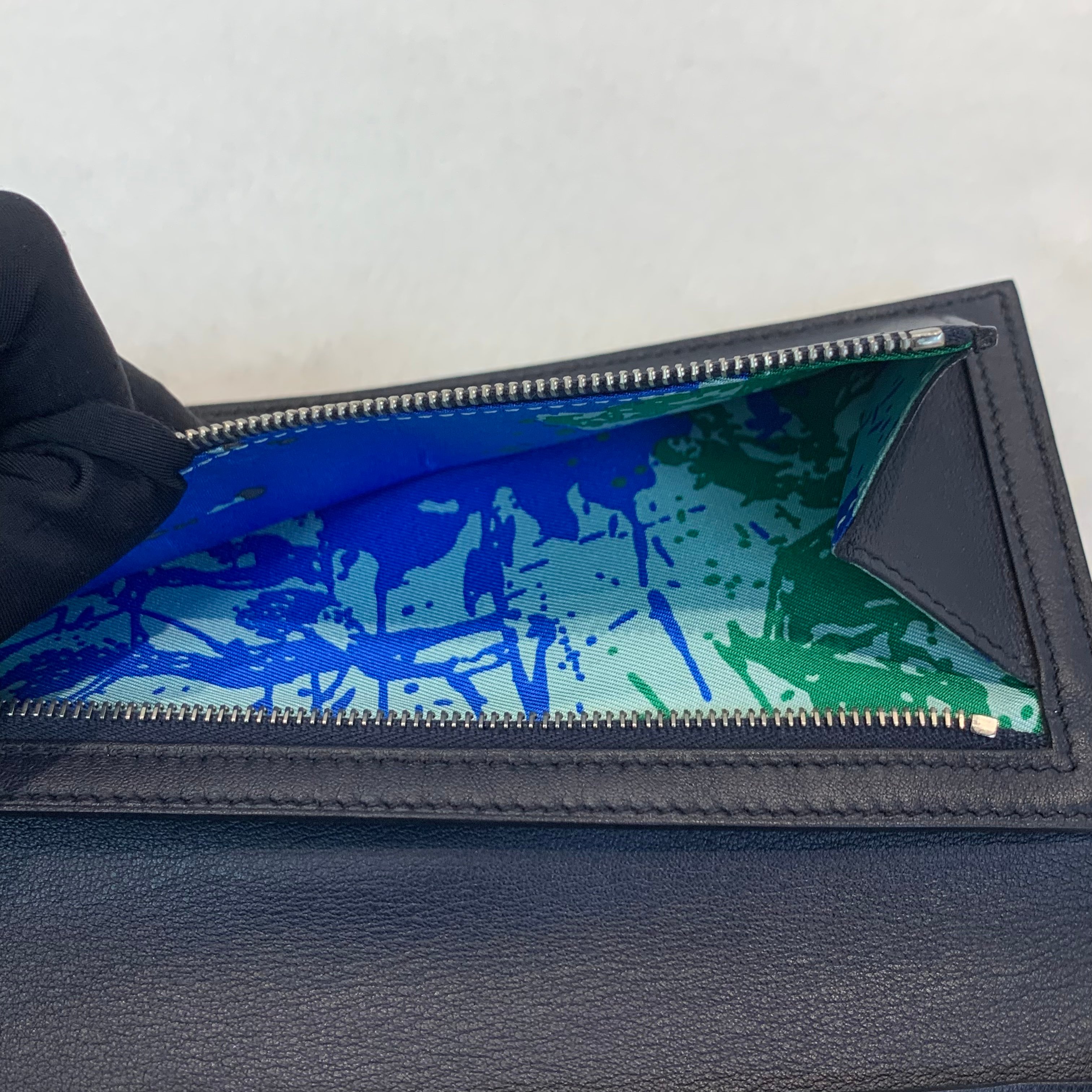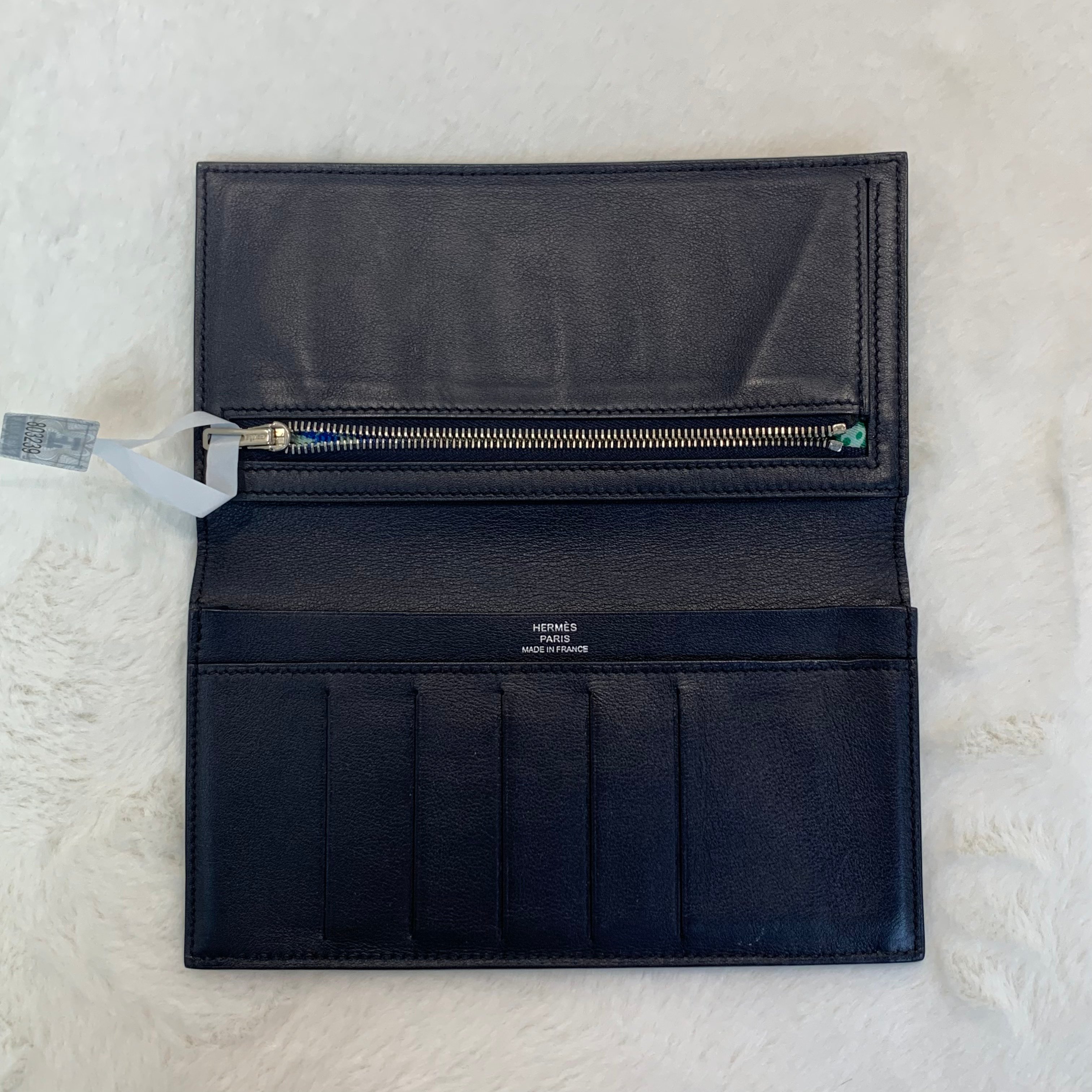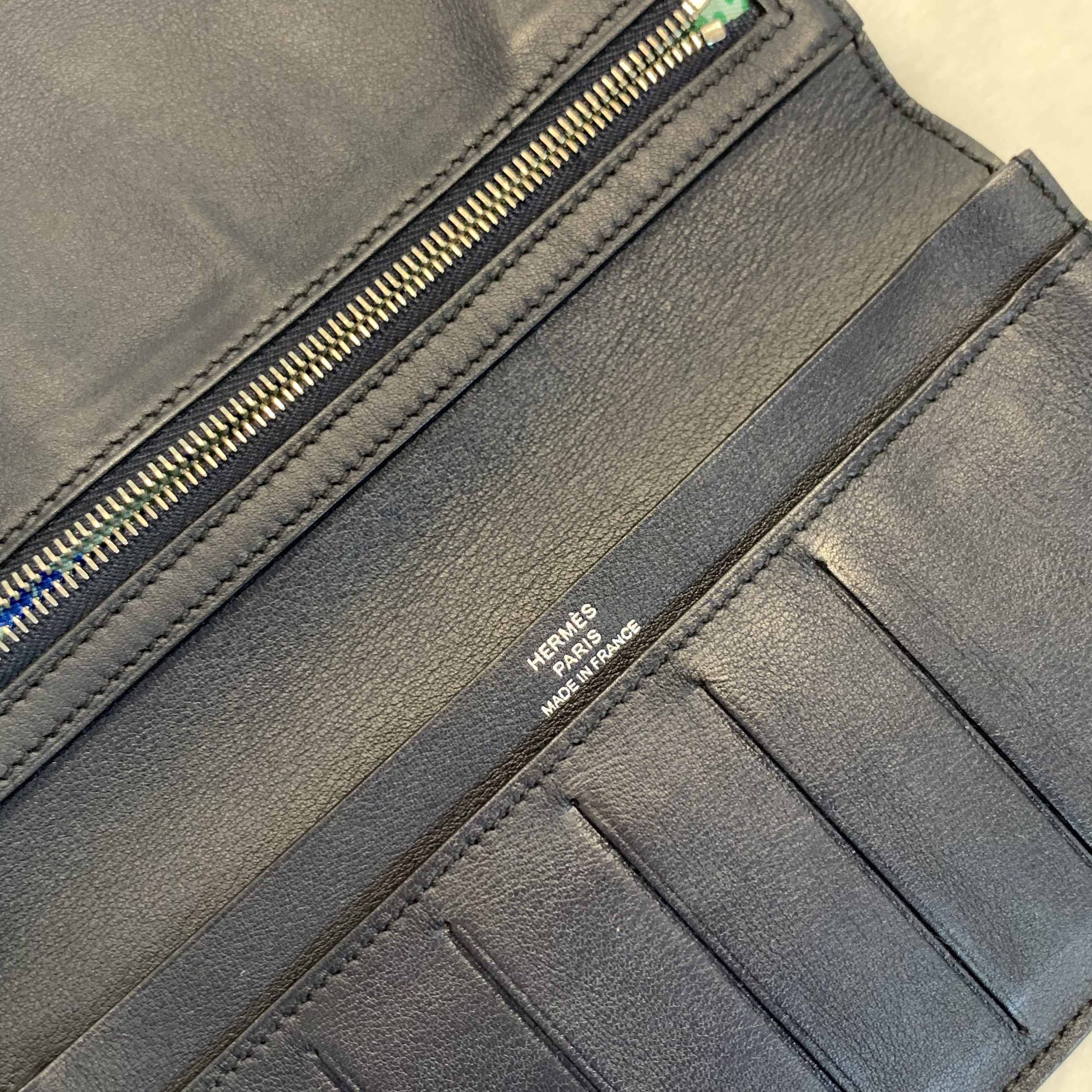 Hermes經典深藍色大容量長銀包內拼藍色圖案