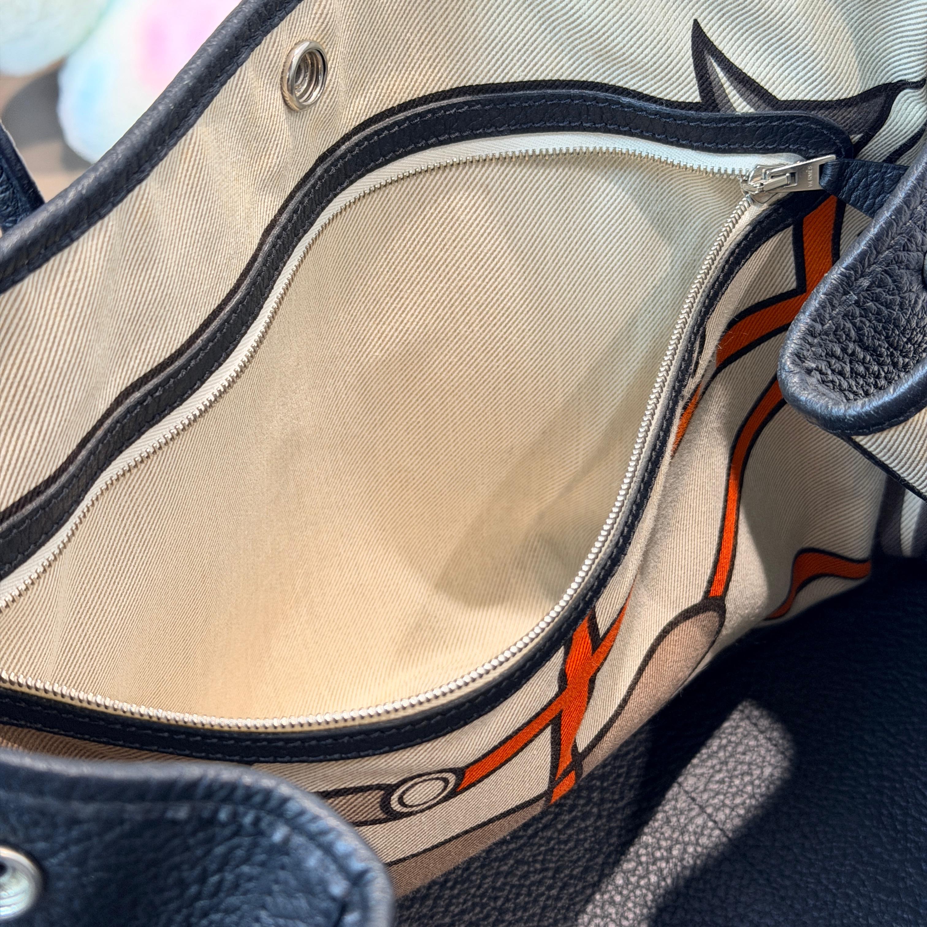 Hermes Garden Party 36 顏色:黑色 拼米色圖案 尺寸:36cm 材質:牛皮 配件:塵袋 內格 成色:正常使用痕跡