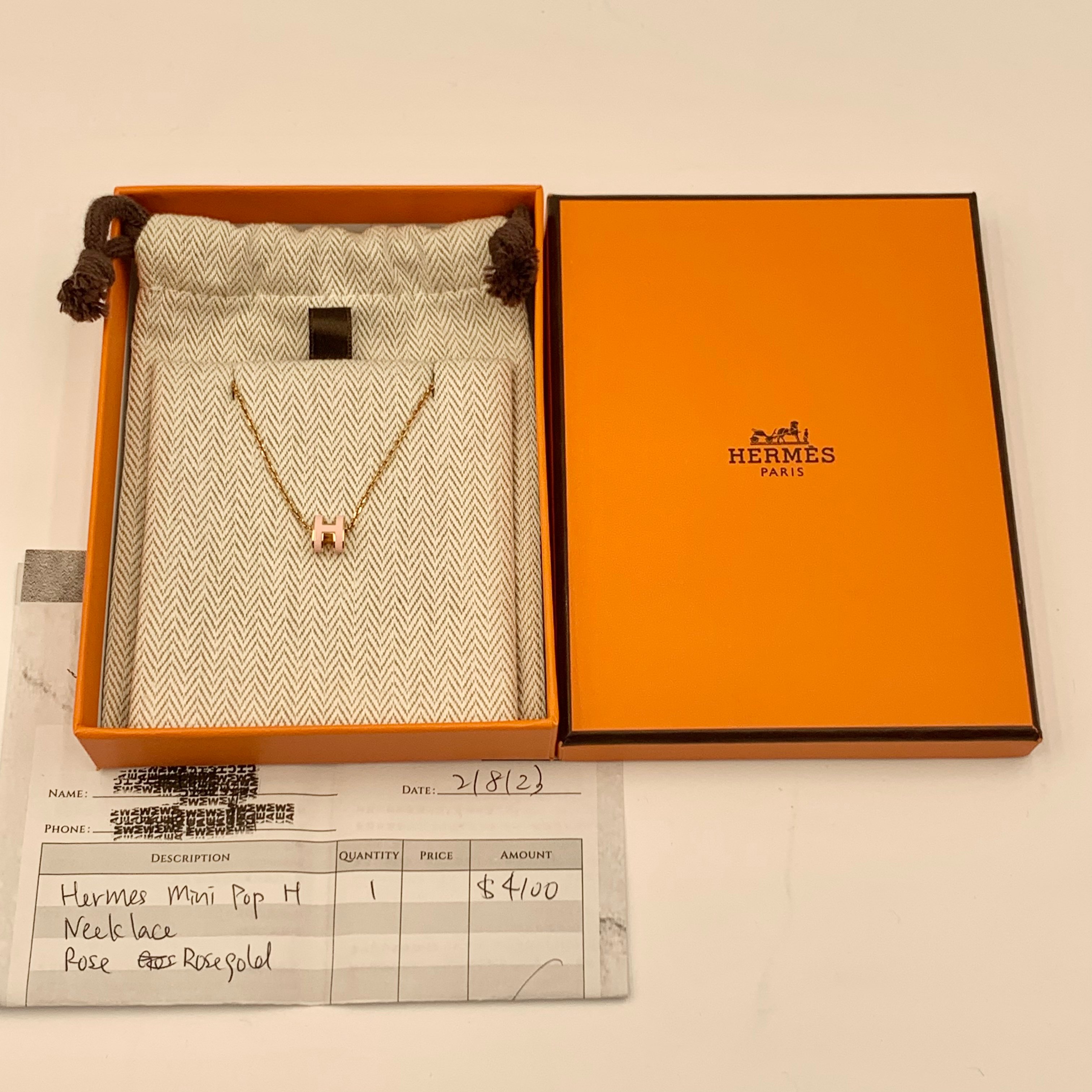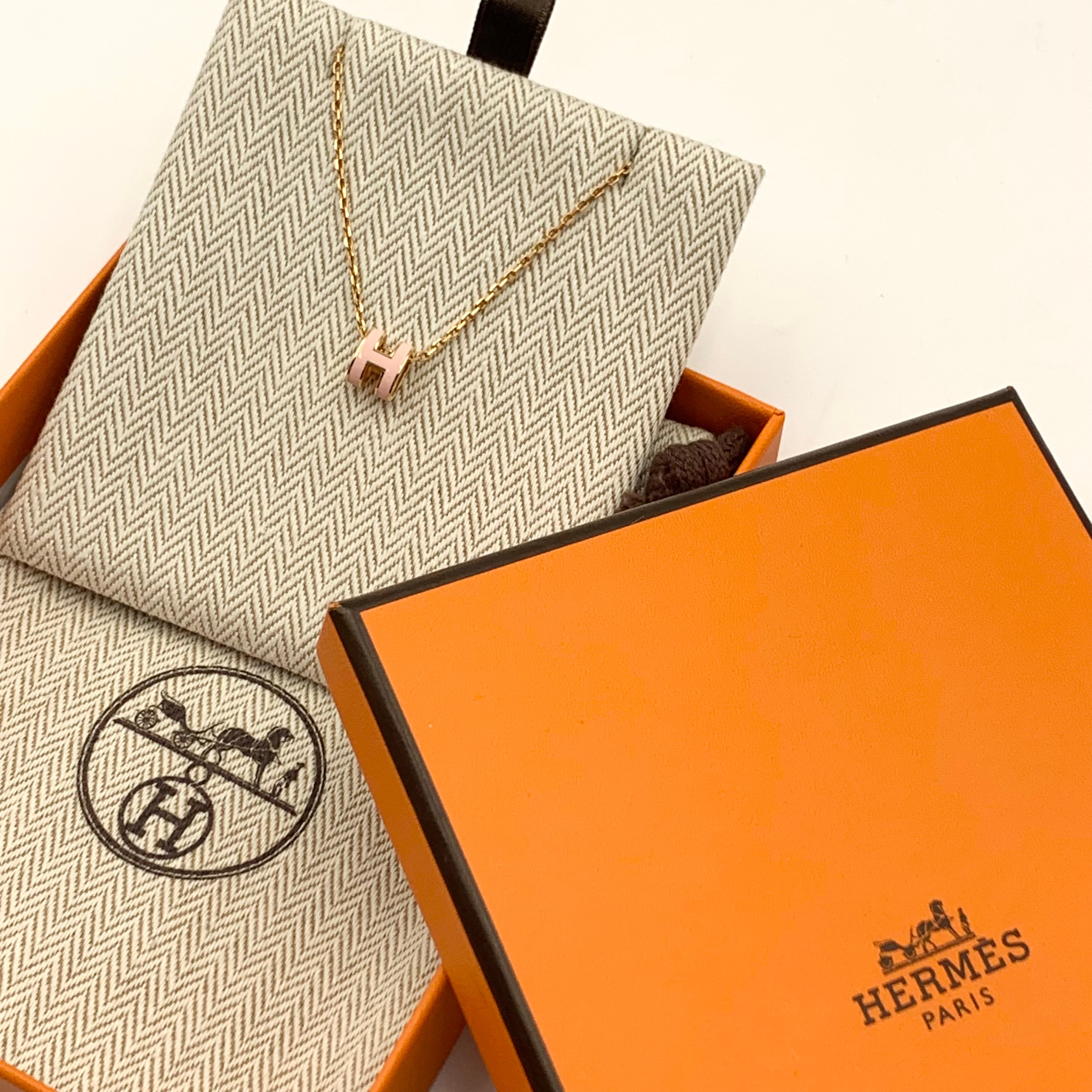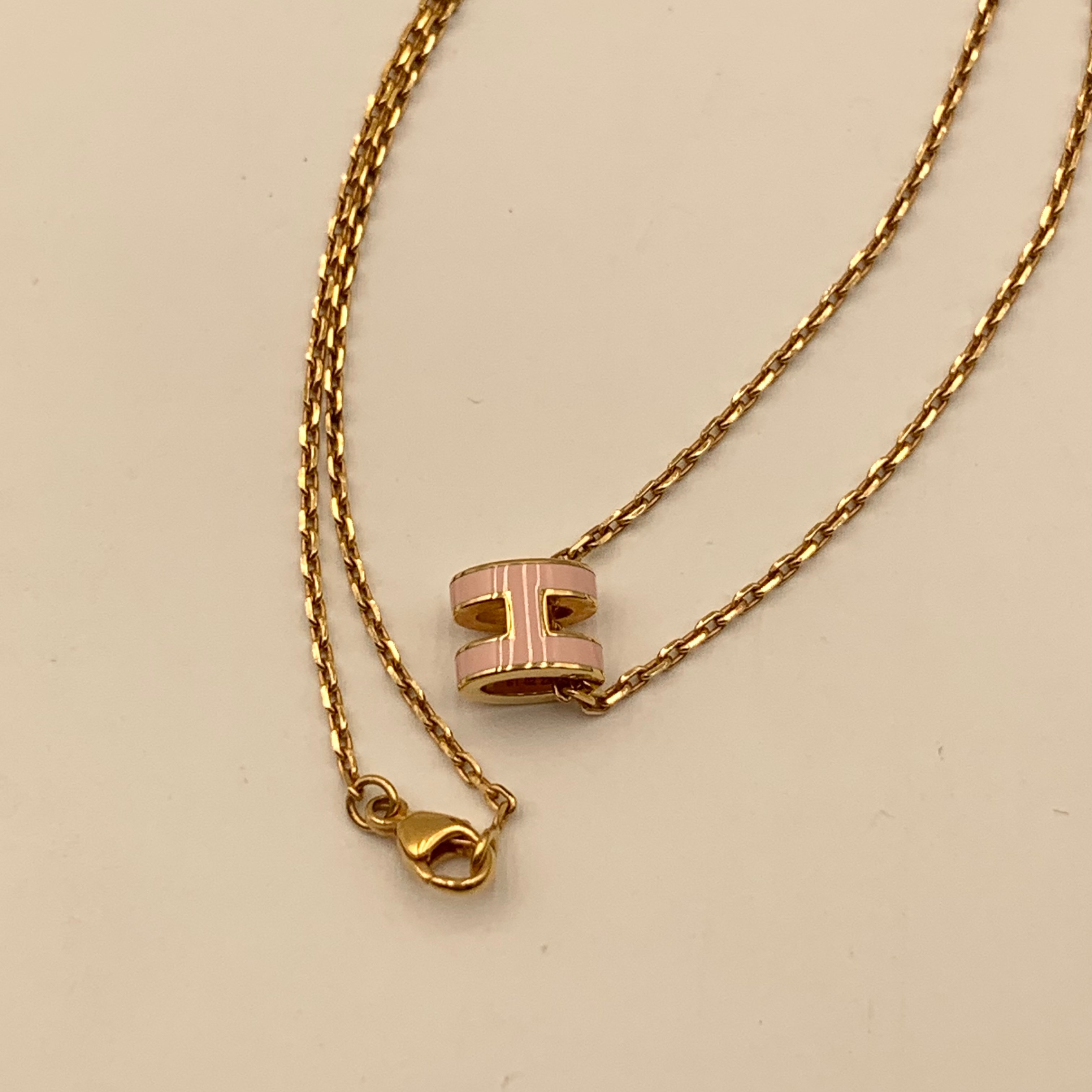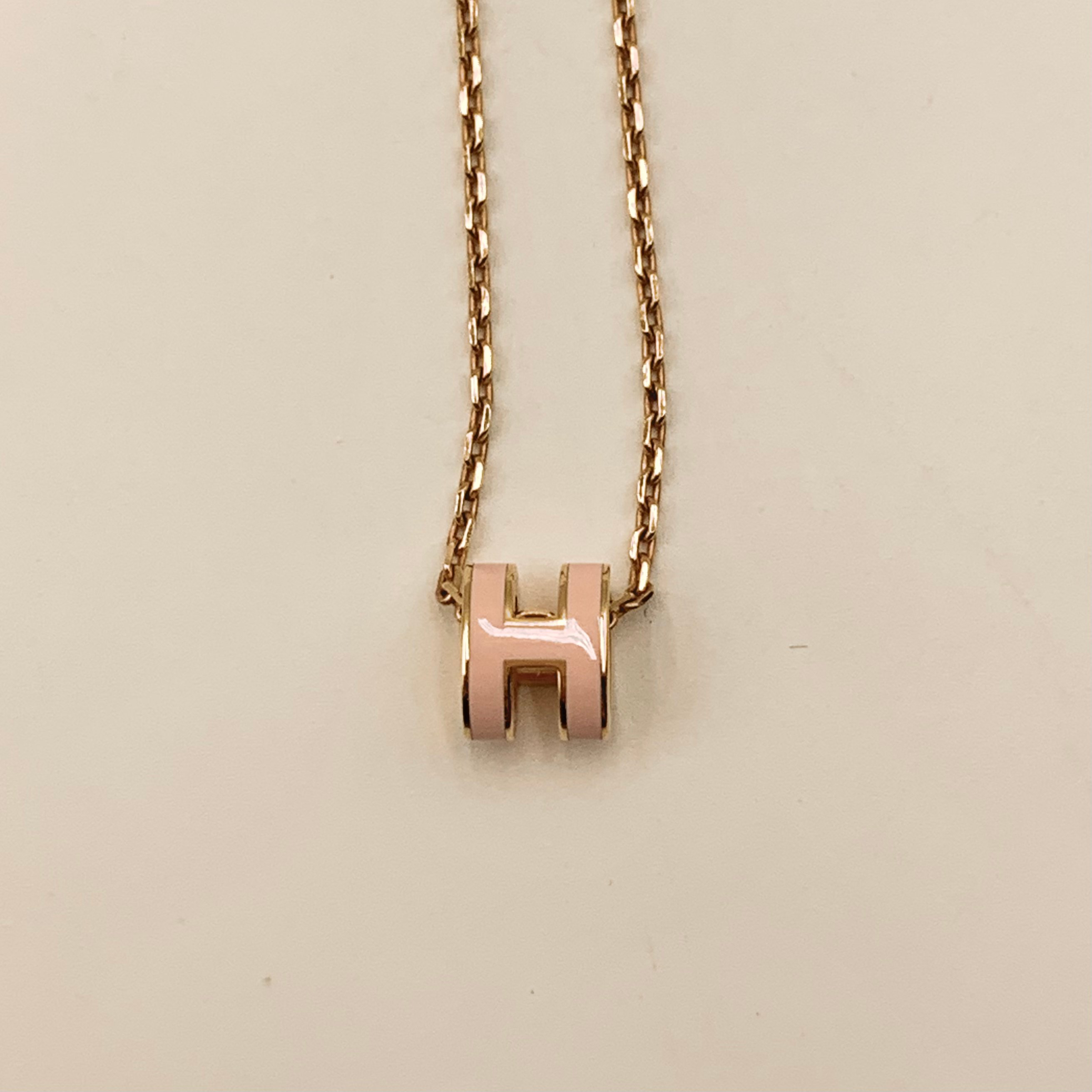 Hermes Mini Pop H 尺寸:0.9x0.7cm 皮質:鍍金 顏色:粉色/玫瑰金色 配件:盒子 塵袋 成色:輕微使用痕跡 年份:2023 原價$4800