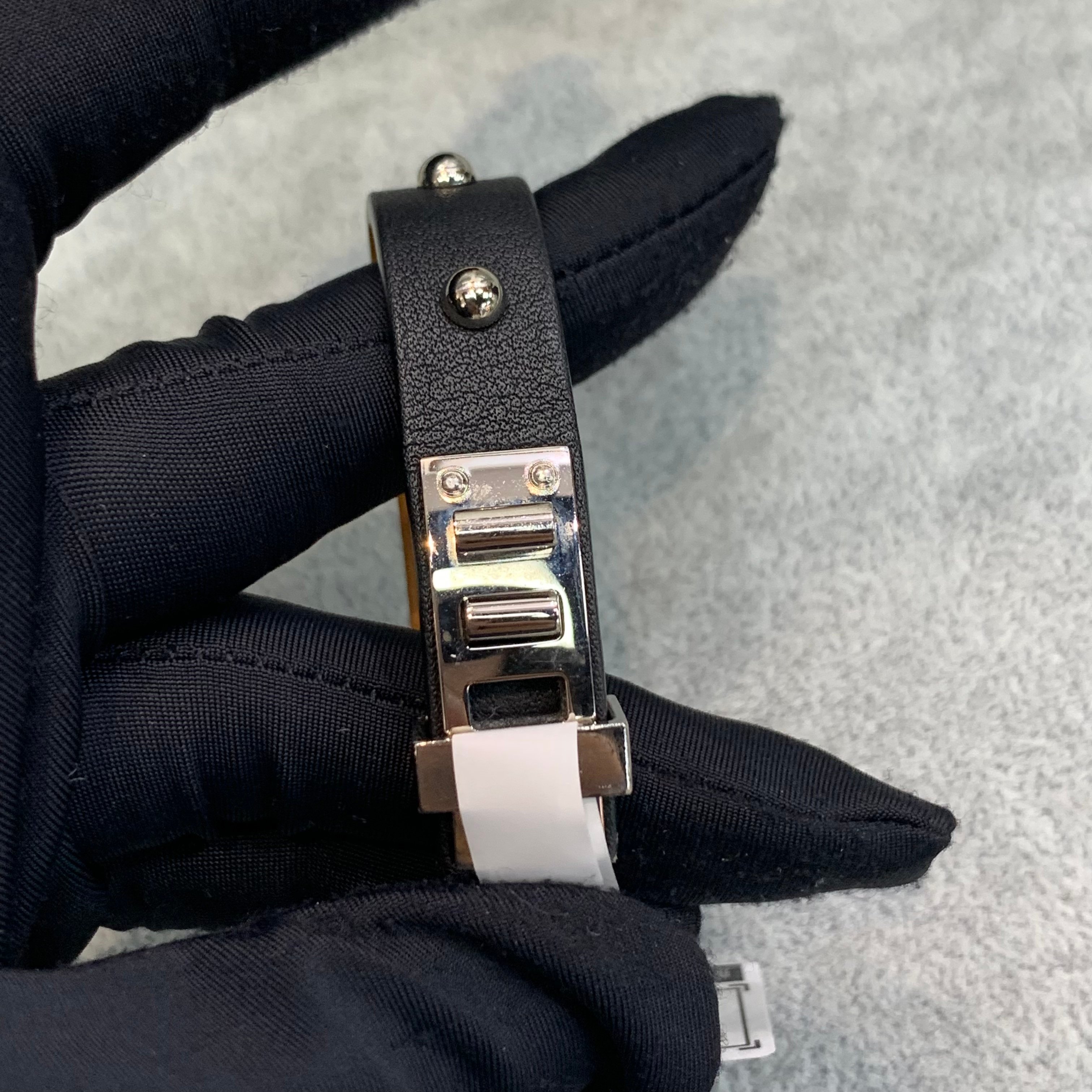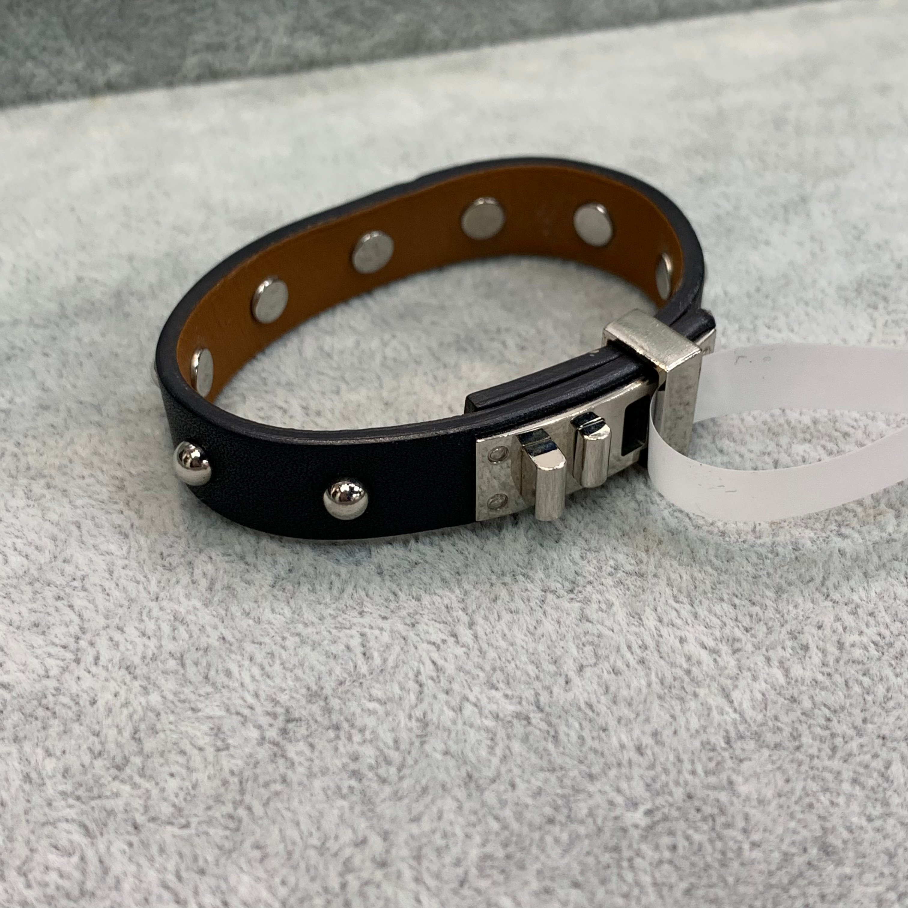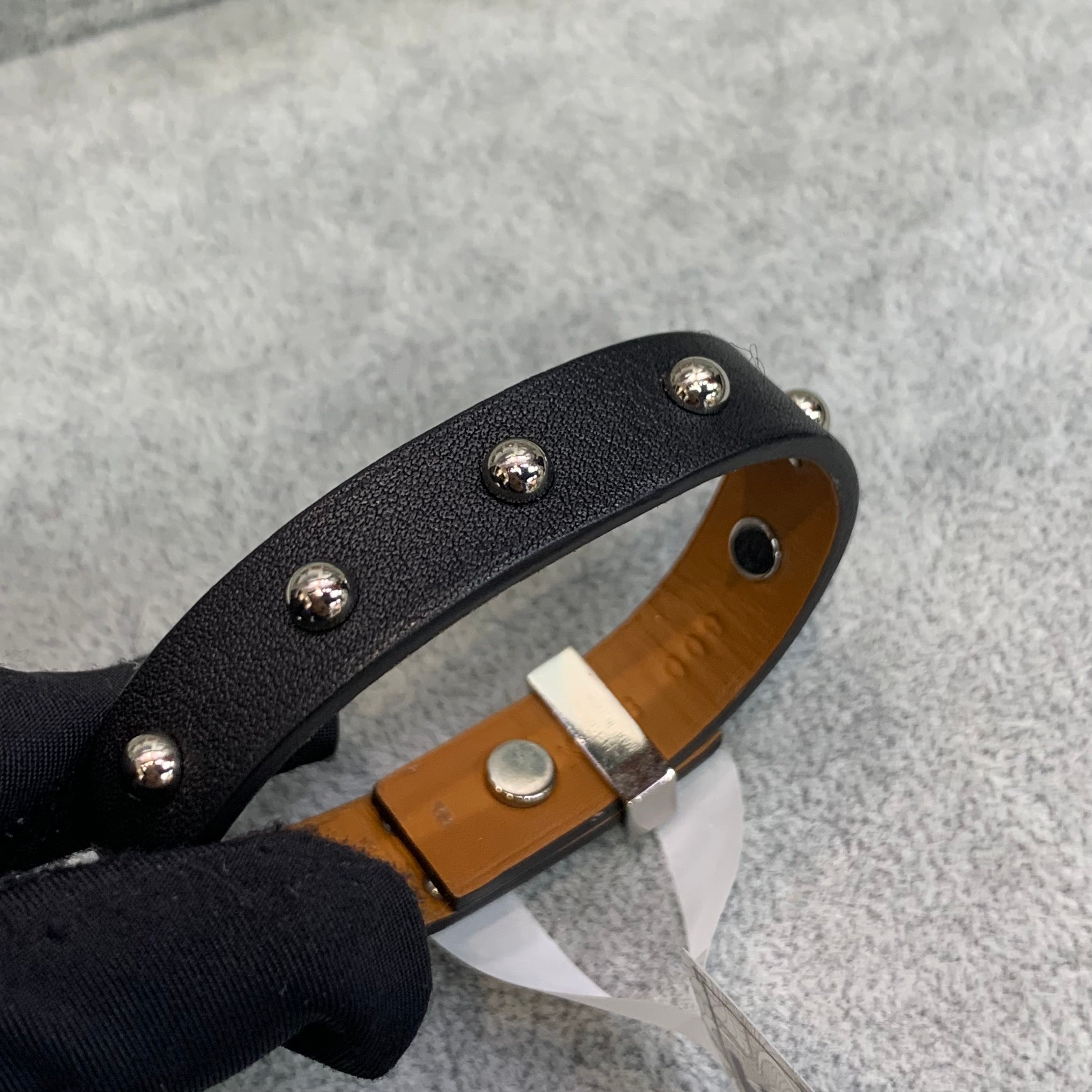 Hermes Mini dog clous ronds 女裝手鐲 顏色:黑色拼銀色 成色:輕微使用痕跡
