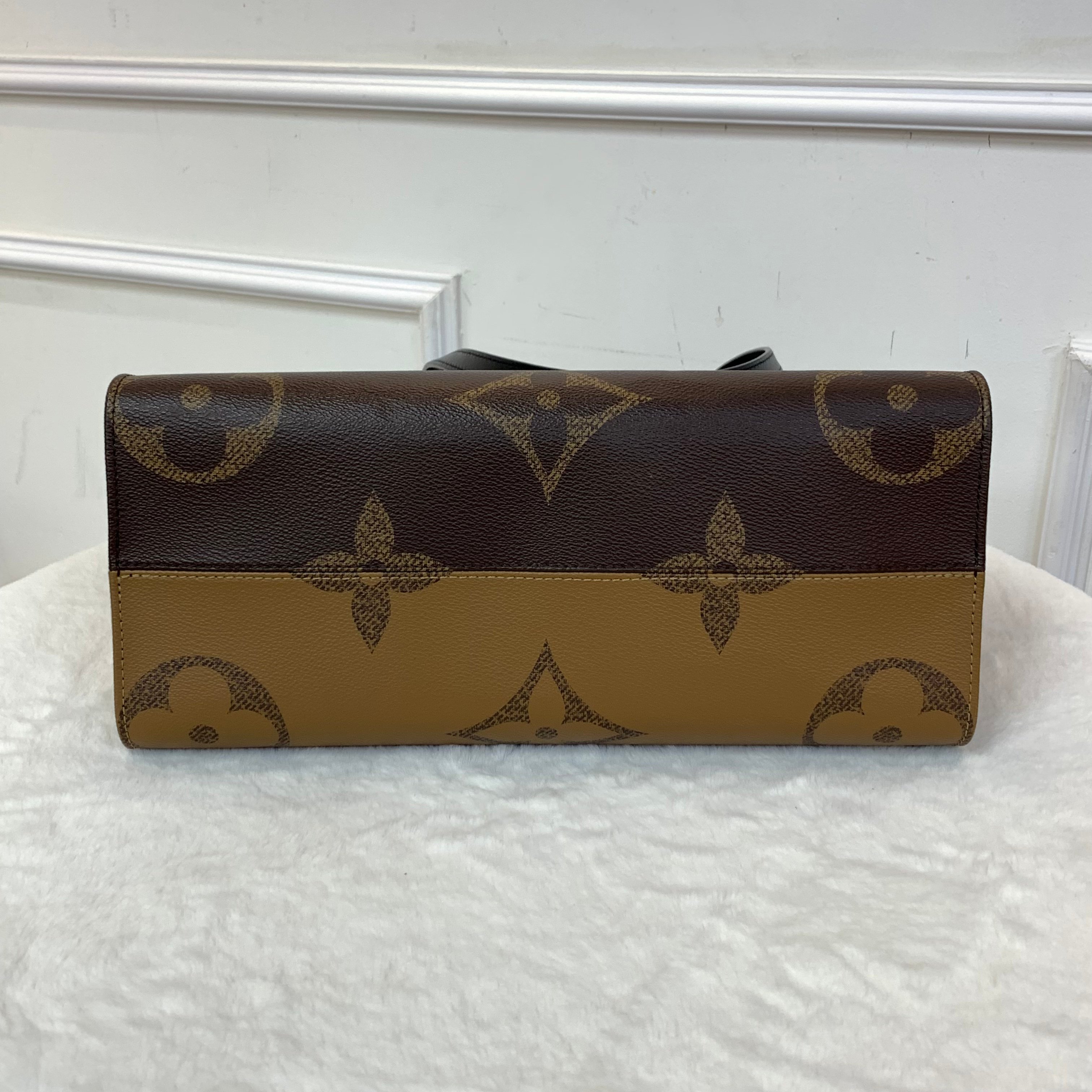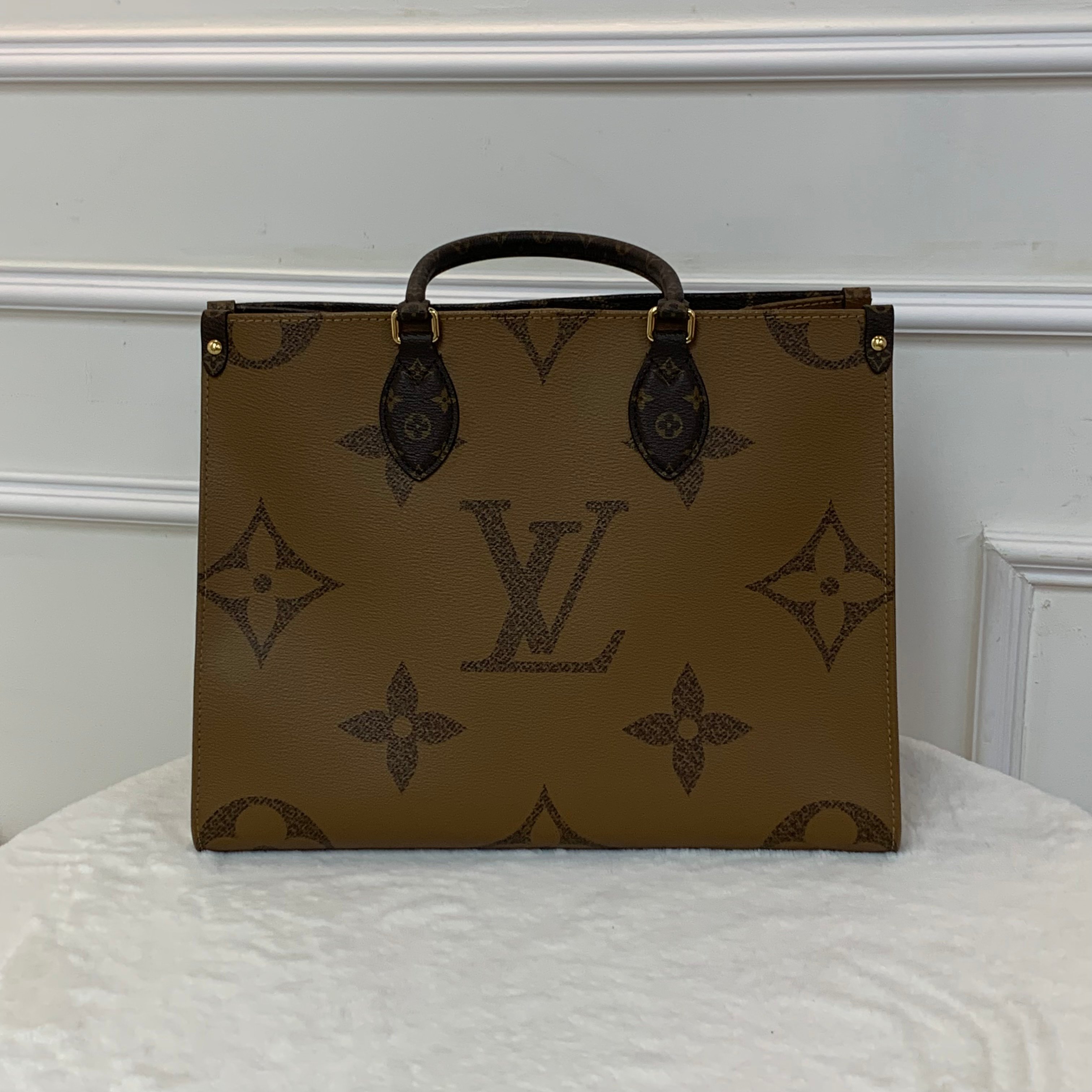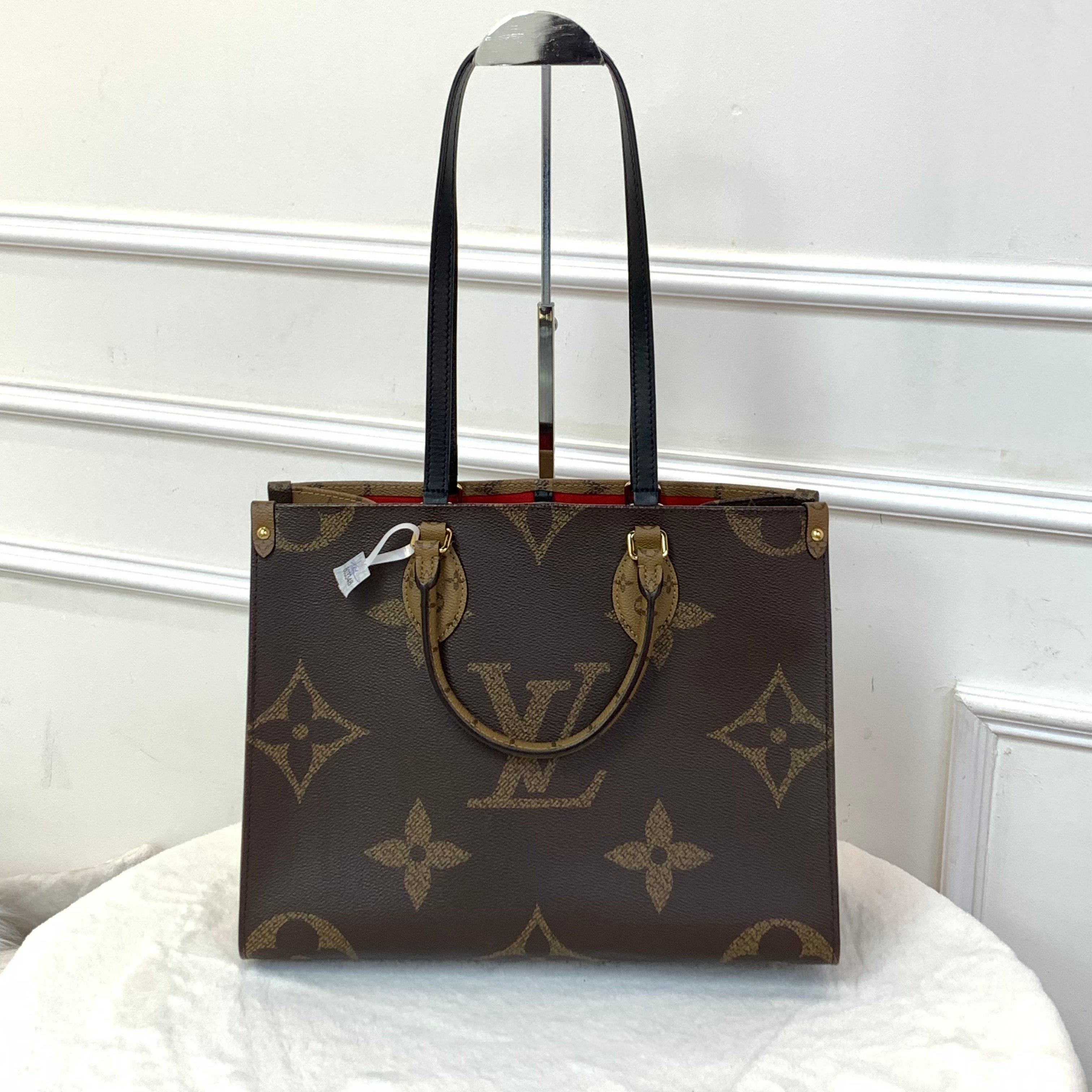 LV on the go tote 顏色:深啡拼淺啡老花 尺寸:34.5x 27×14 cm 塗層帆布+牛皮 配件:塵袋 成色:輕微使用痕跡 原價$20000