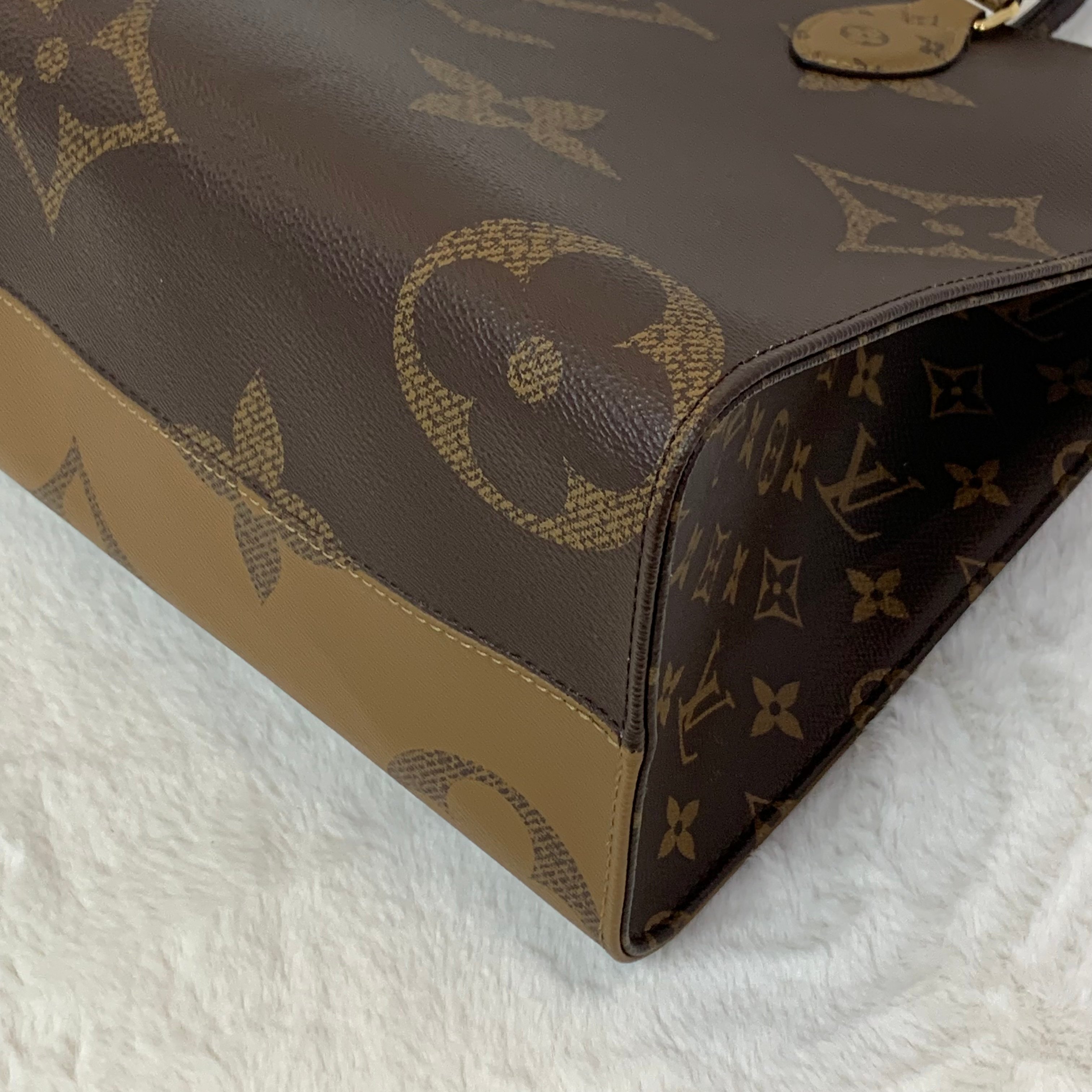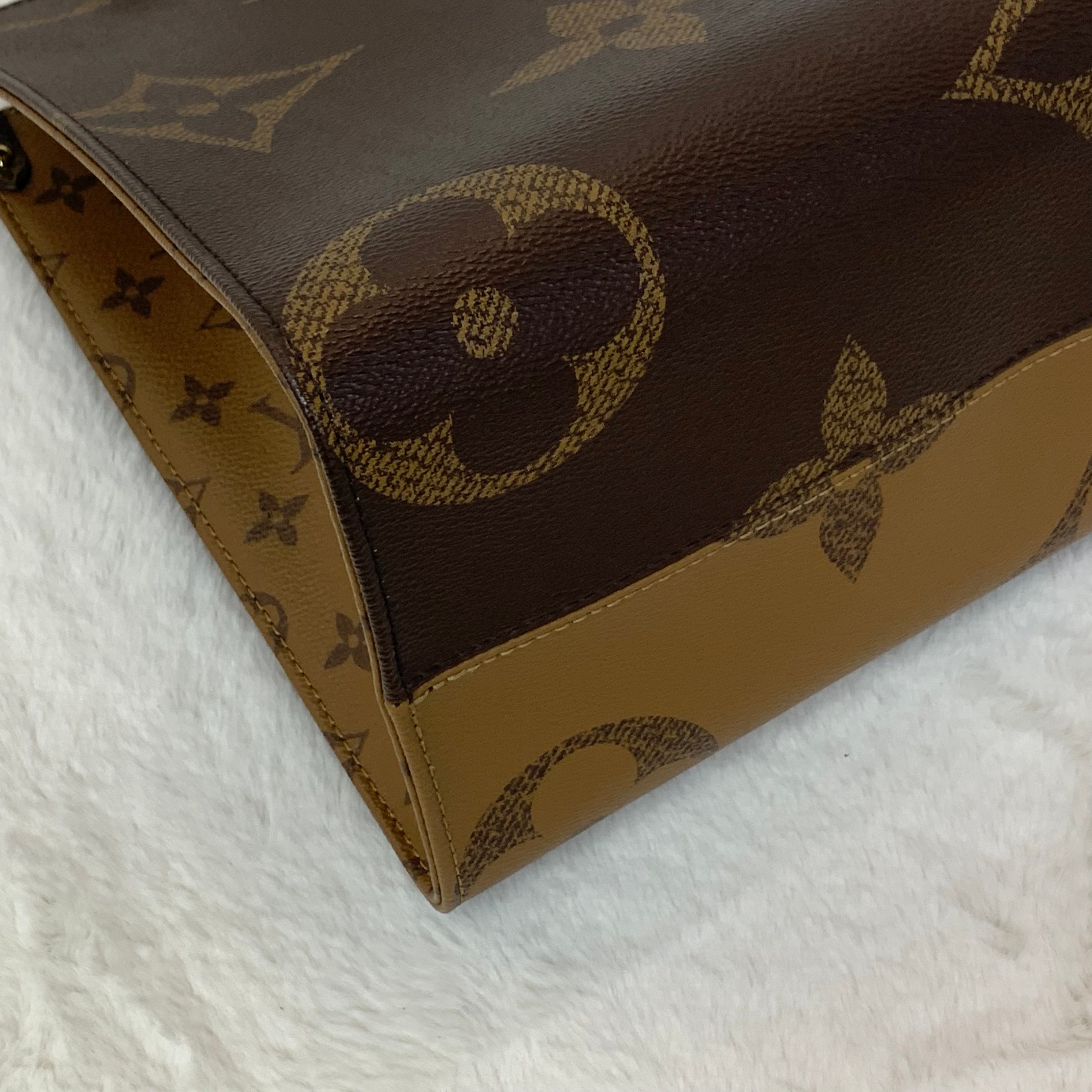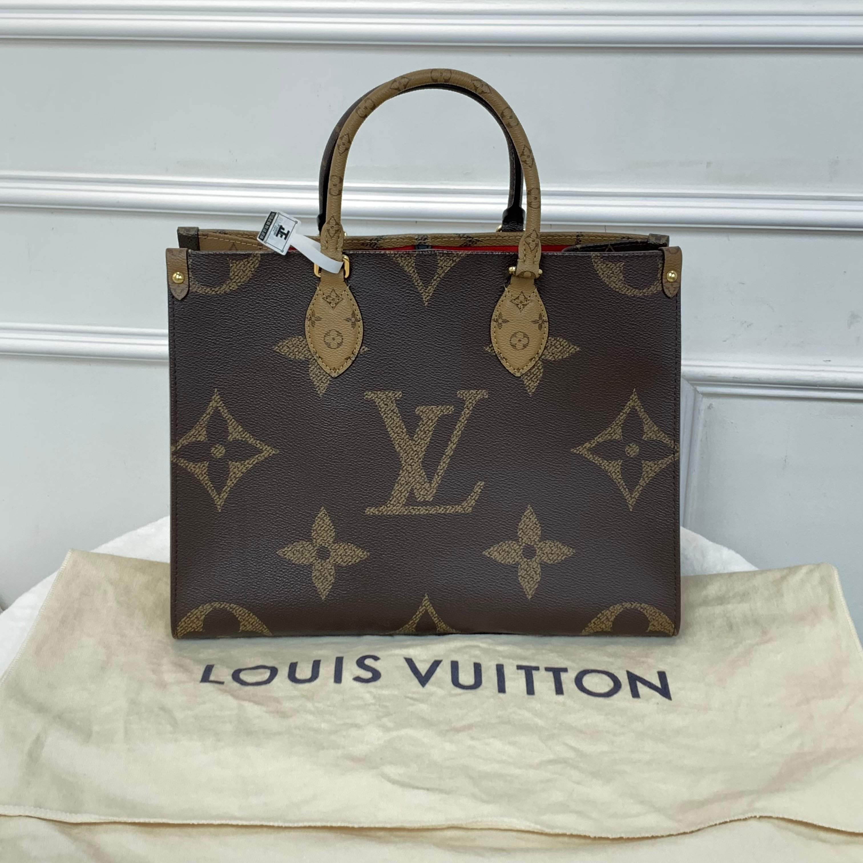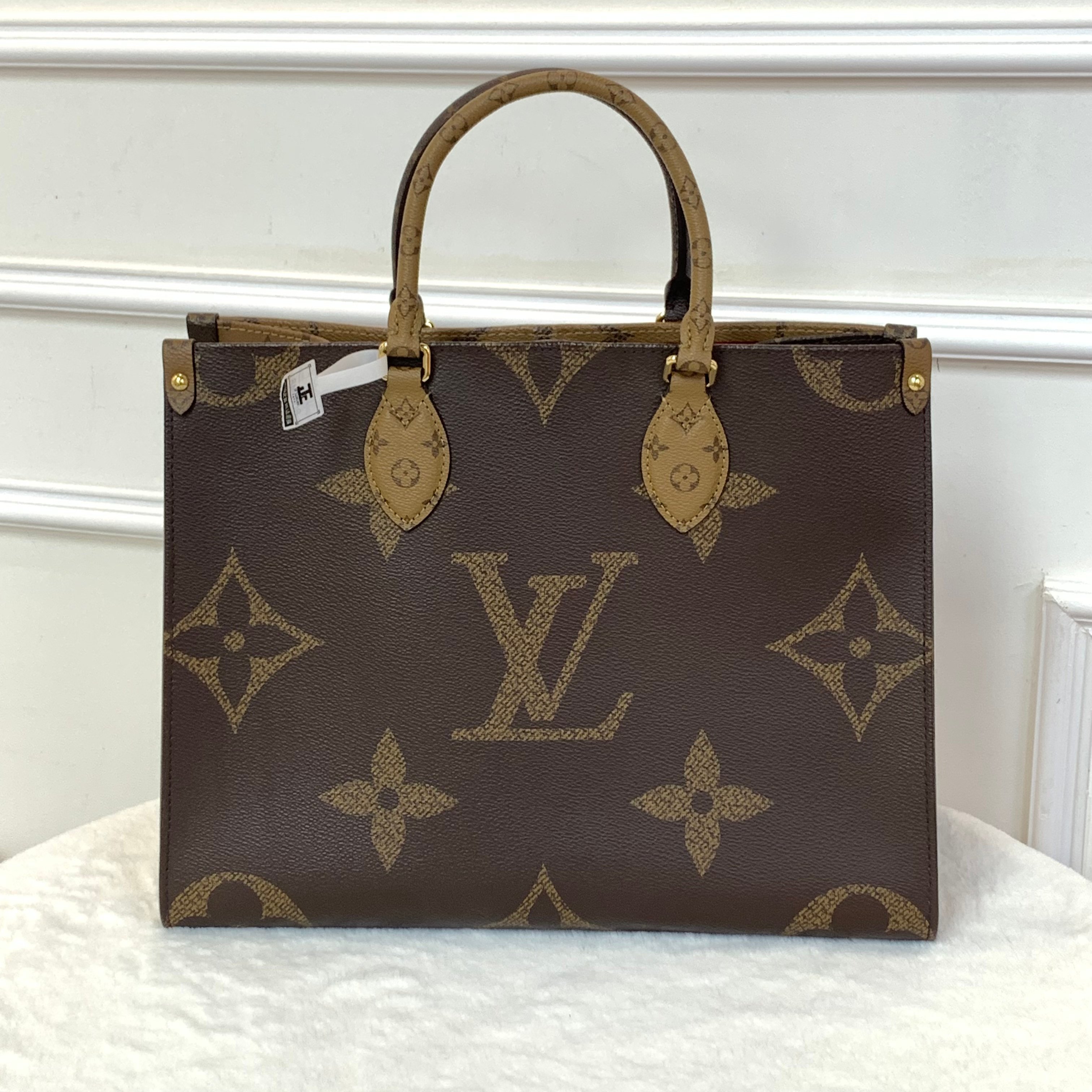 LV on the go tote 顏色:深啡拼淺啡老花 尺寸:34.5x 27×14 cm 塗層帆布+牛皮 配件:塵袋 成色:輕微使用痕跡 原價$20000
