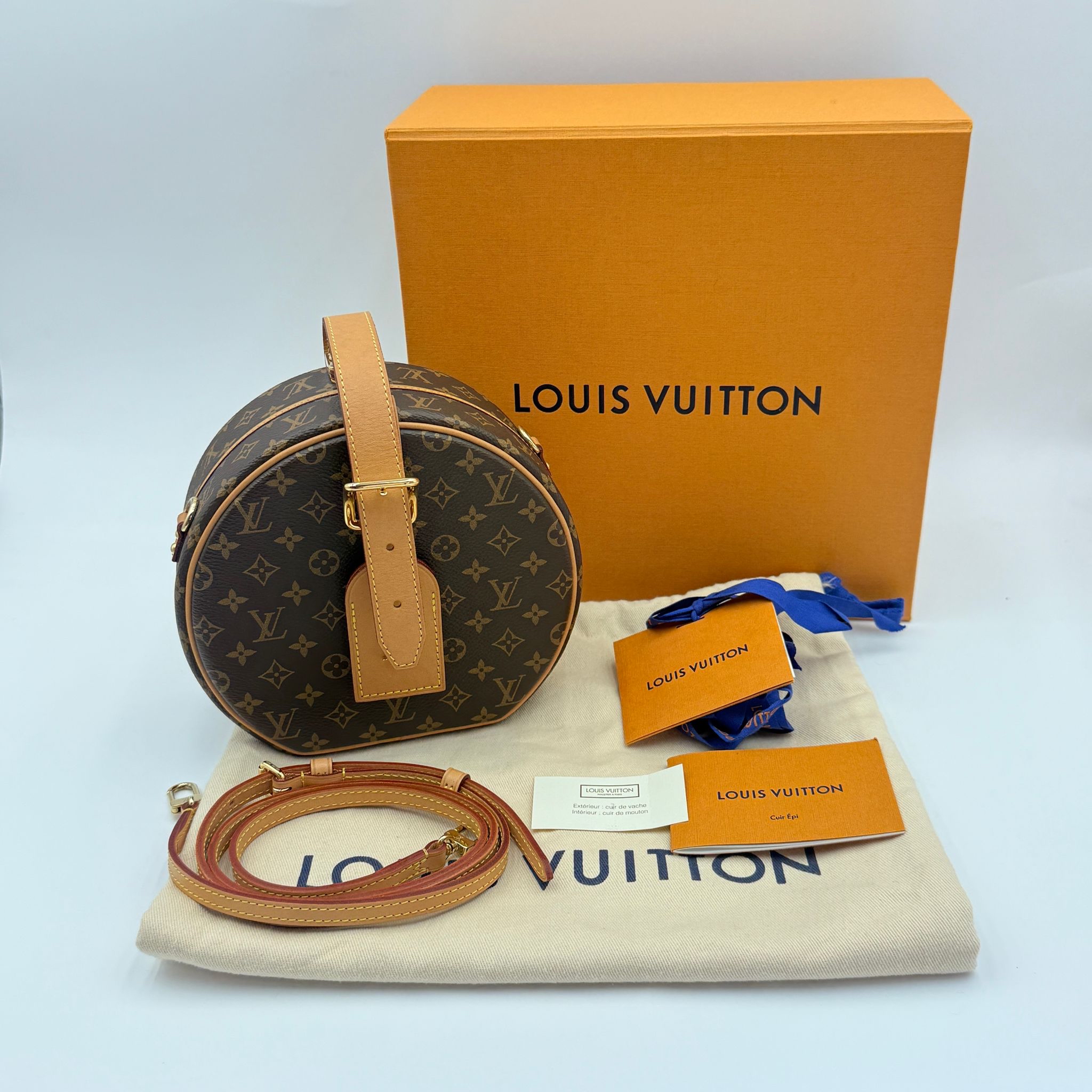 Louis Vuitton Petite Boite Chapeau 盒子袋(斜揹手提都可以) 尺寸:17.5×7.5x16.5cm 配件:盒子,塵袋,肩帶,說明書 成色:輕微使用痕跡 年份:2019 原價:44500