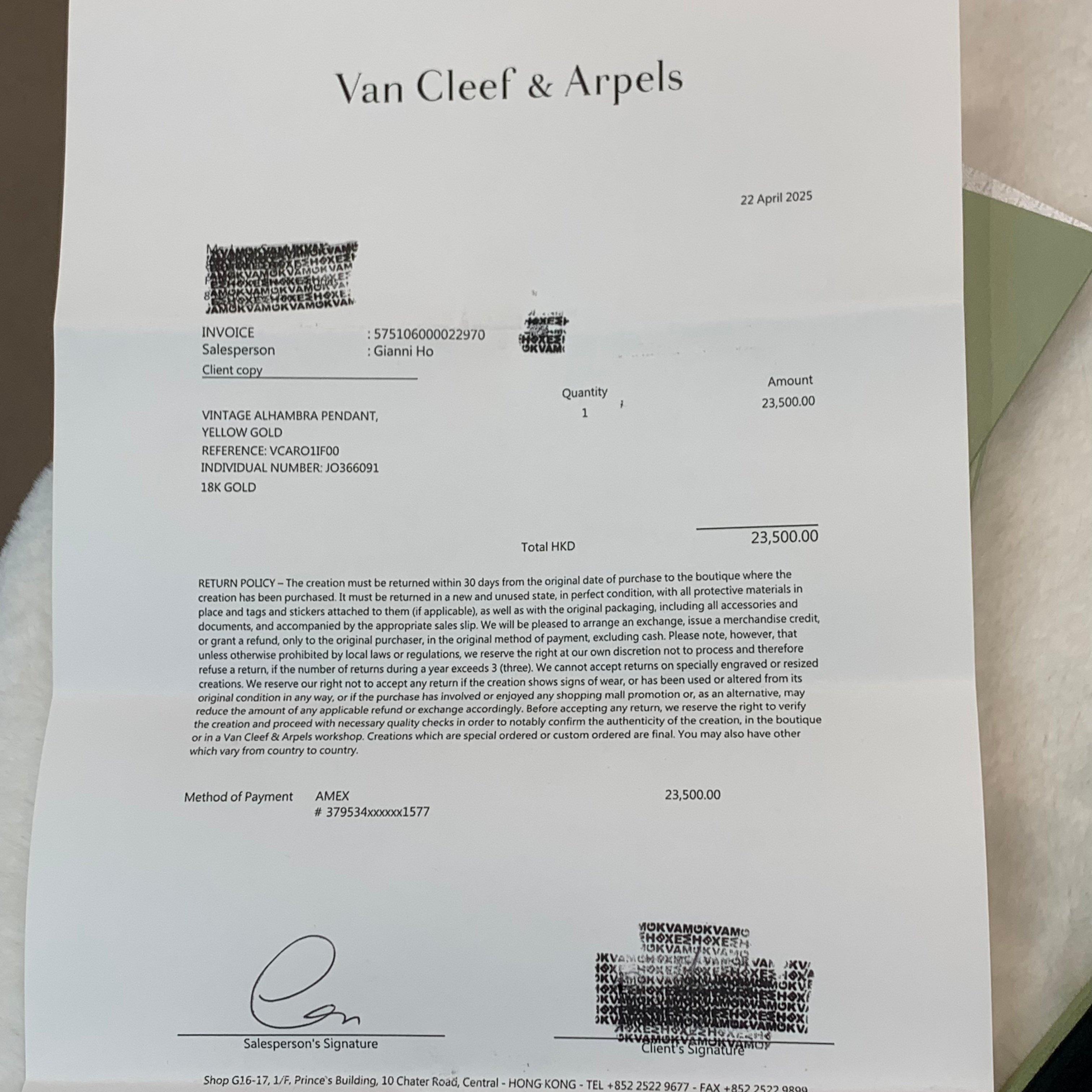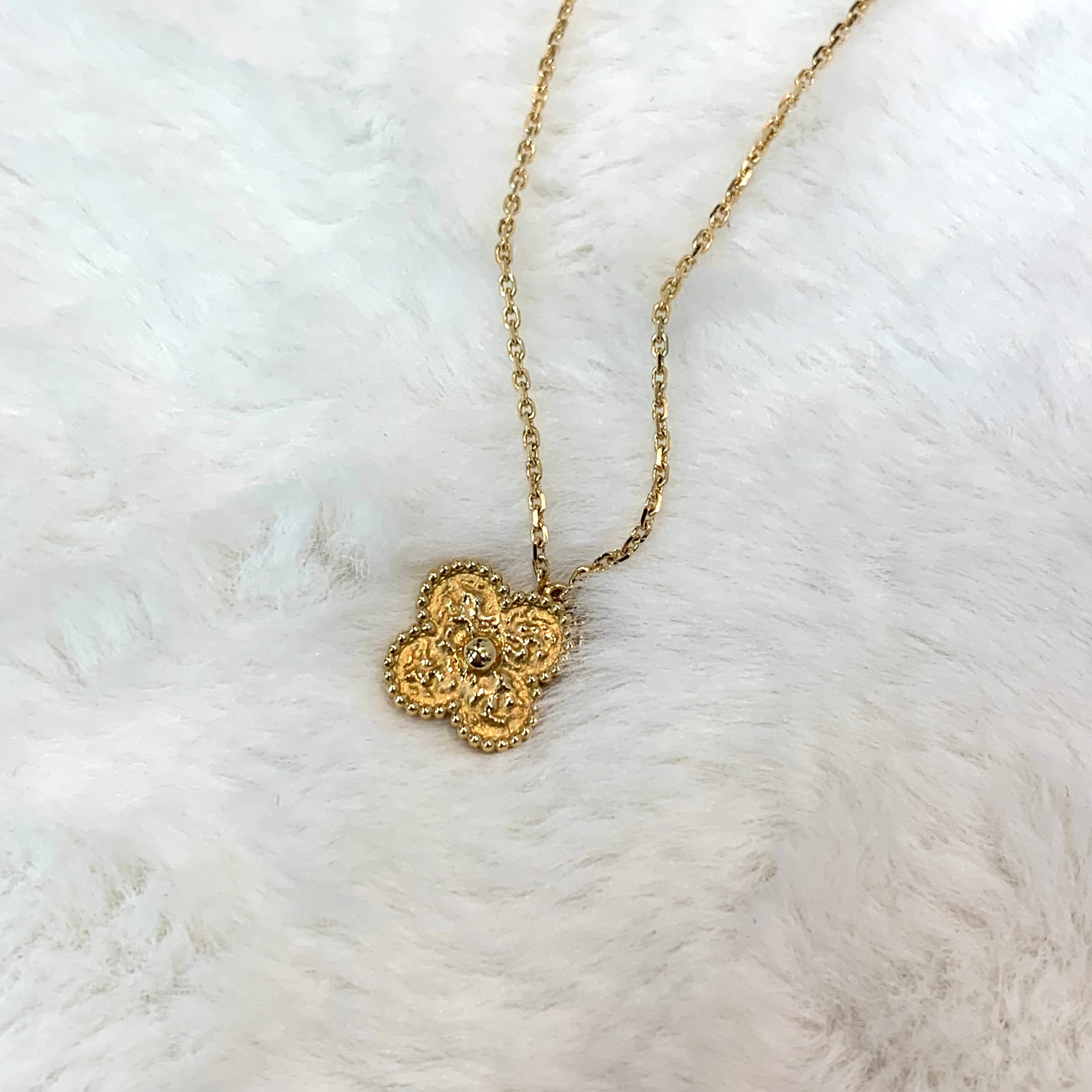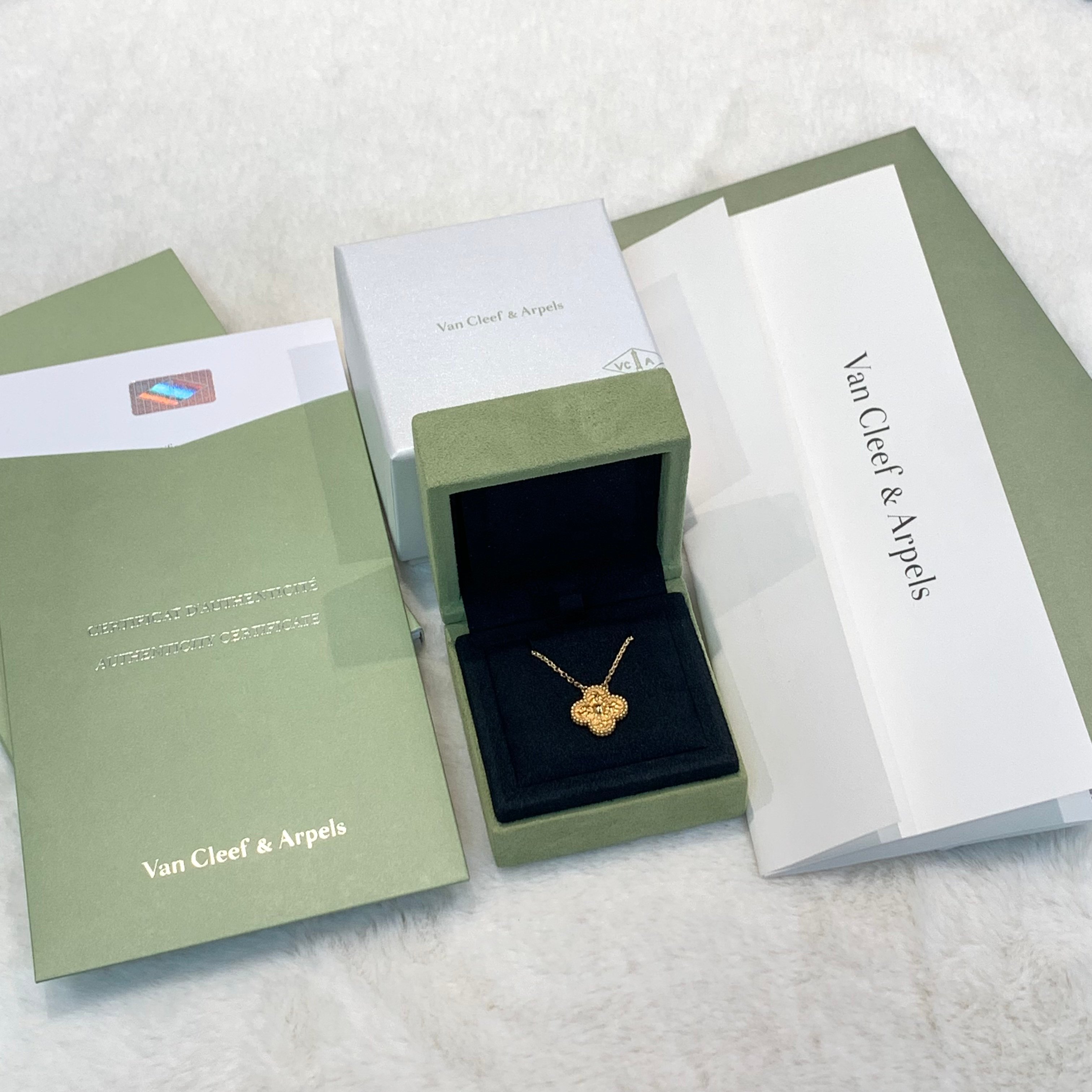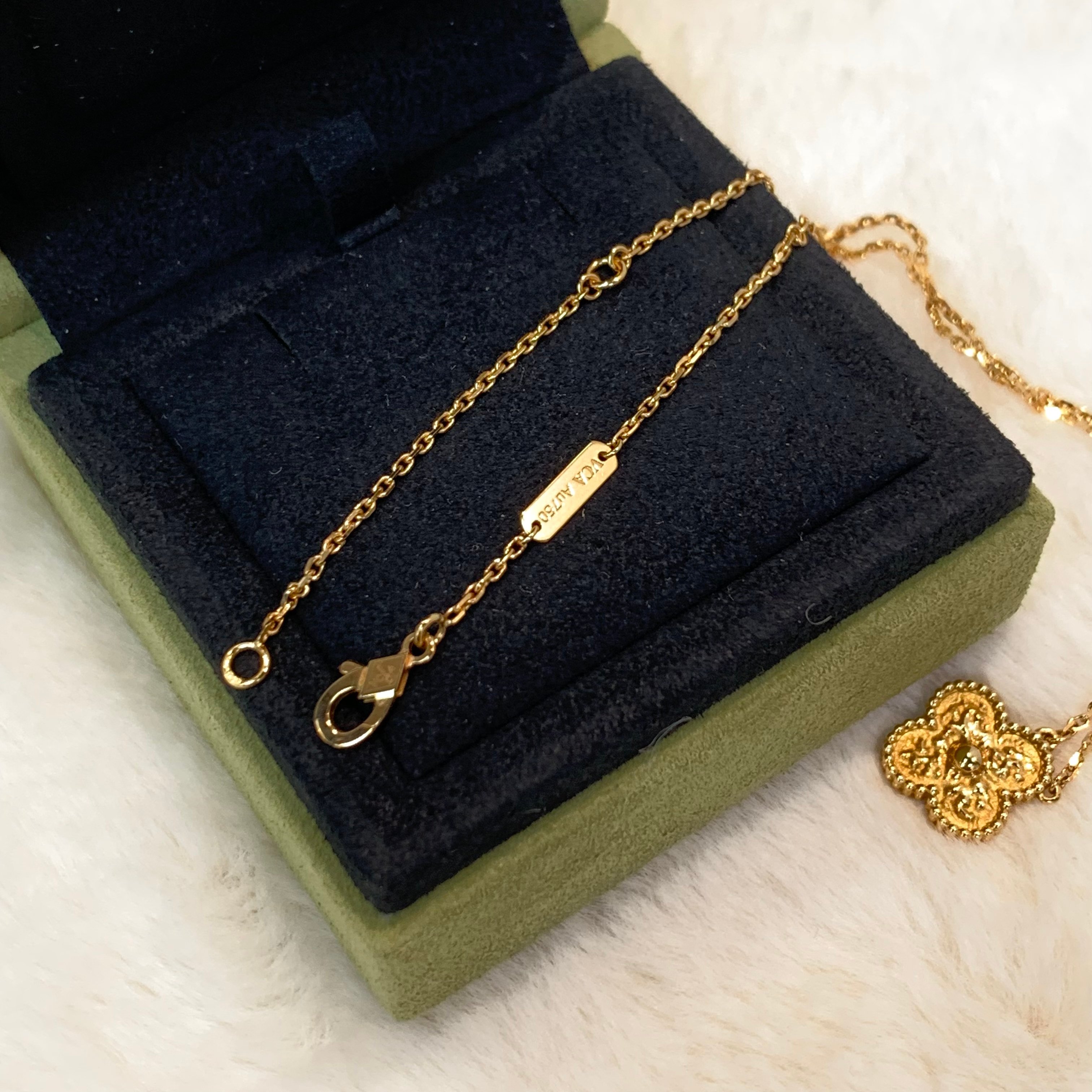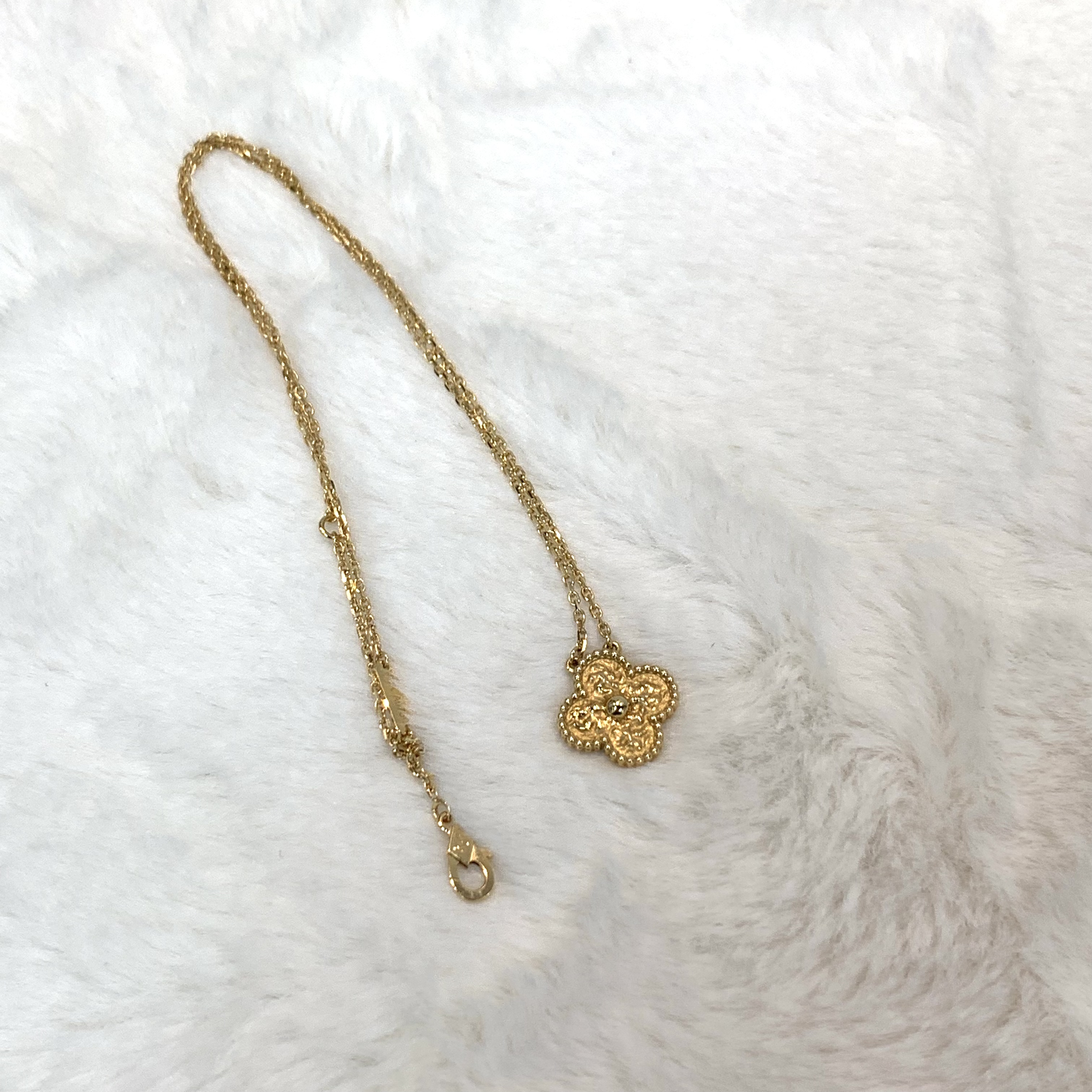 Van Cleef & ArpelsVCA項鍊 Alhambra四葉幸運系列 18k黃金燙金復古吊墜 女款 編號:VCARO1IFOO JO366091 材質:黄金 年份:25年4月買入 成色:輕微使用痕跡 附件:保卡原盒