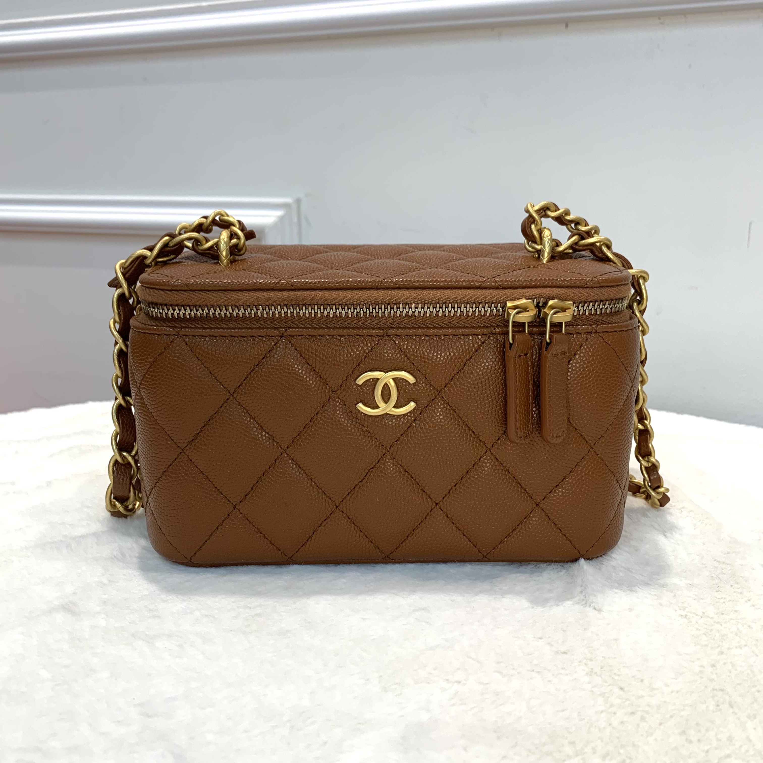 CHANEL Chain and Charm Vanity Case 圓桶羊皮化妝包