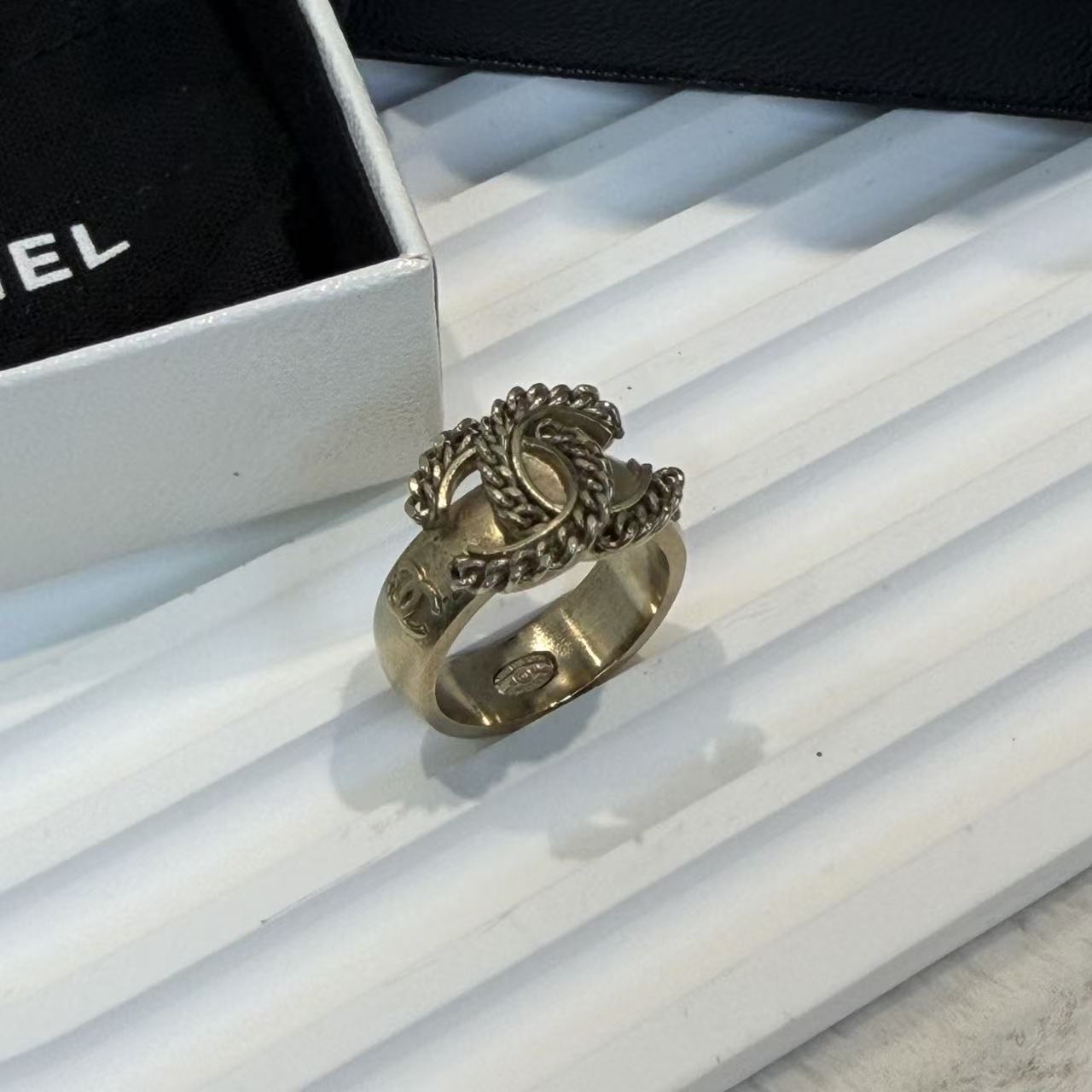 Chanel金色 logo戒指 顏色:金色 配件:盒 塵袋 成色:輕微使用痕跡