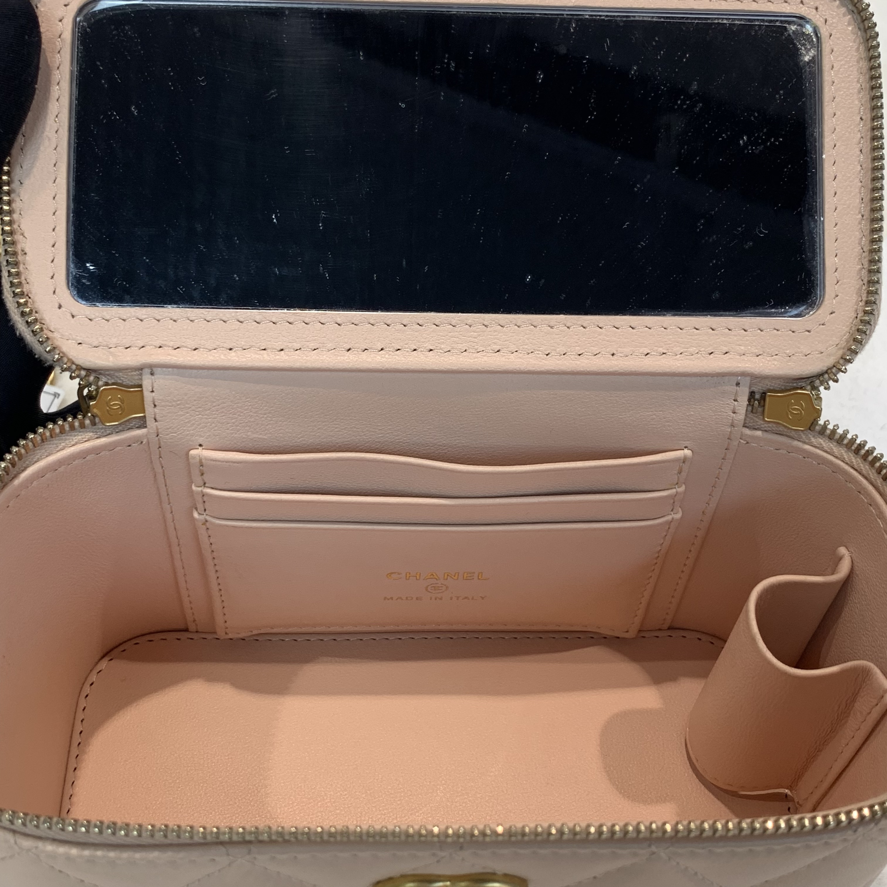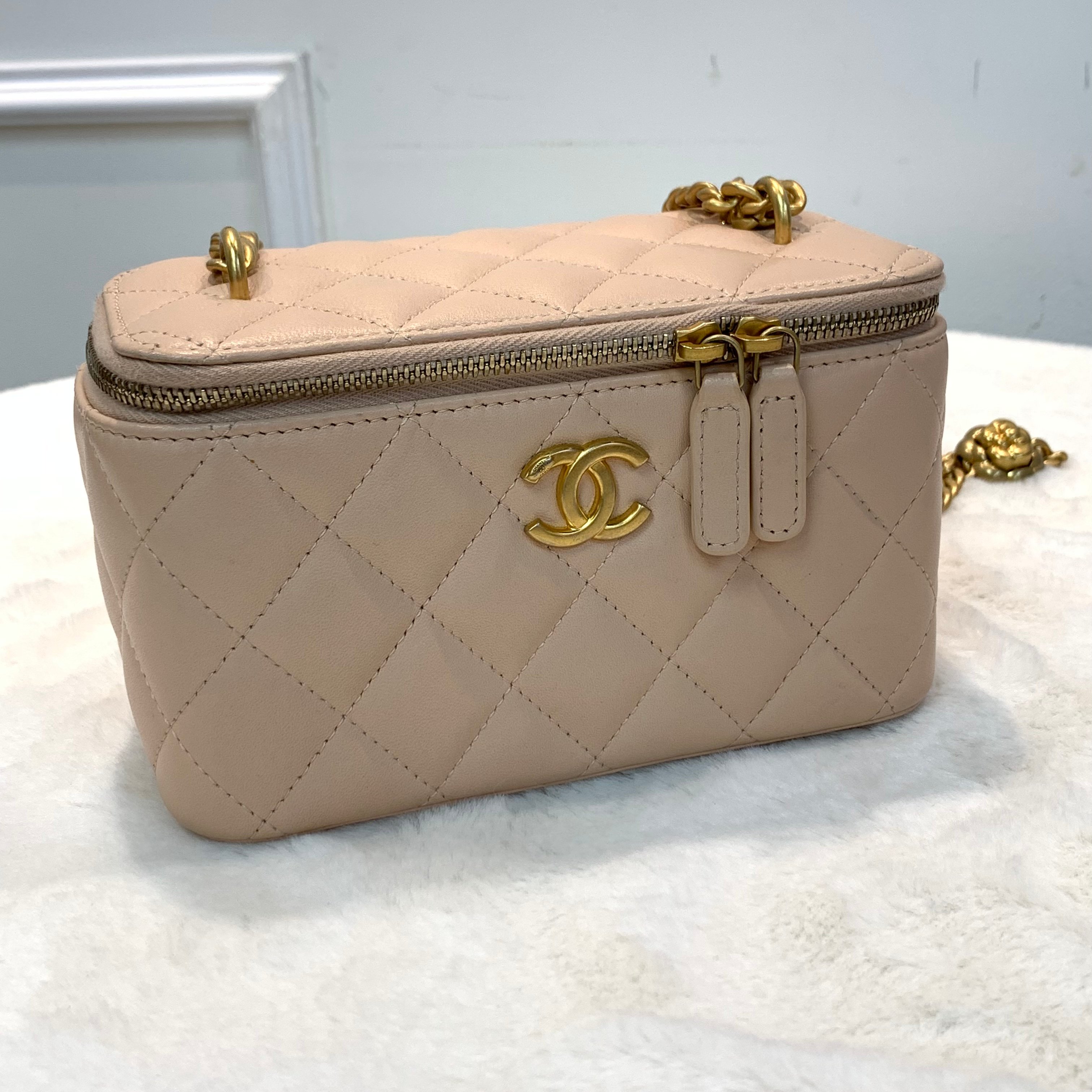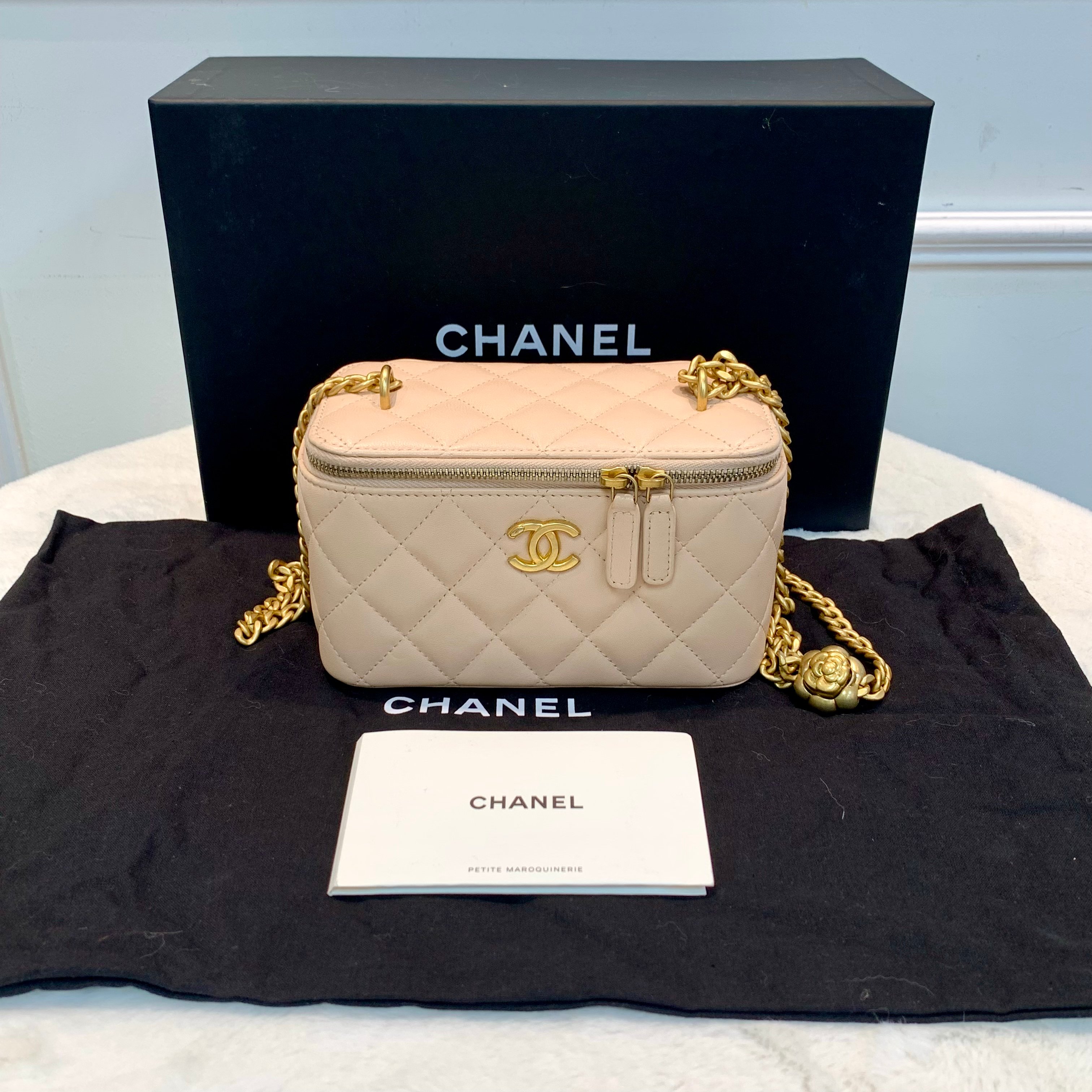 Chanel化妝盒 顏色:米色(根據官網顯示) 尺寸:16 cm 配件:原盒 麈袋 說明卡 成色:輕微使用痕跡