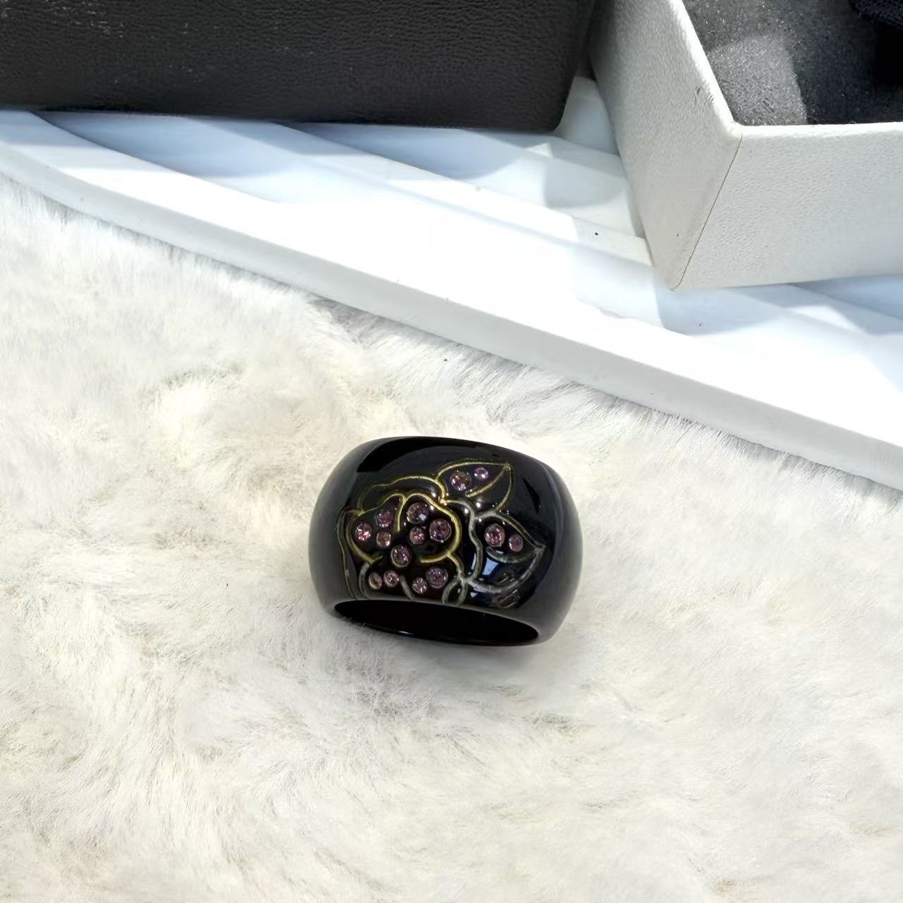 Chanel 黑色粗戒指 顏色:黑色 紫色石 配件:盒 塵袋 成色:有使用痕跡