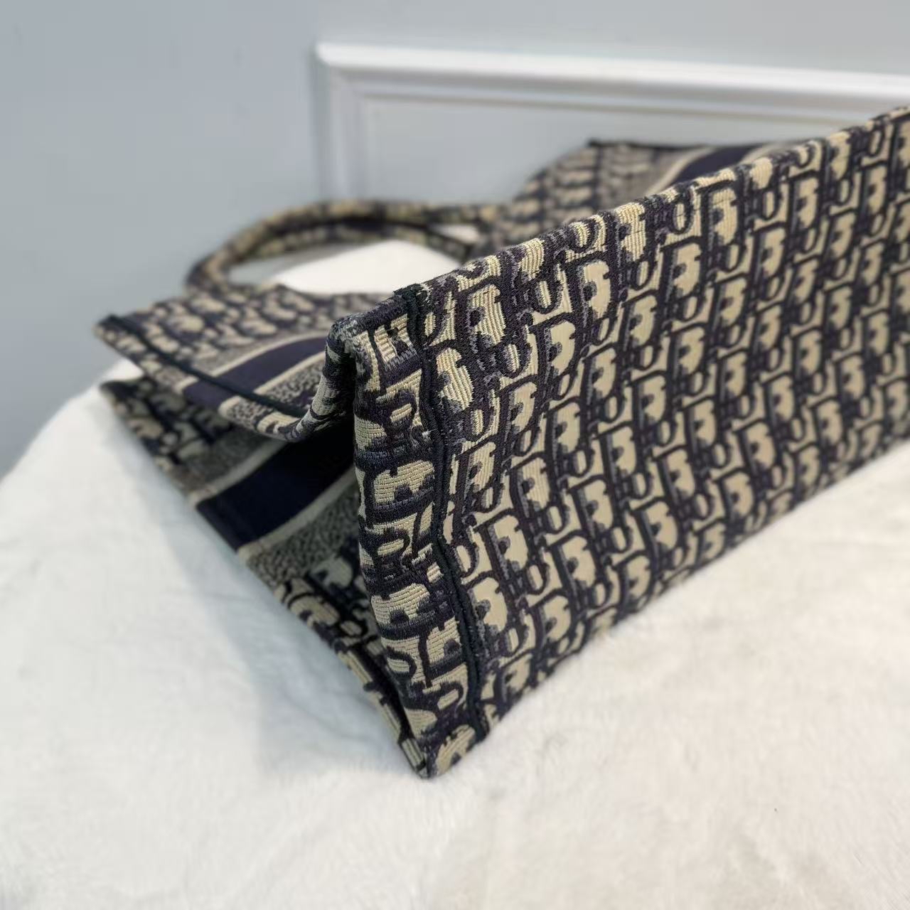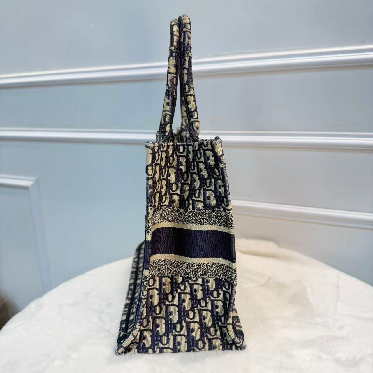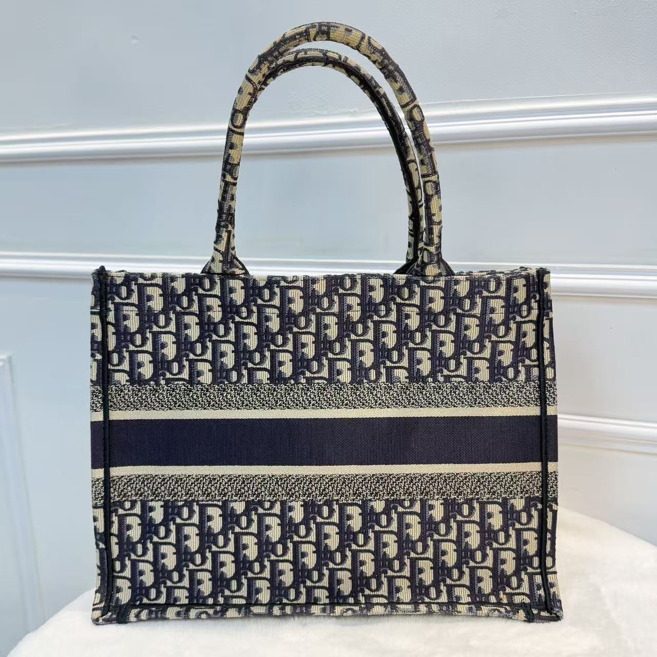 Dior Book系列托特包 中號 米白色和藍色 Oblique老花花刺繡手提單肩包
