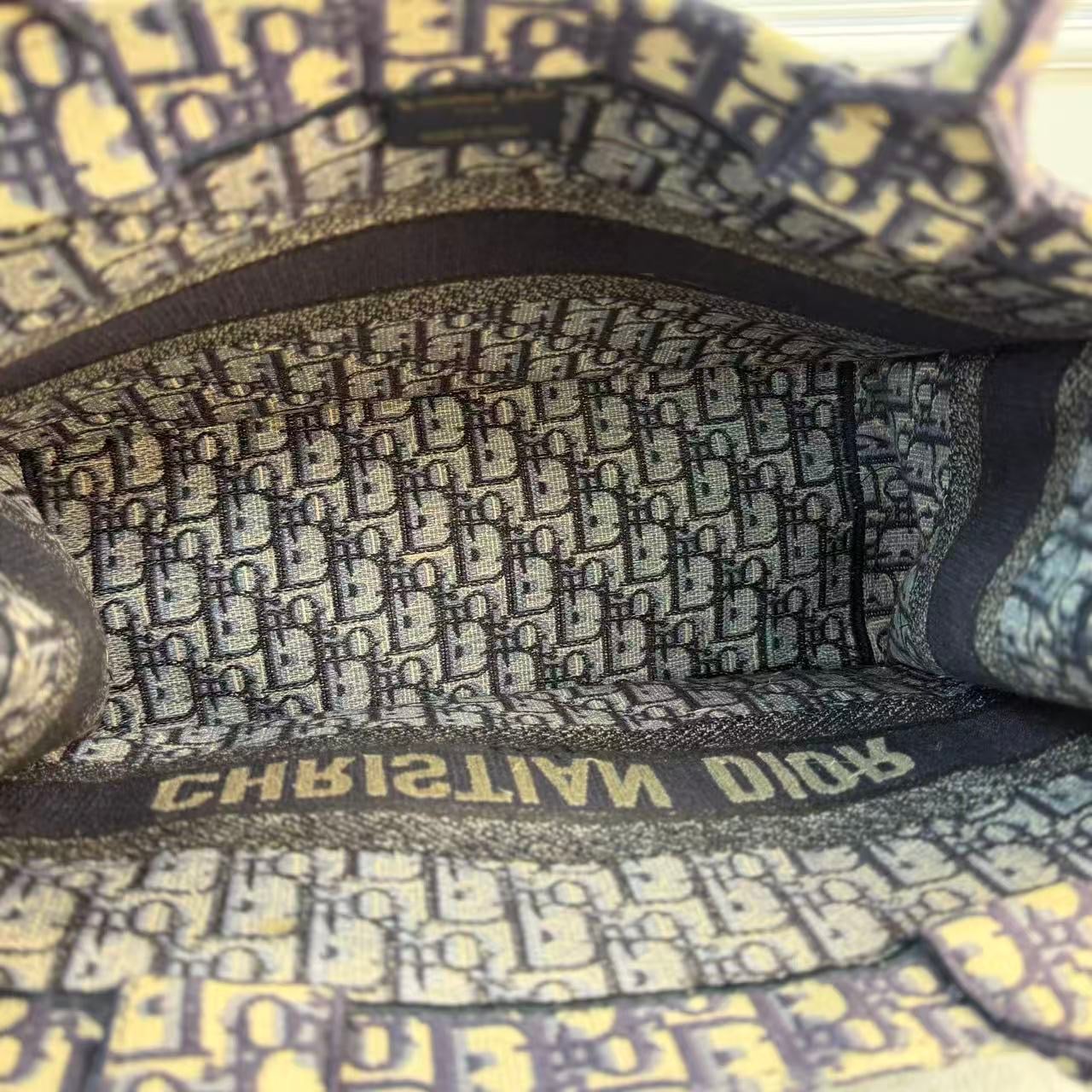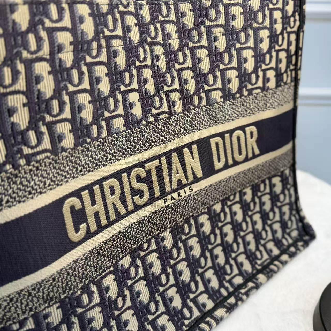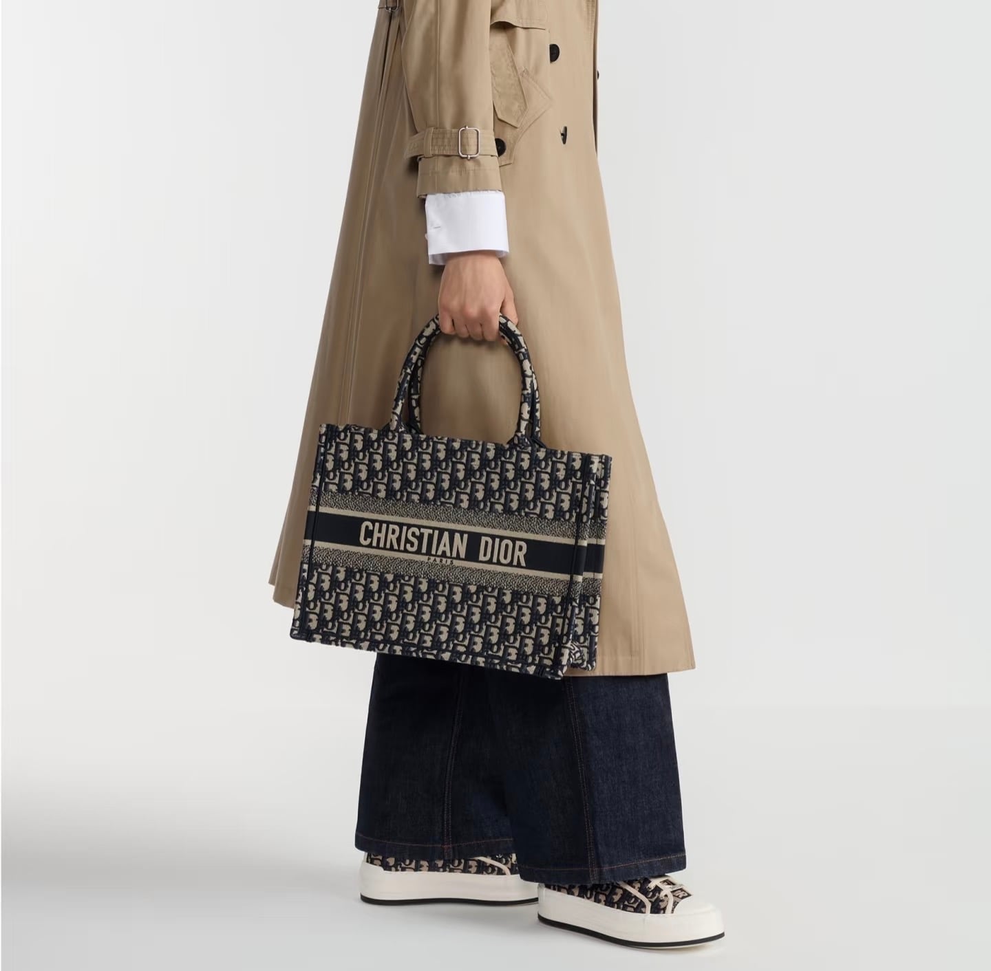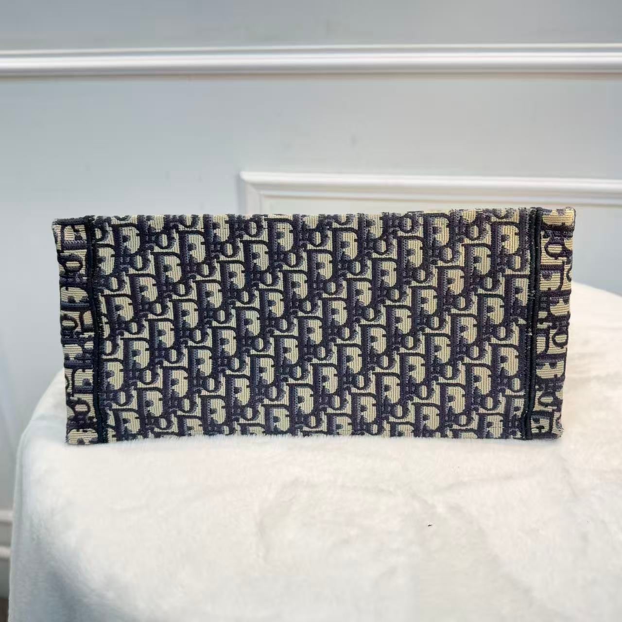 Dior Book系列托特包 中號 米白色和藍色 Oblique老花花刺繡手提單肩包