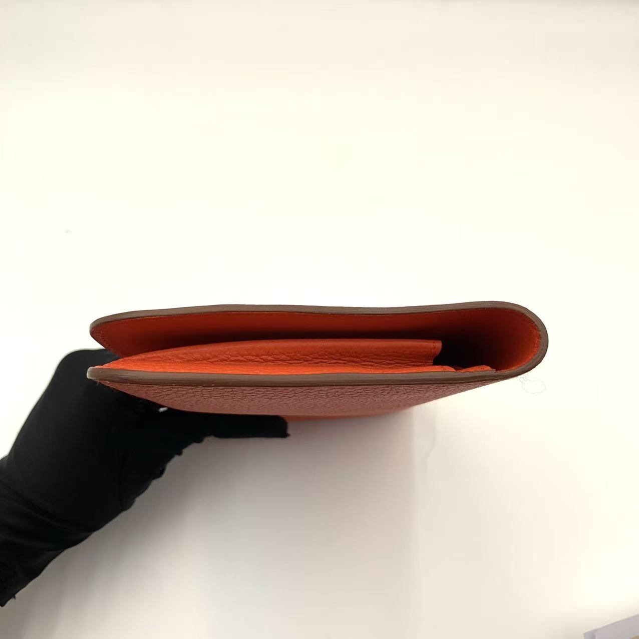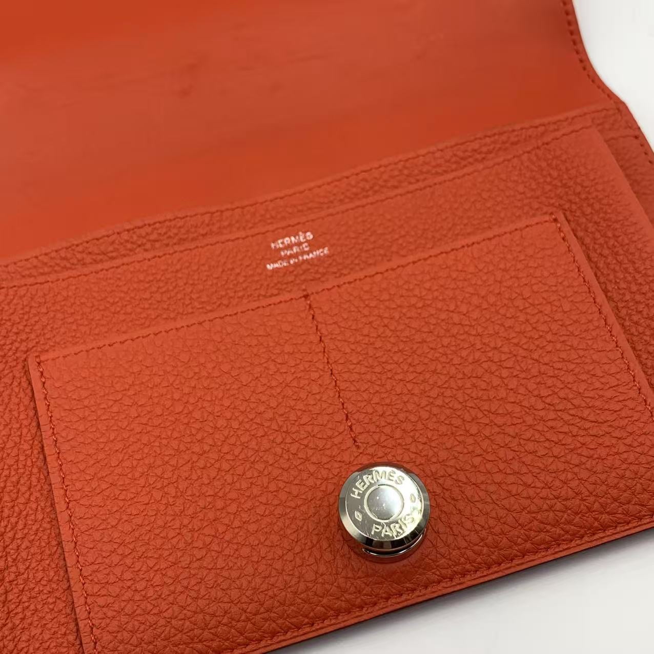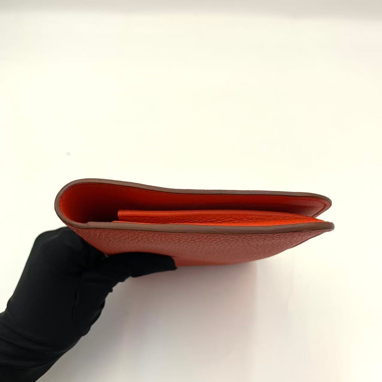 Hermes 愛馬仕包Dogon Duo橫版長款護照包 橙紅銀扣