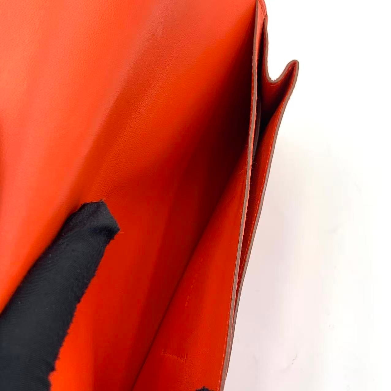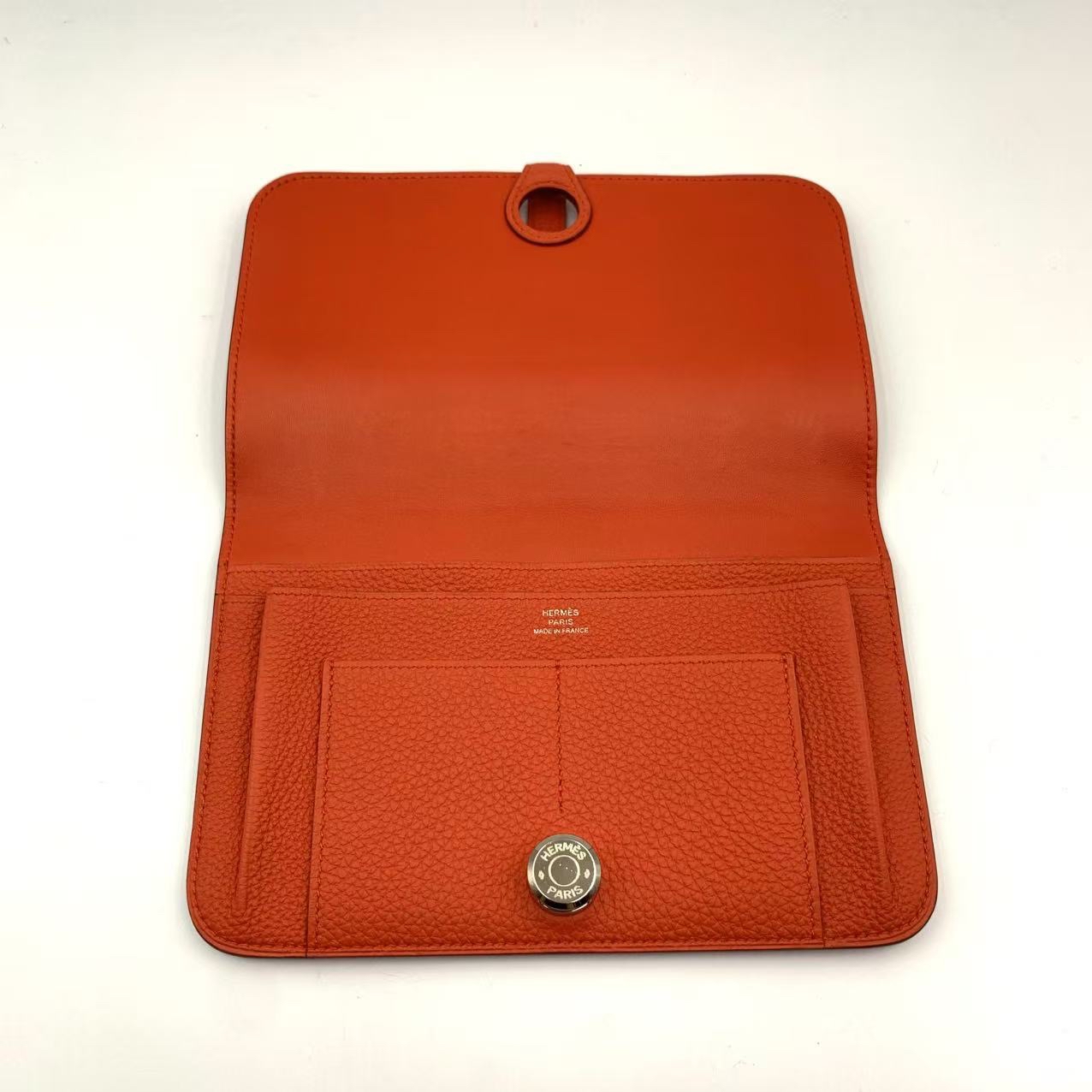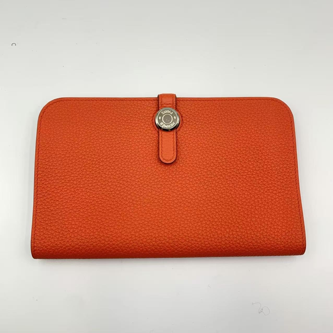 Hermes 愛馬仕包Dogon Duo橫版長款護照包 橙紅銀扣