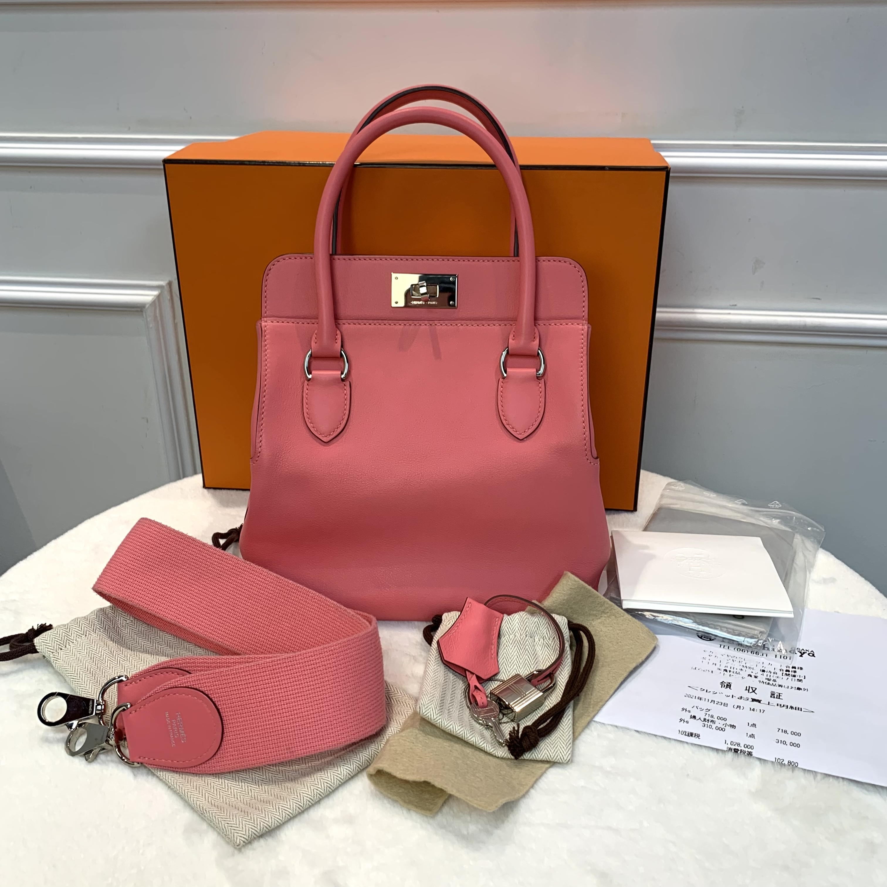 Hermes toolbox 20 顏色:粉紅色 尺寸:20cm Stamp:Y 配件:肩帶 塵袋 鎖具 成色:正常使用痕跡